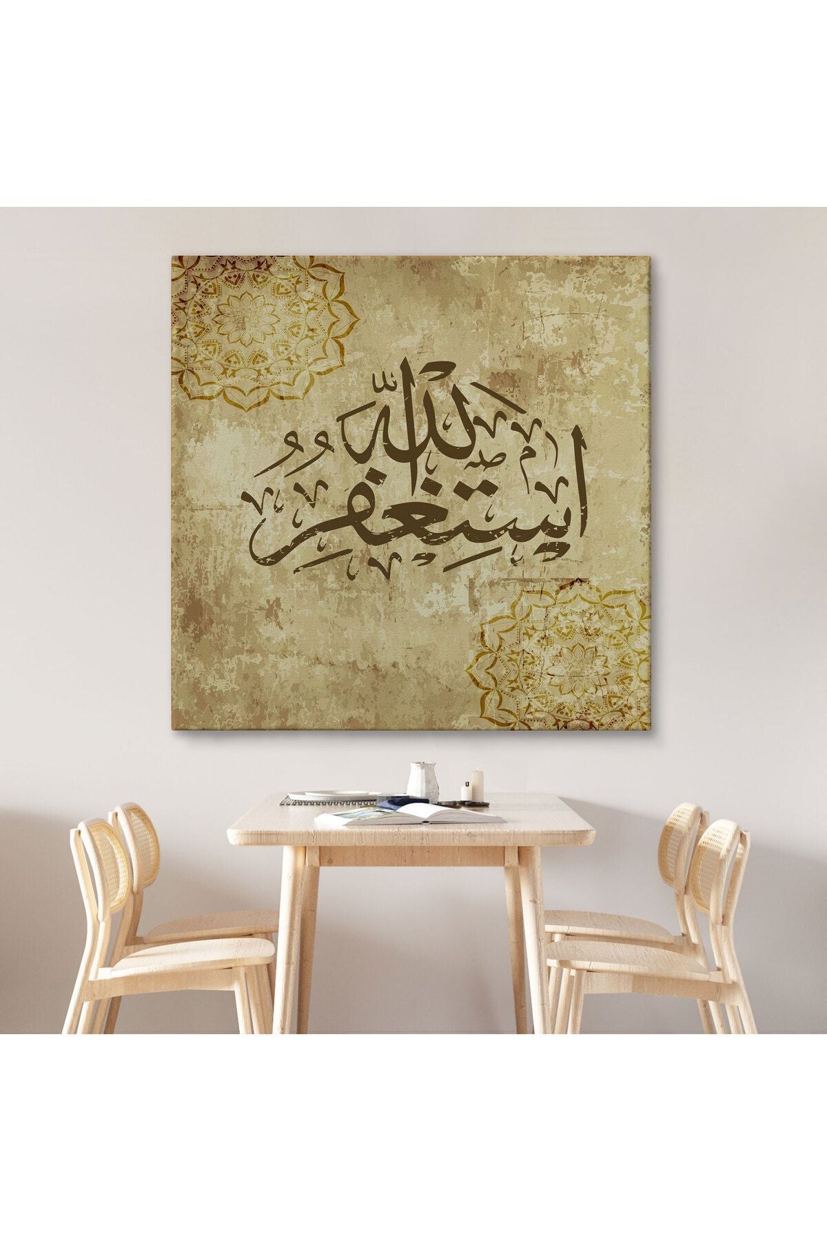 Yüce Allah'tan Mağfiret Dileyin ve O'na Tövbe Edin Yazılı Dekoratif Kanvas Tablo-3274