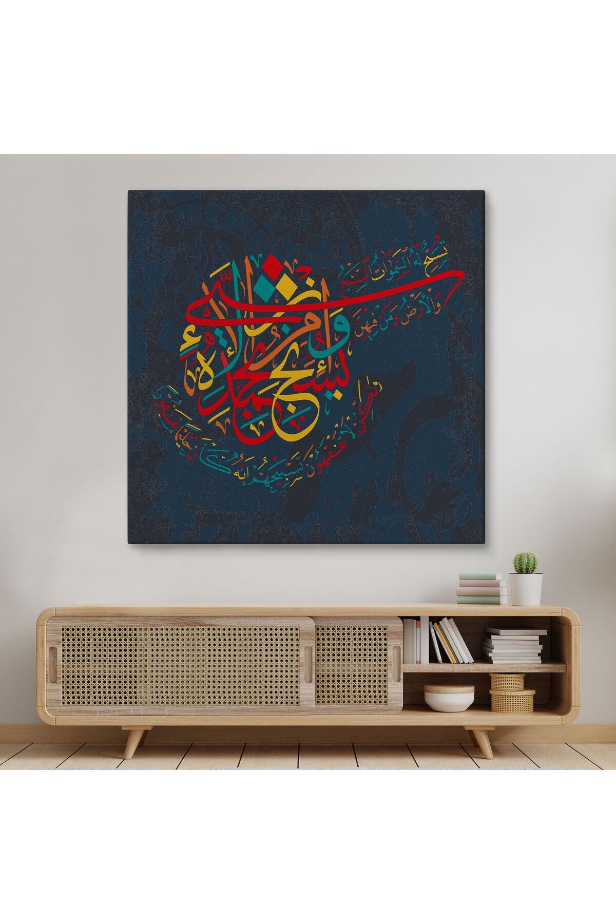 Yedi Gök Yer ve Bunların İçindekiler O'nu Tesbih Eder (İsra Süresi 44 ayet) Yazılı Kanvas Tablo-3298