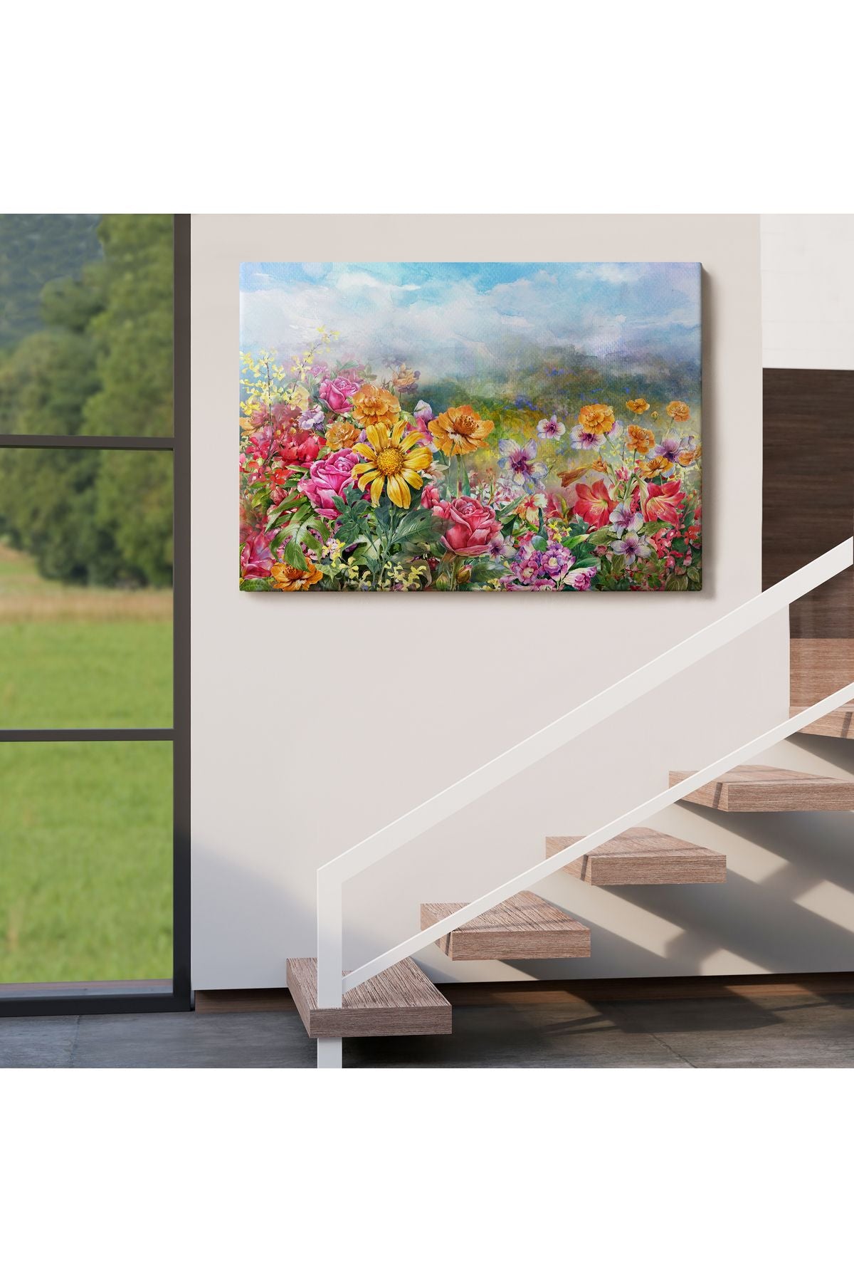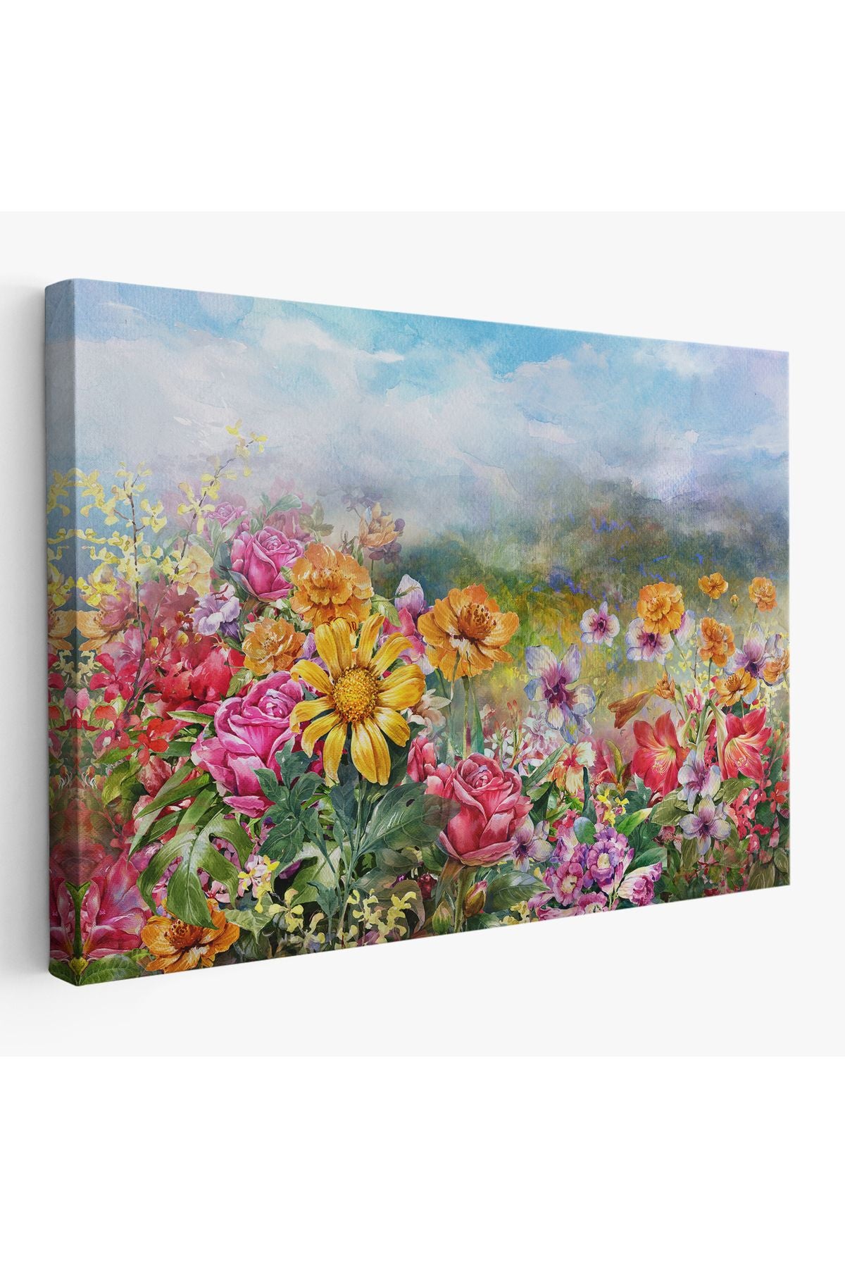 Çok Renkli Çiçekler Manzara Kanvas Duvar Tablosu-3426