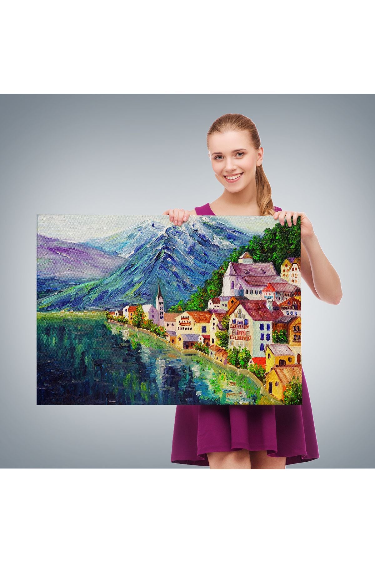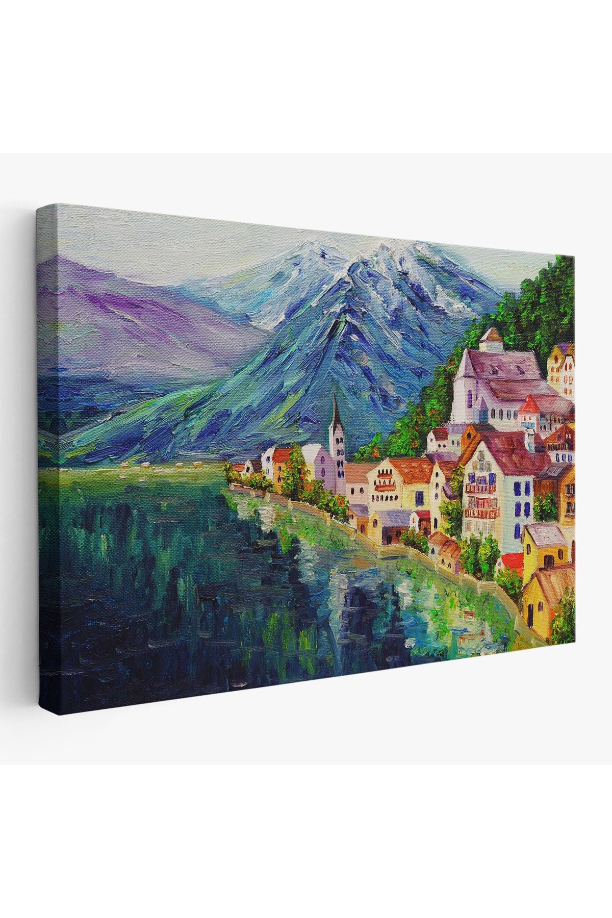 Avusturya Hallstatt Yağlıboya Görünüm Dekoratif Kanvas Duvar Tablosu-3438
