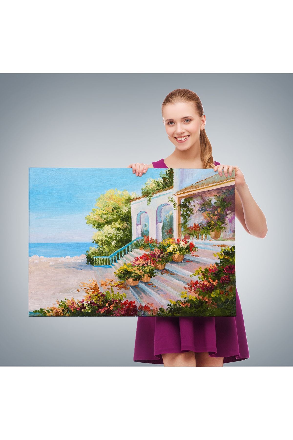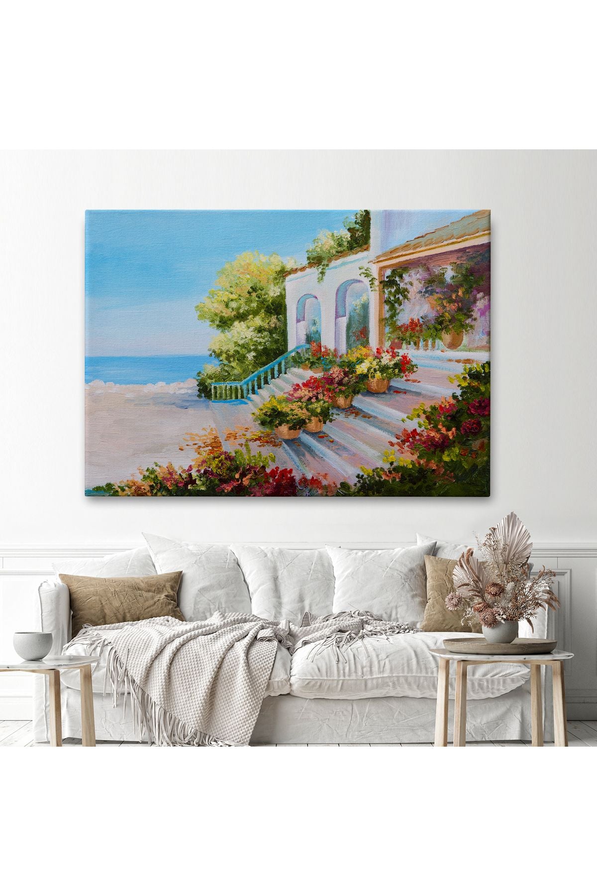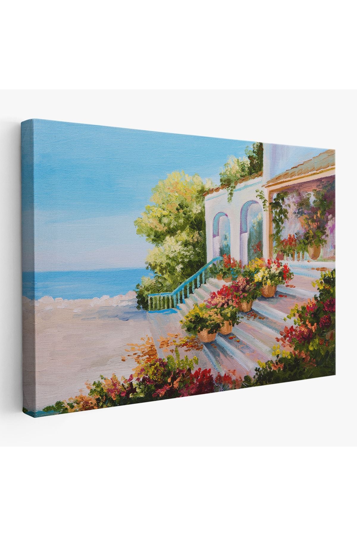 Deniz Teras Manzaralı Dekoratif Kanvas Duvar Tablosu-3443