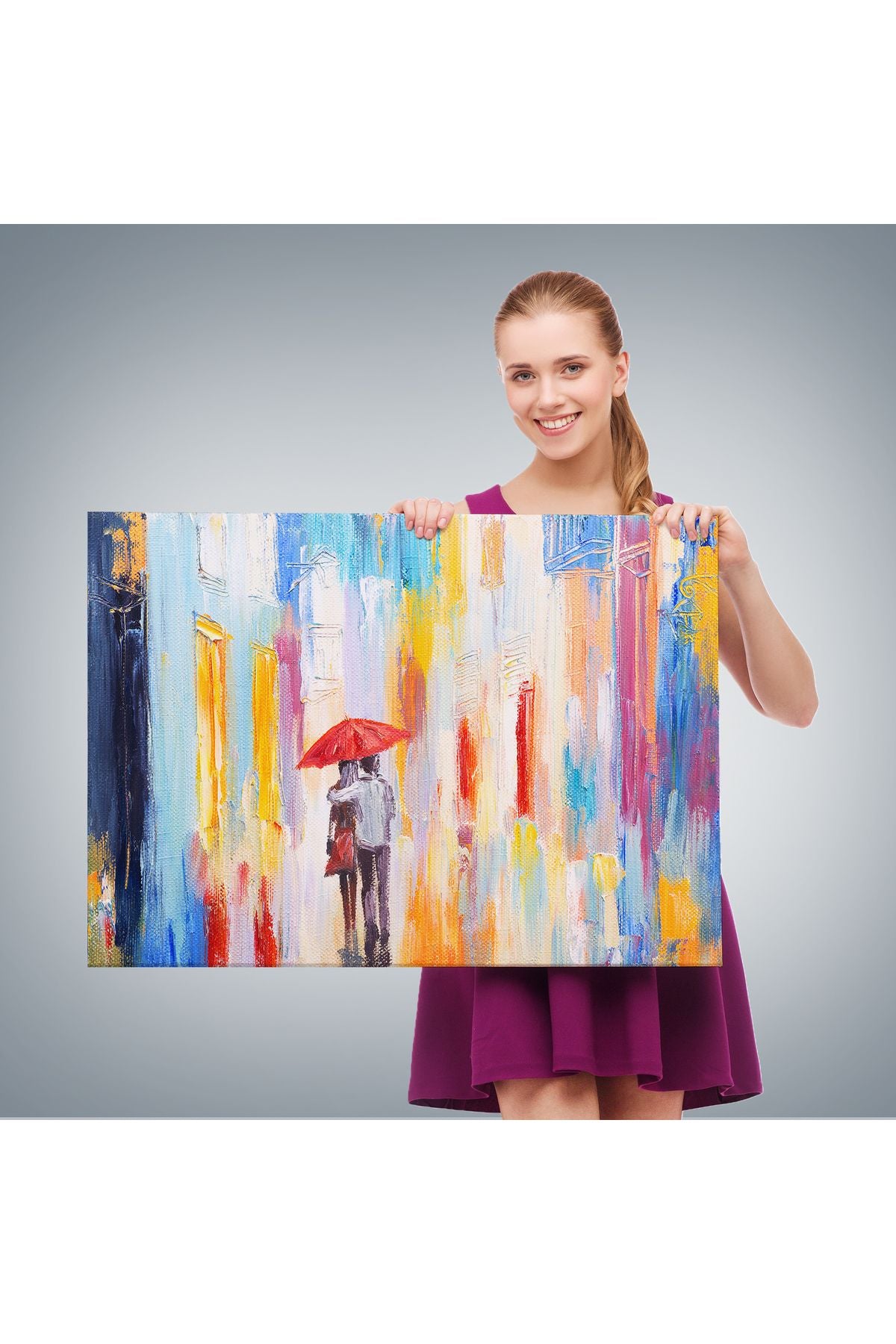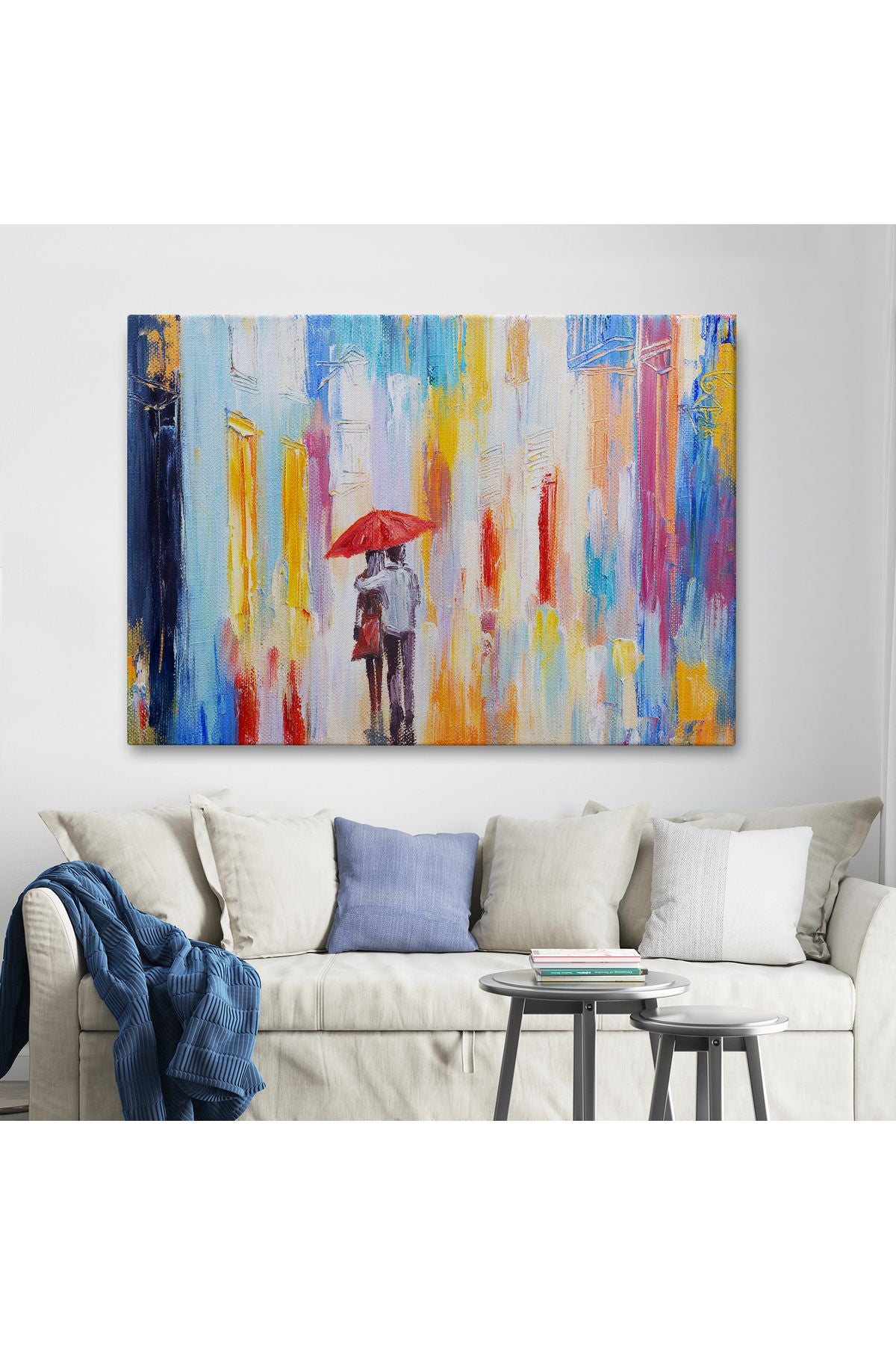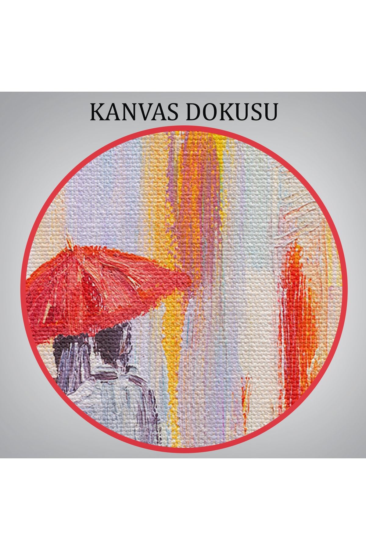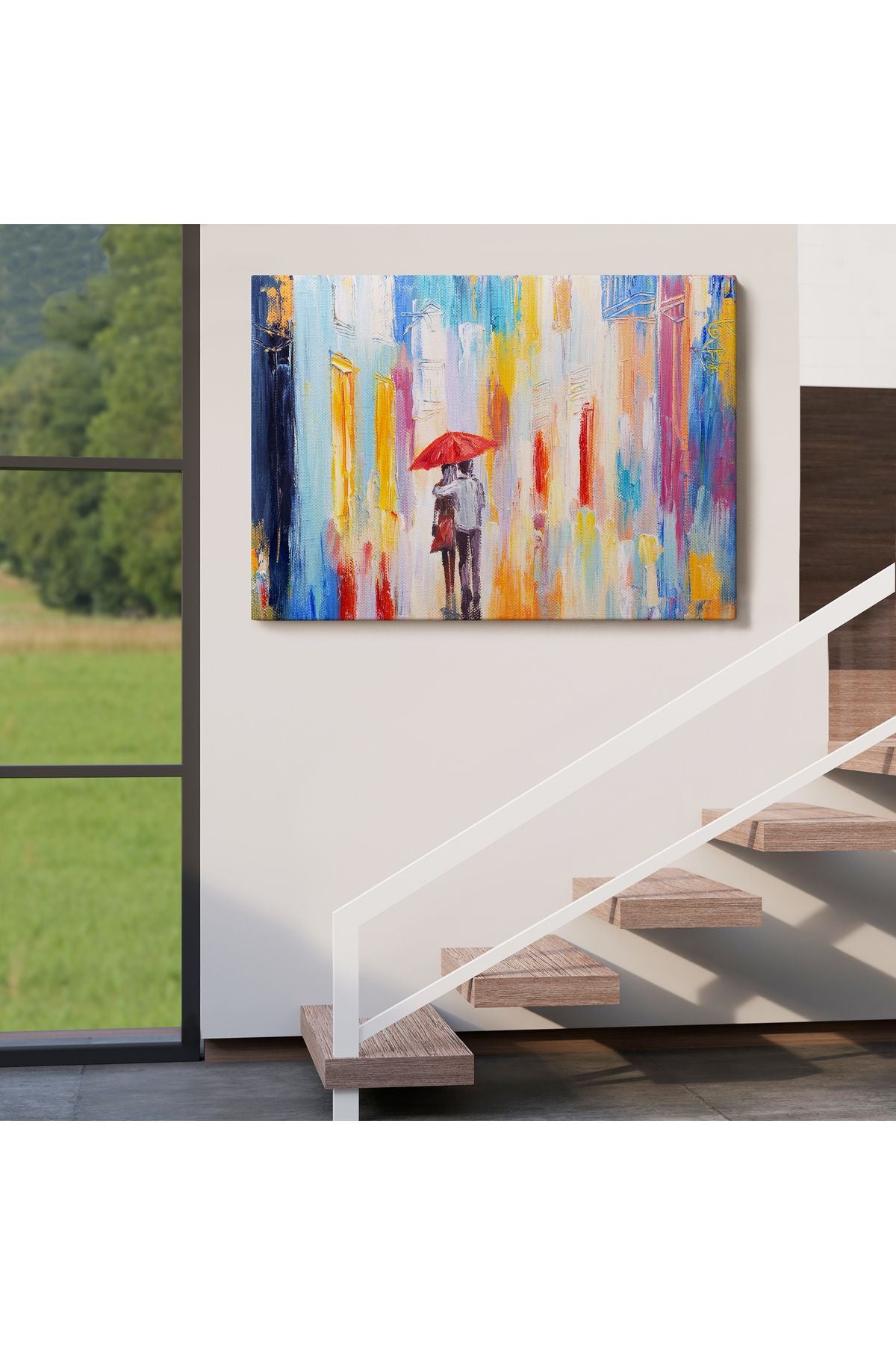 Kırmızı Şemsiyeli Sevgililer Yağlıboya Görünüm Kanvas Duvar Tablosu-3452
