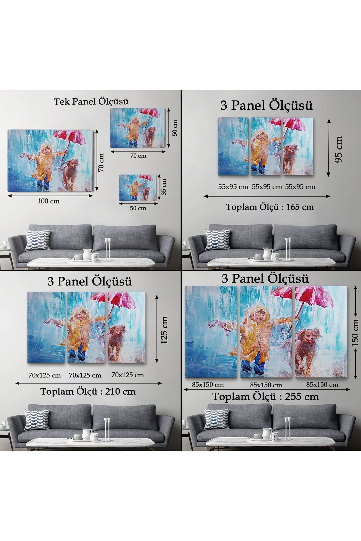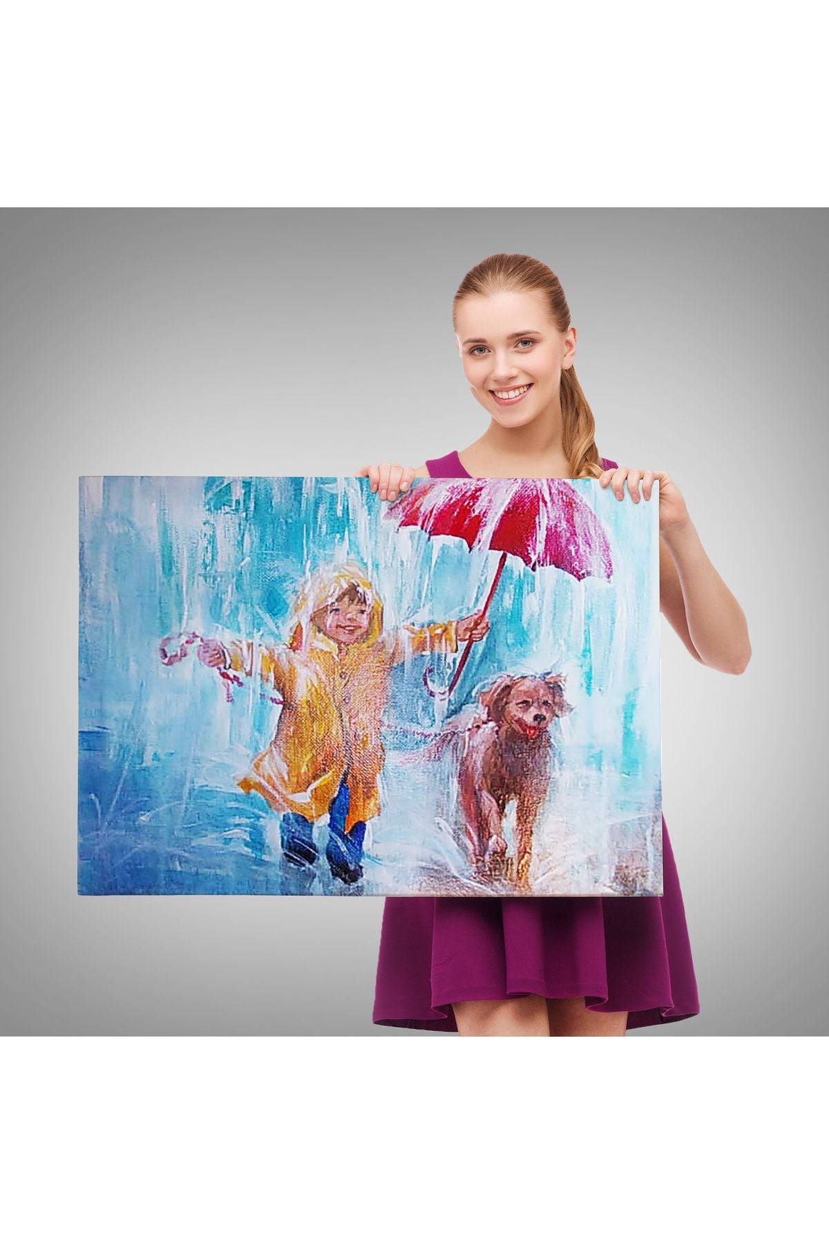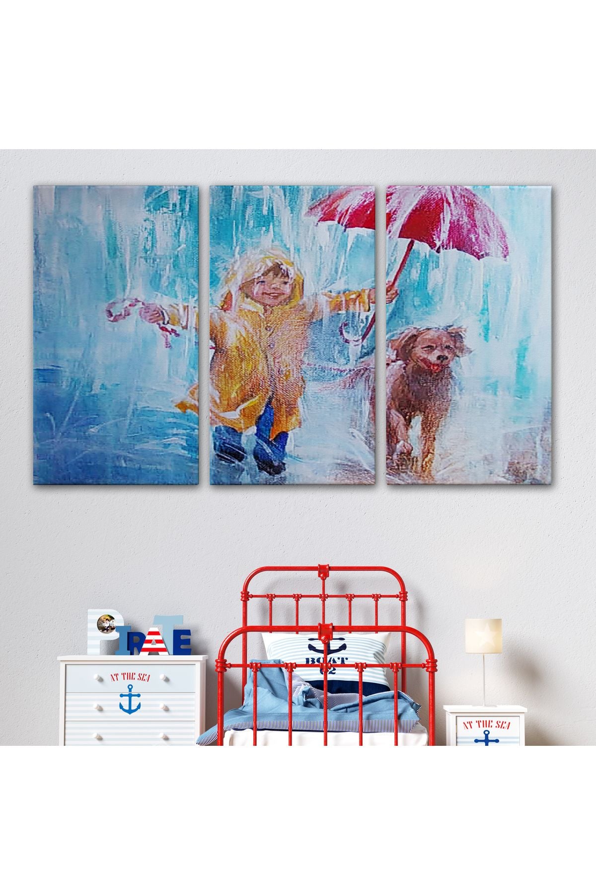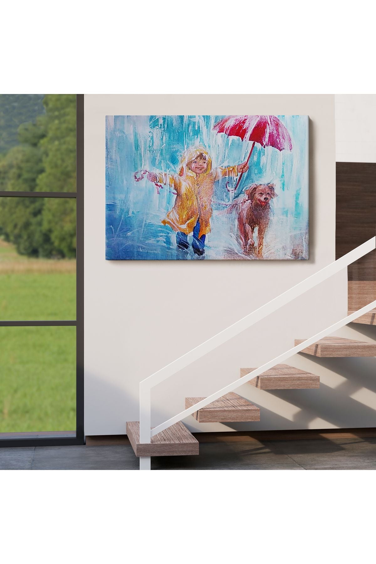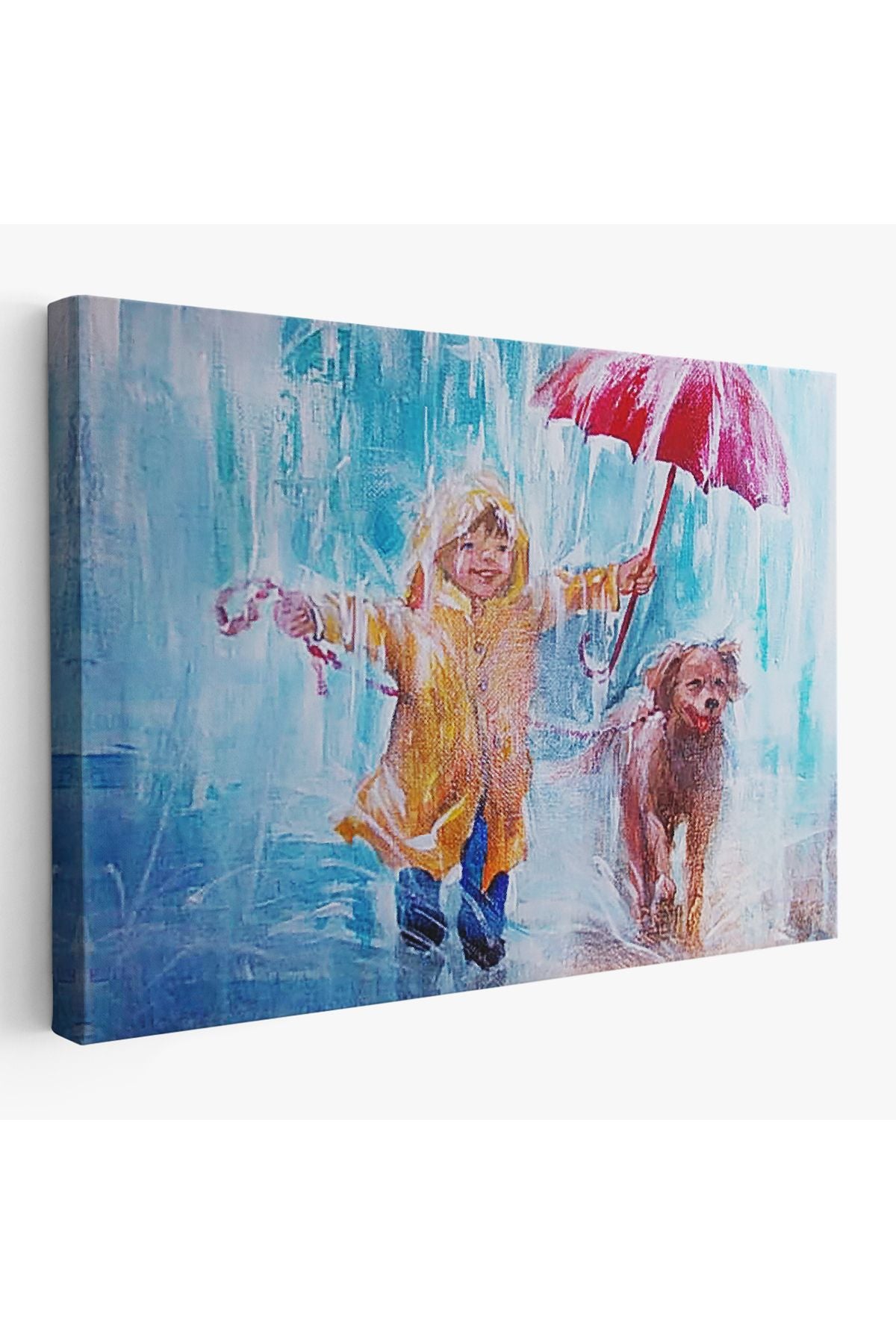 Yağmurda Köpeğini Gezdiren Cocuk Yağlıboya Görünümlü Kanvas Tablo-3454