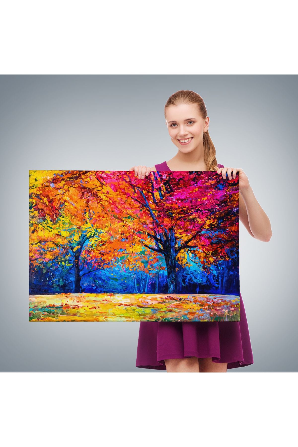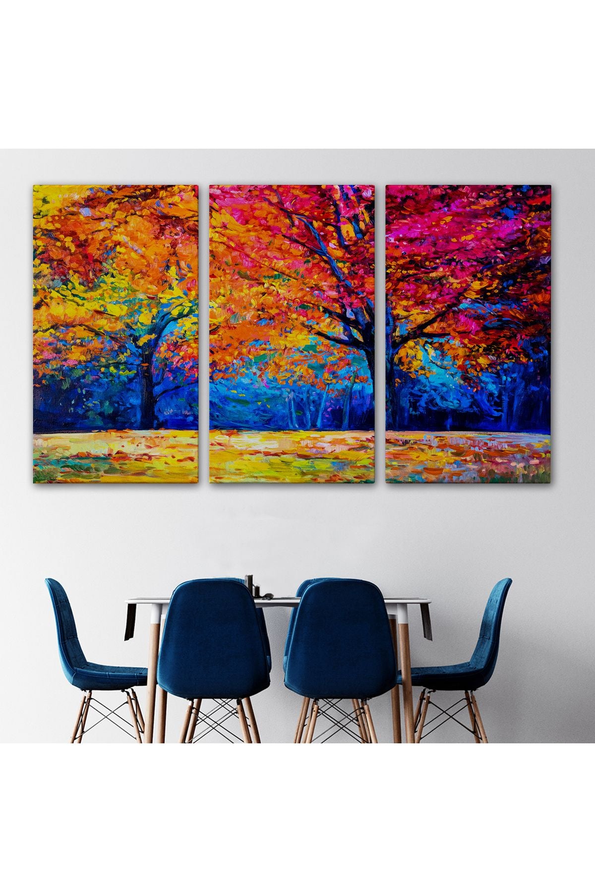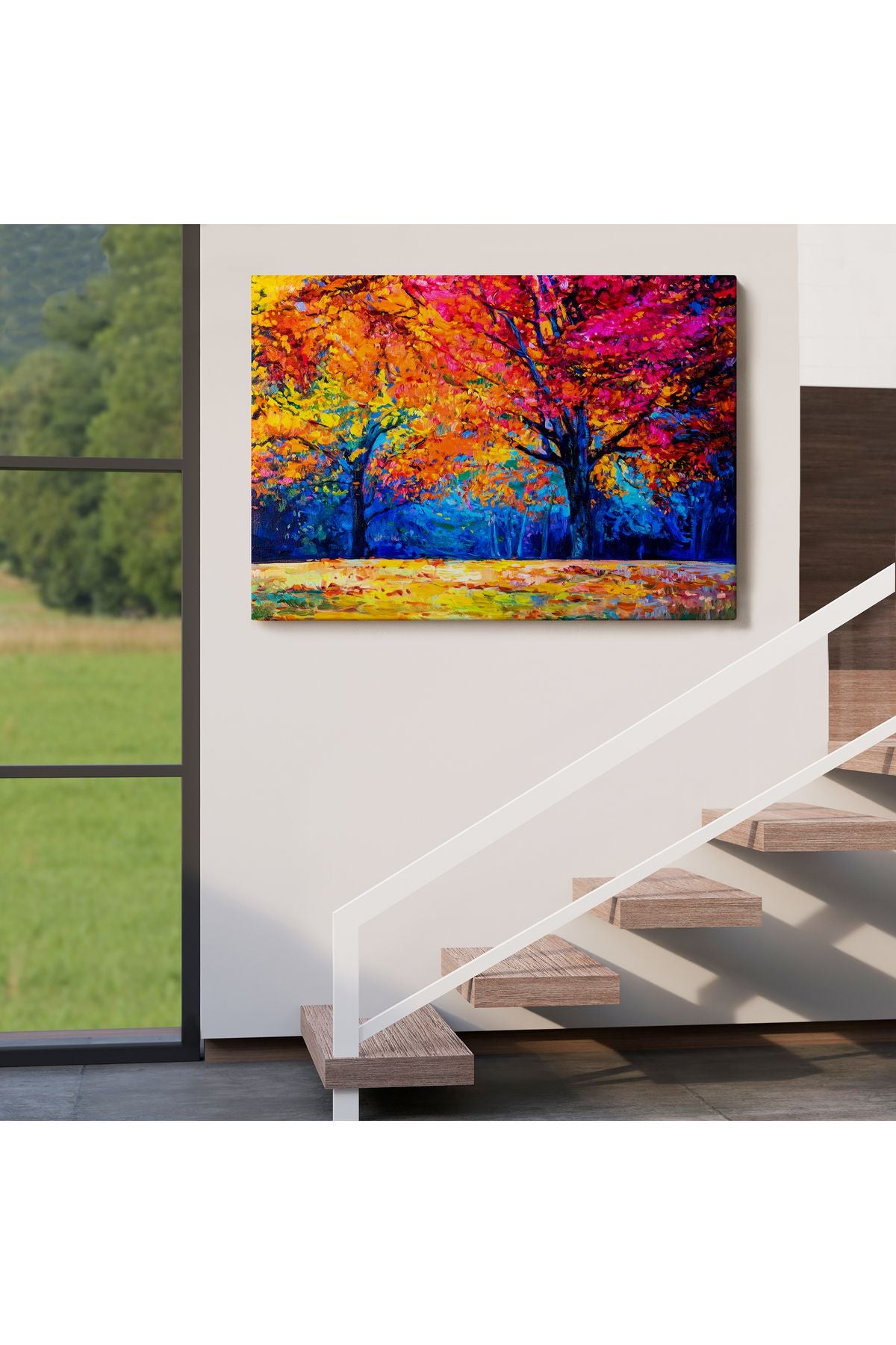 Sonbahar Ağaçları Yağlıboya Görünüm Dekoratif Kanvas Duvar Tablosu-3459