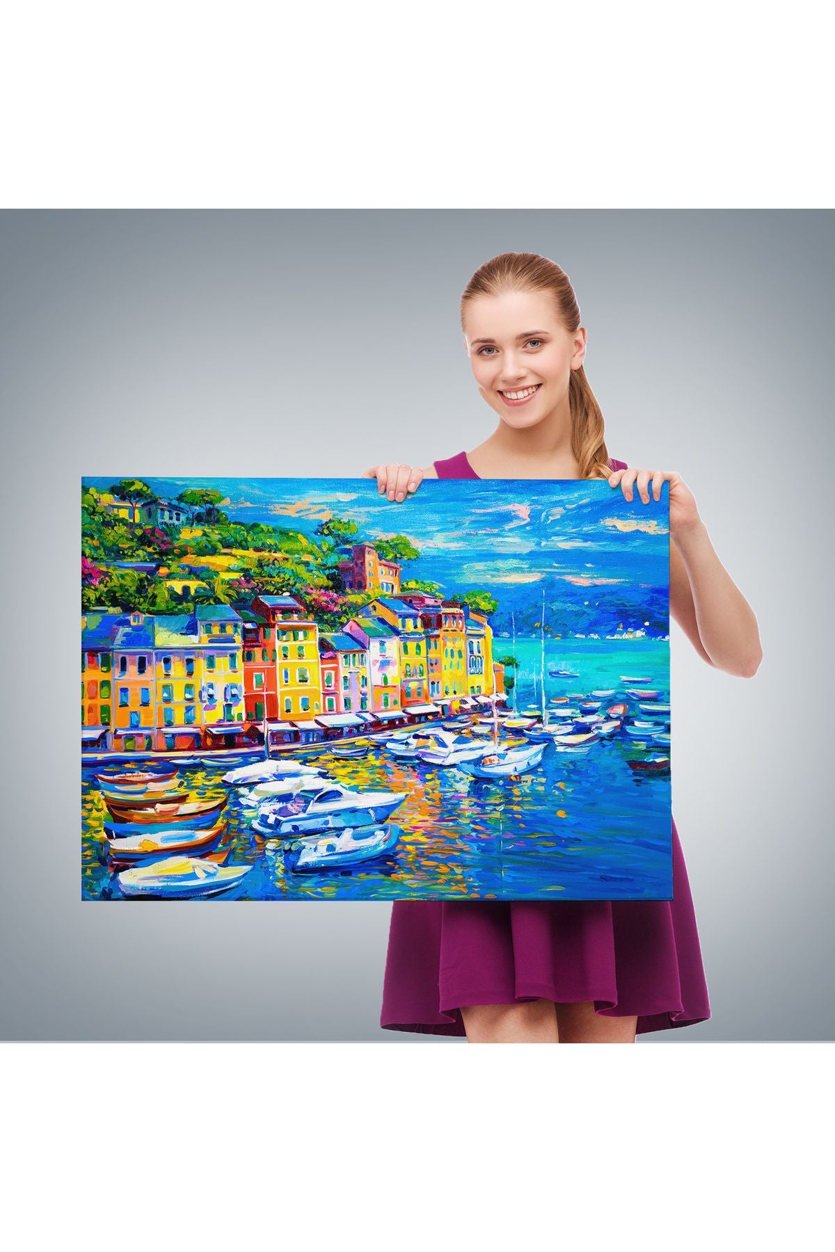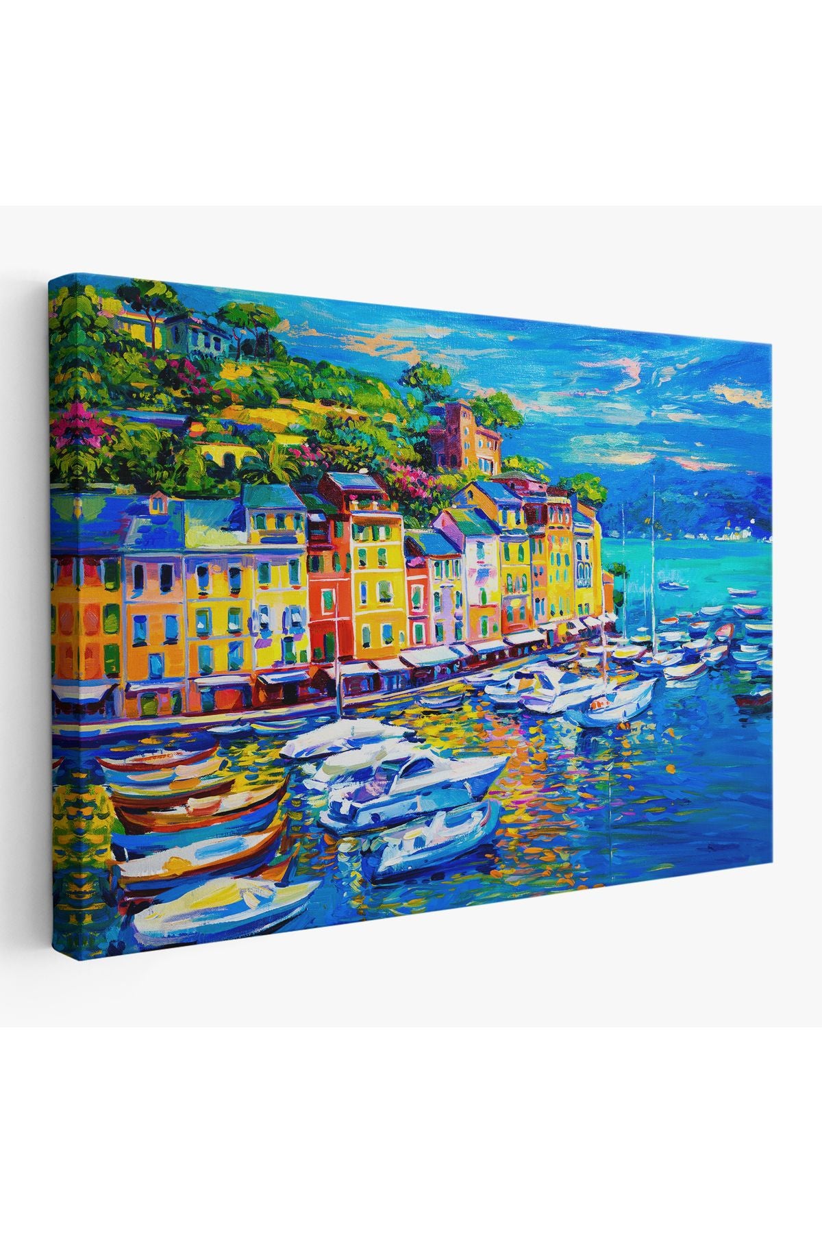 Liman Tekneleri Yağlıboya Görünüm Dekoratif Kanvas Duvar Tablosu-3461