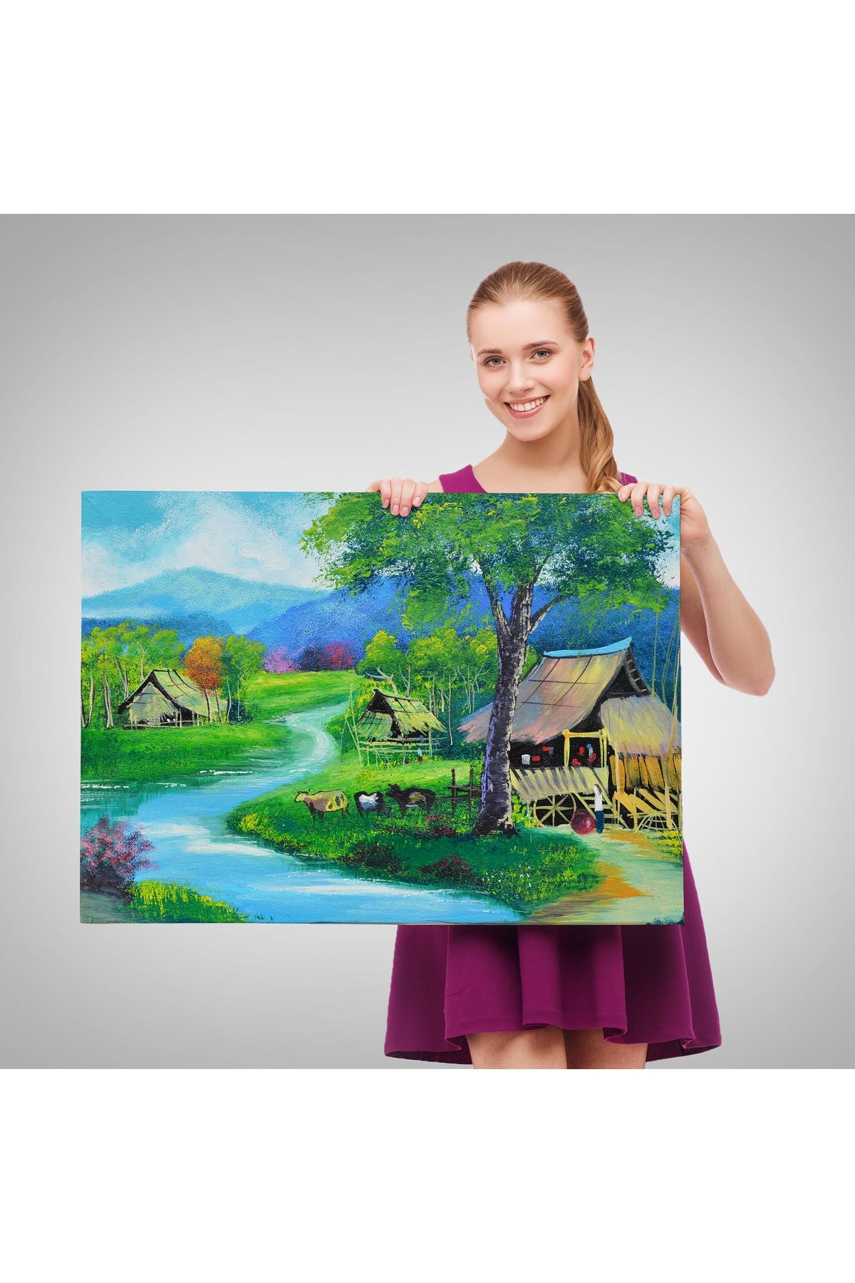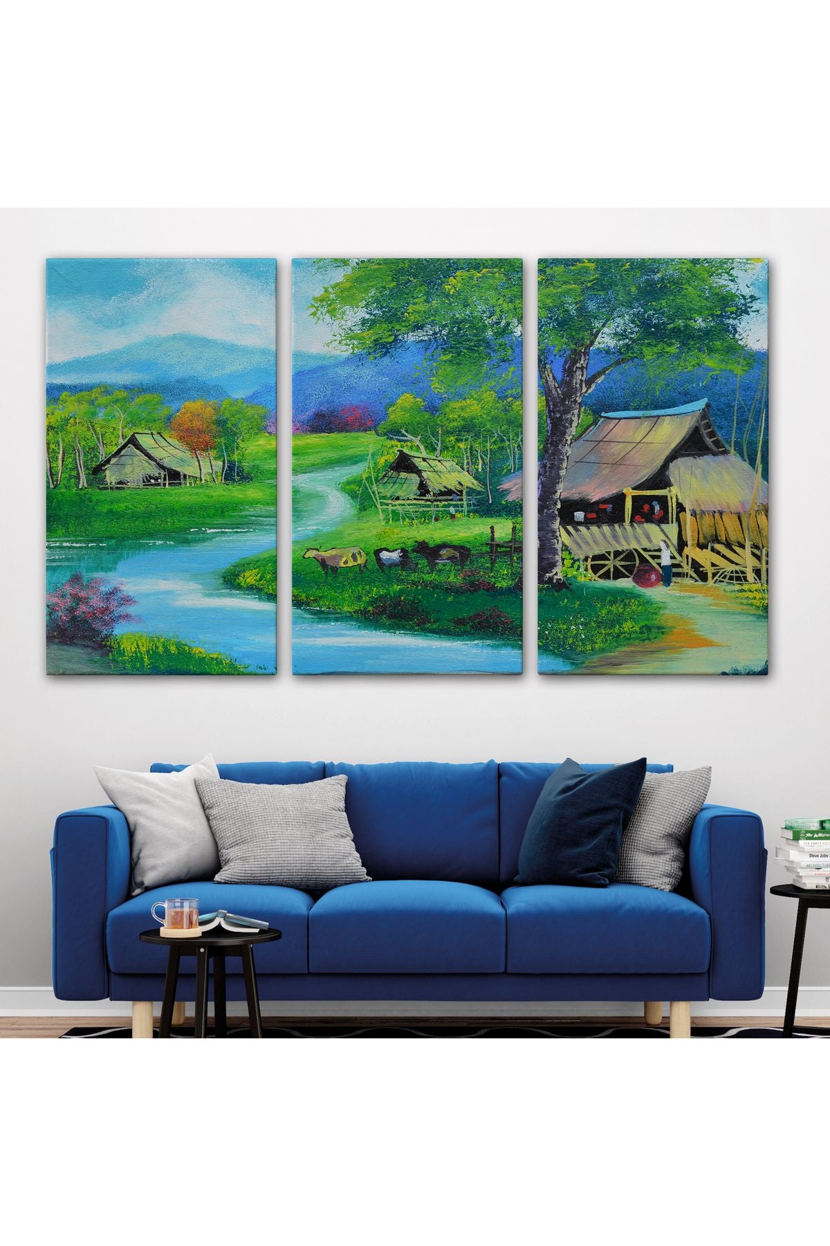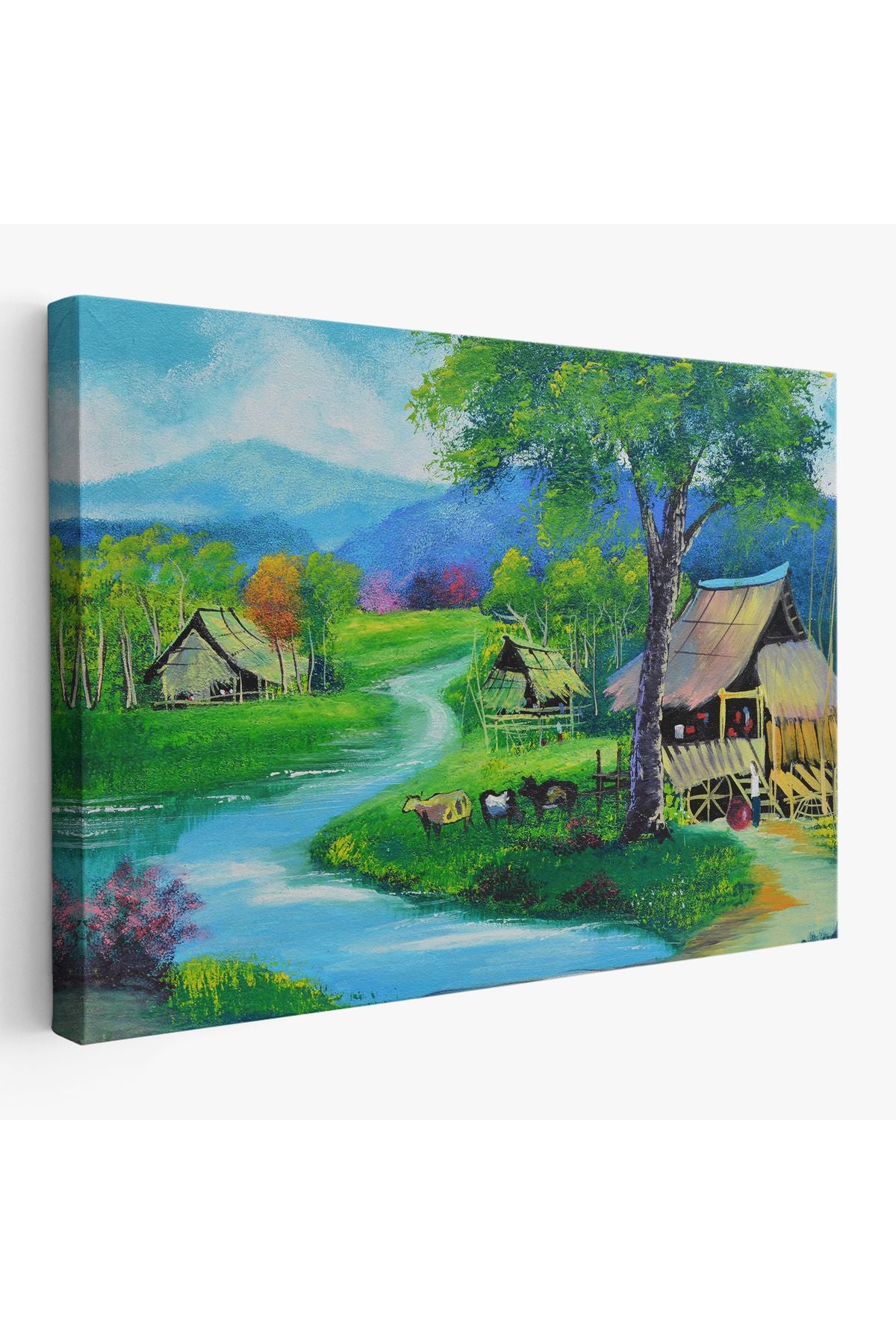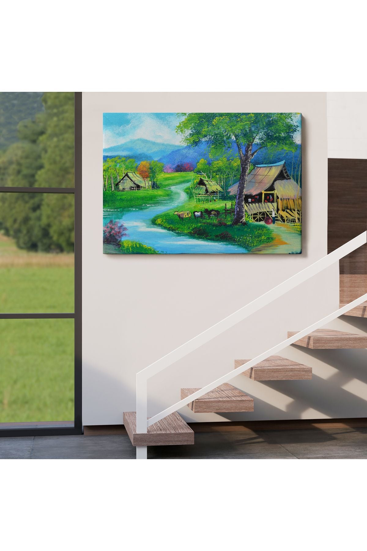 SZ KVS1-Dekoratif Duvar Tablosu-Taşra Köy Manzarası Tayland Kanvas Tablo 3478
