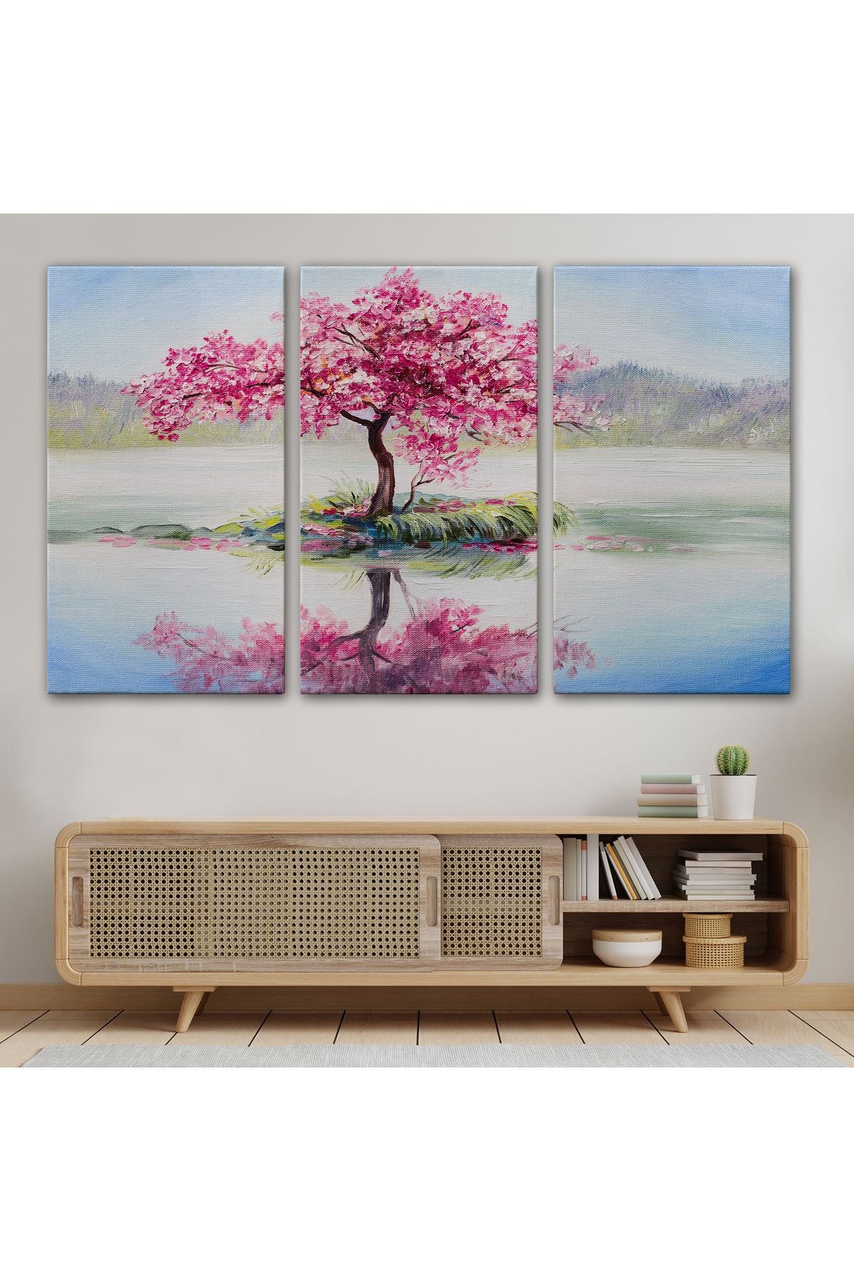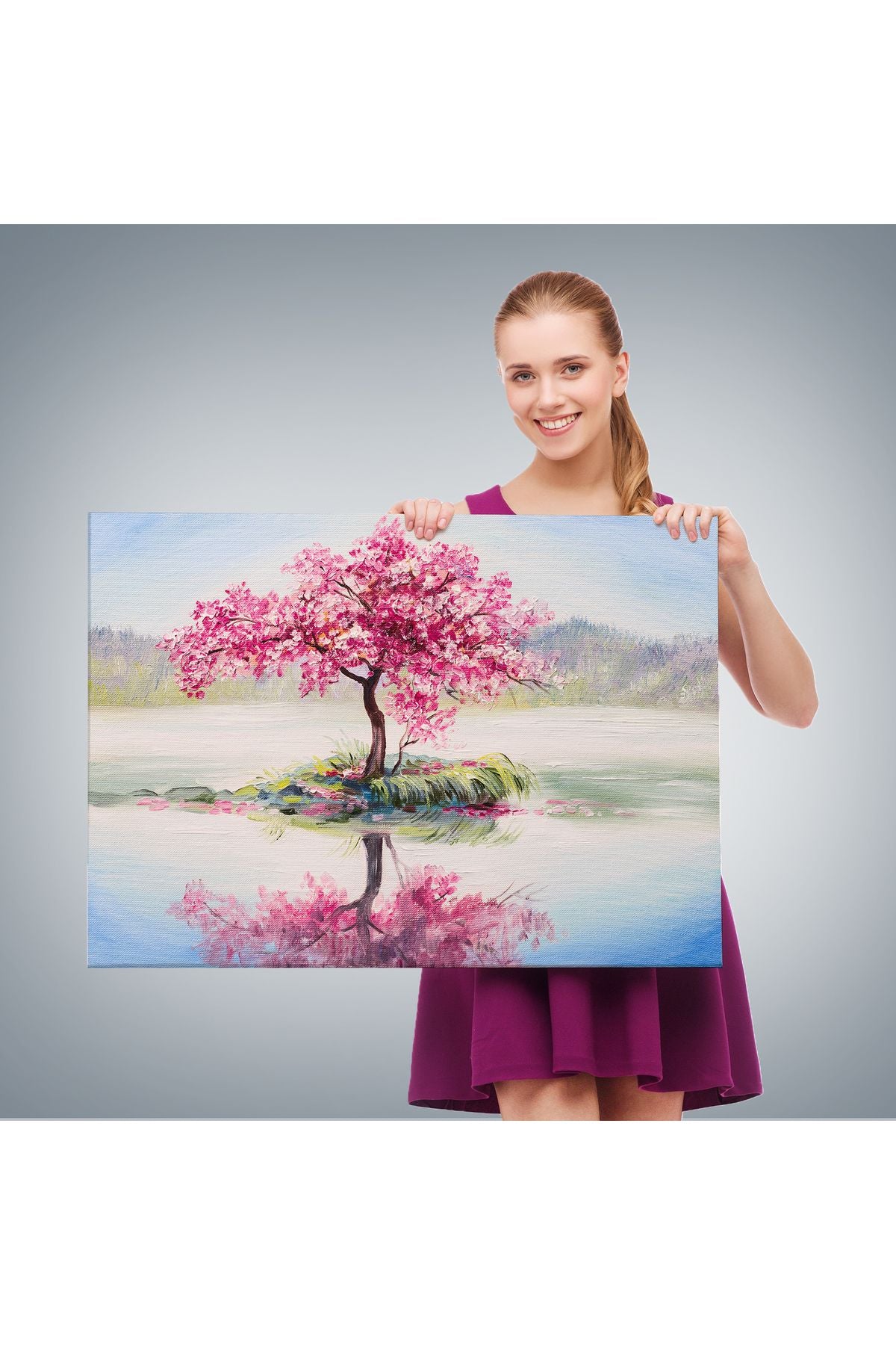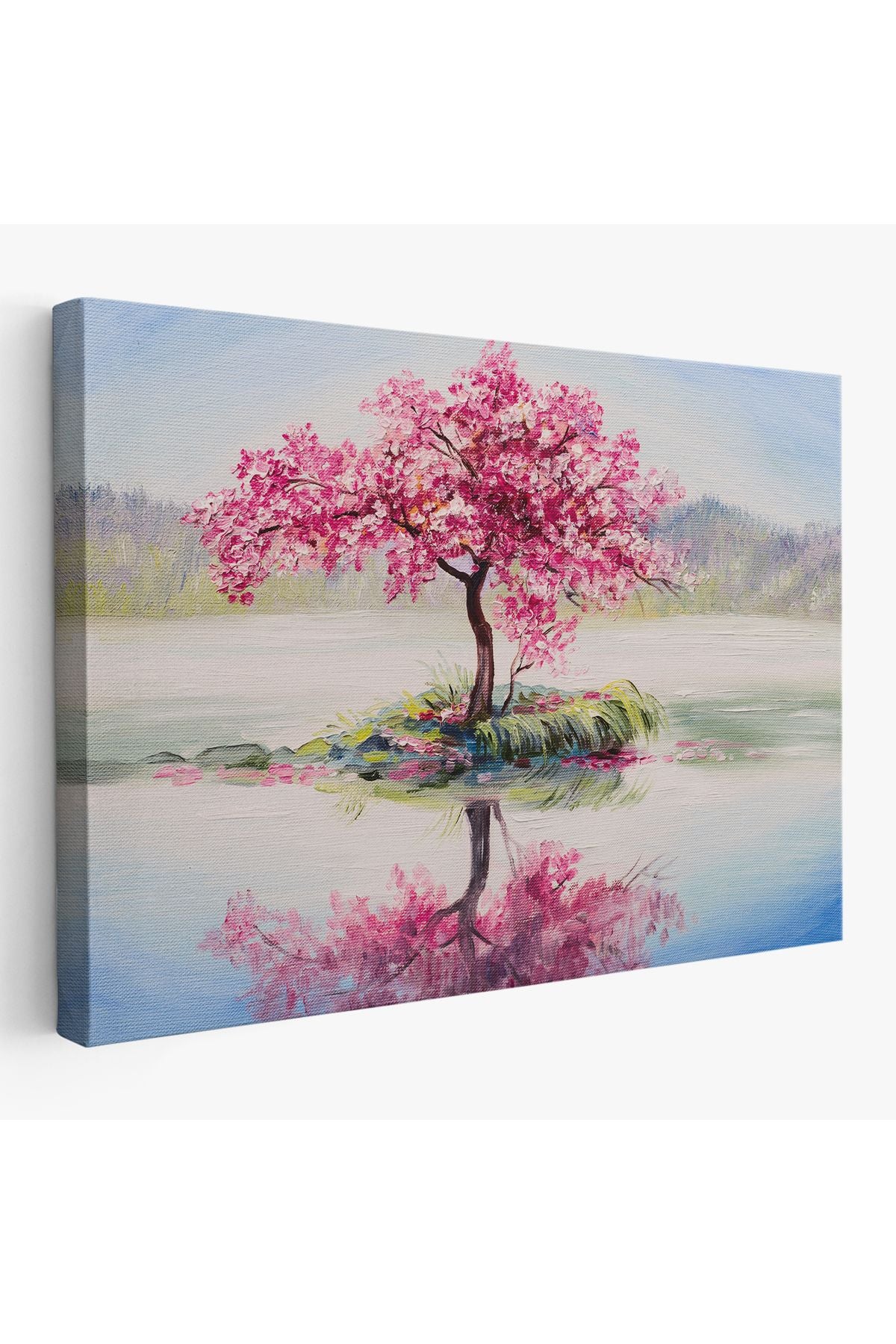 Gölde Sakura Ağacı Yağlıboya Görünüm Kanvas Duvar Tablosu-3494