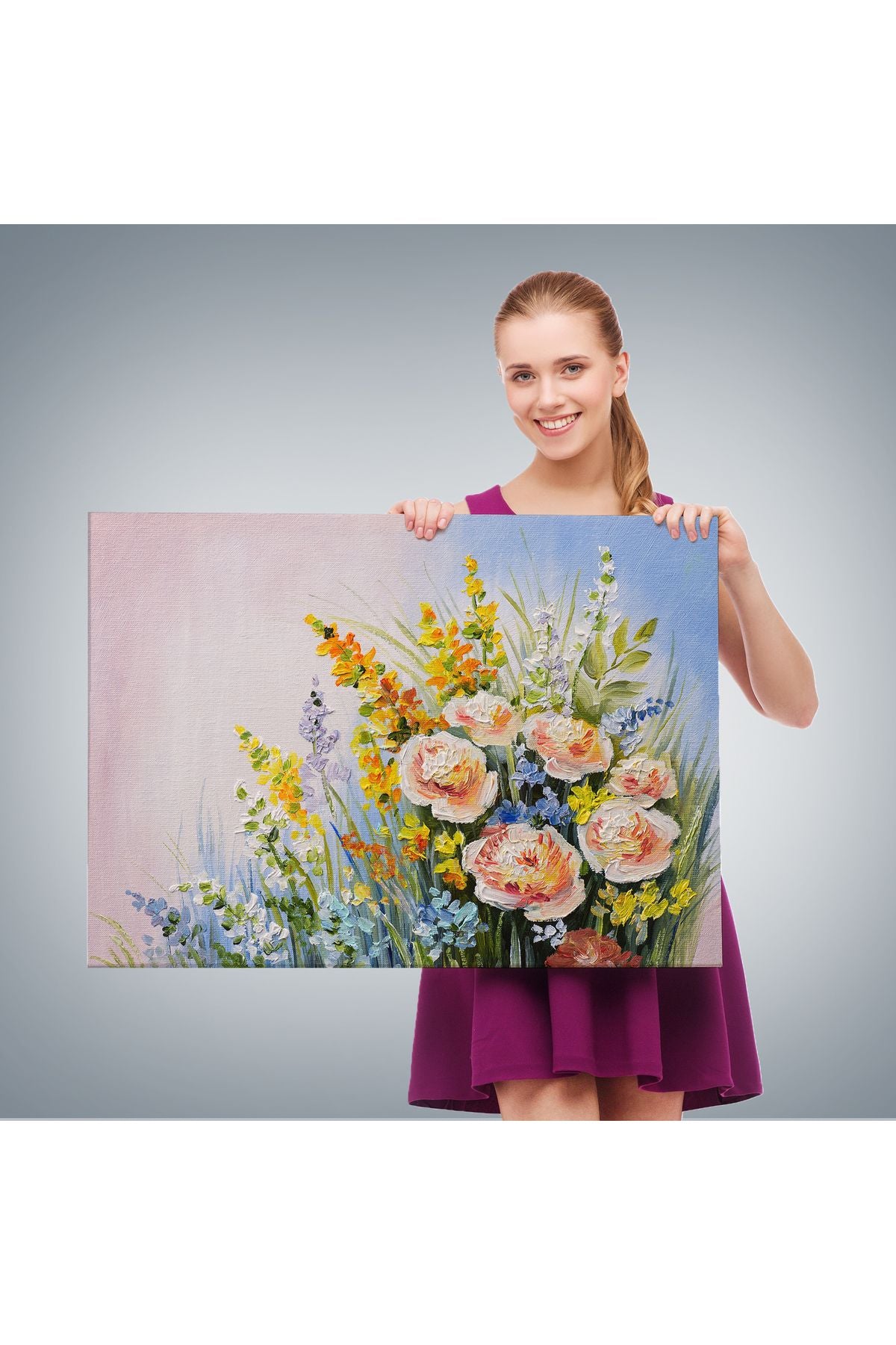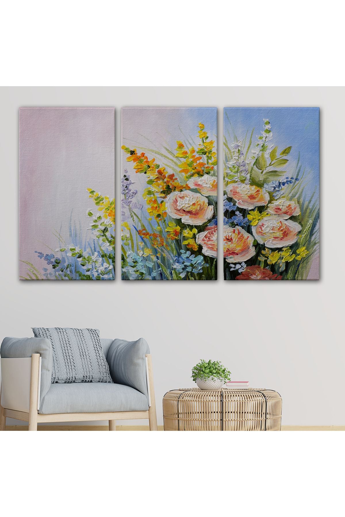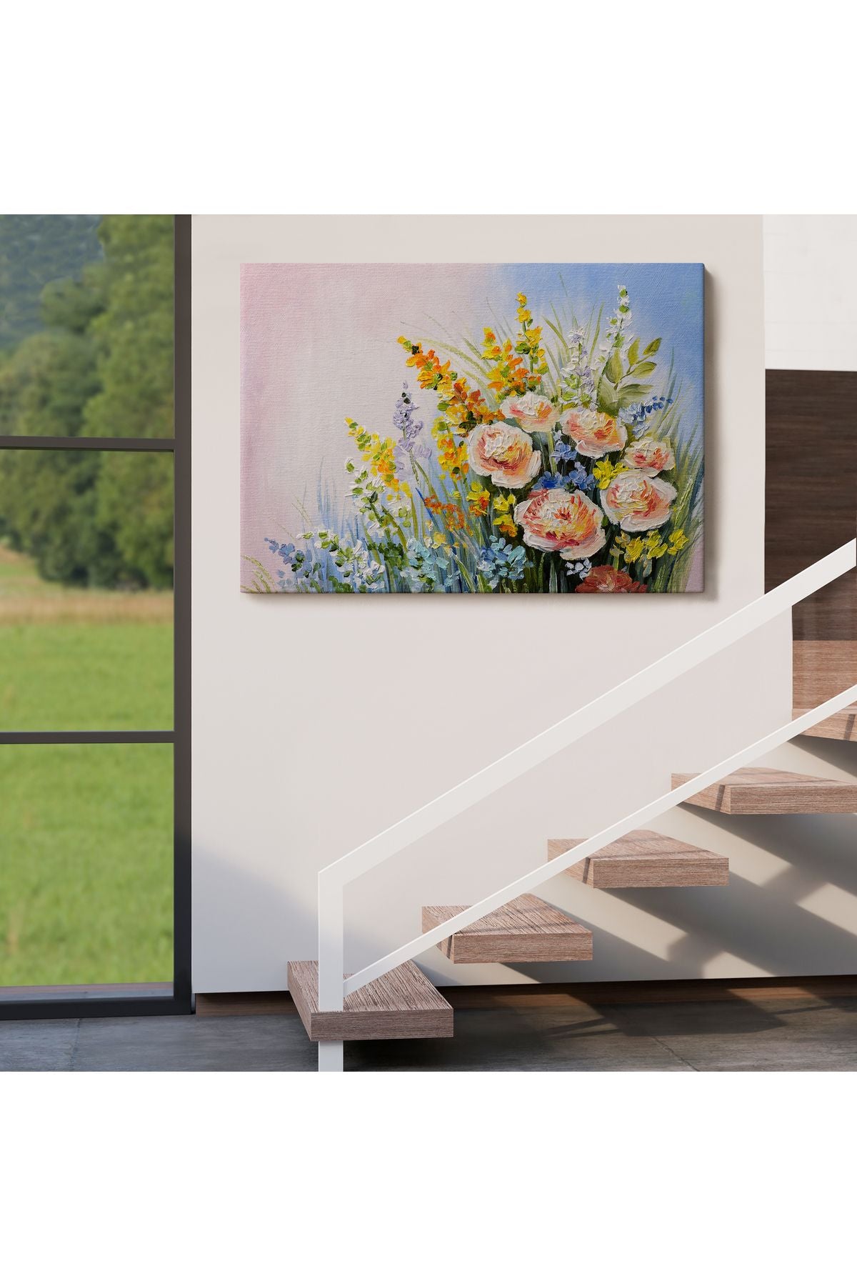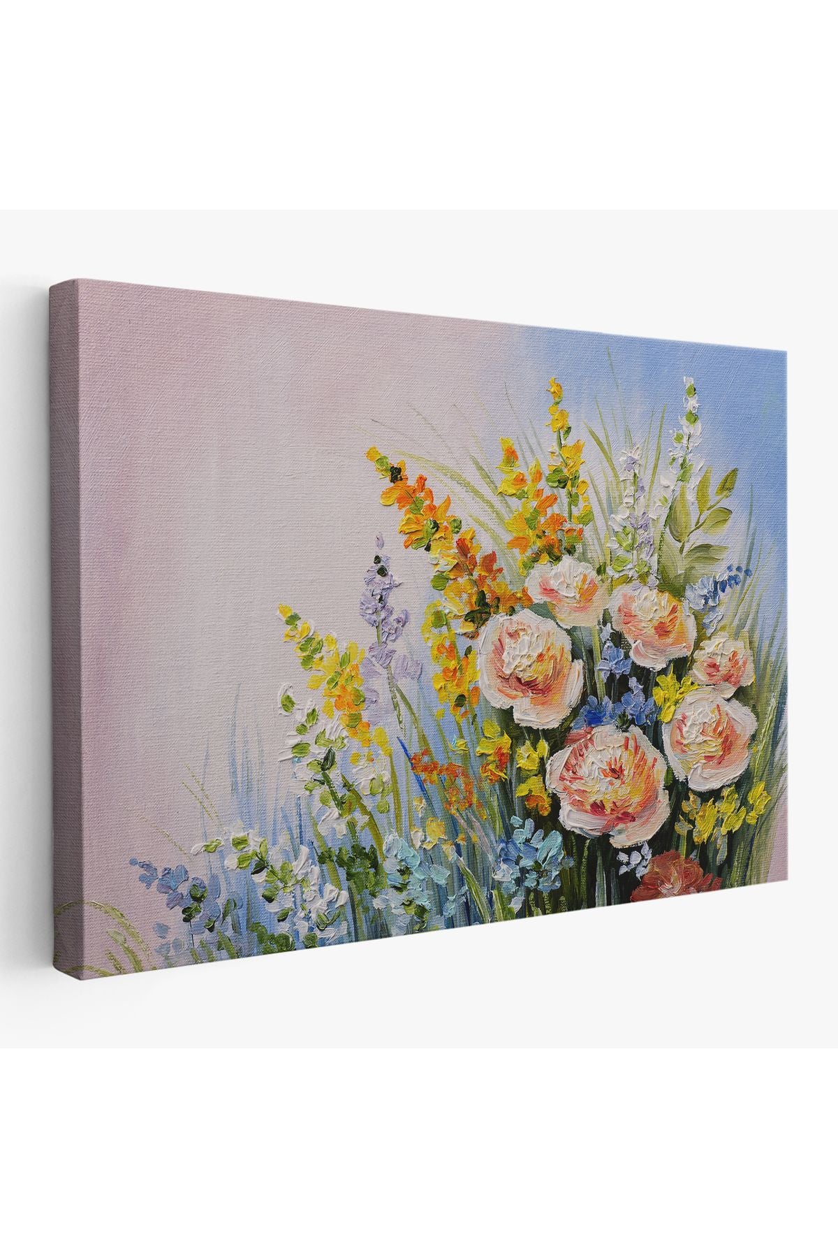 Soyut Yaz Çiçekleri Yağlıboya Görünüm Dekoratif Kanvas Duvar Tablosu-3496