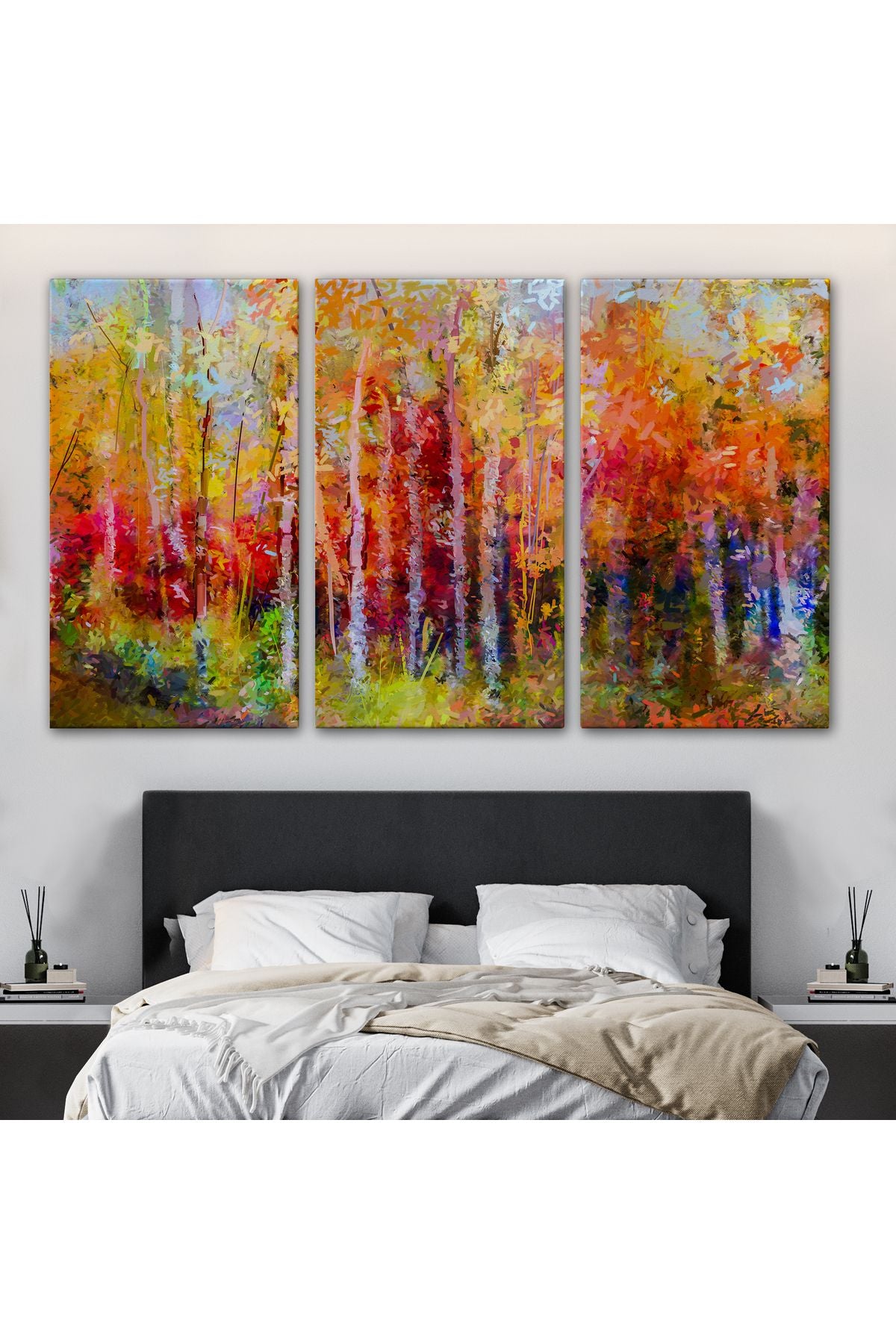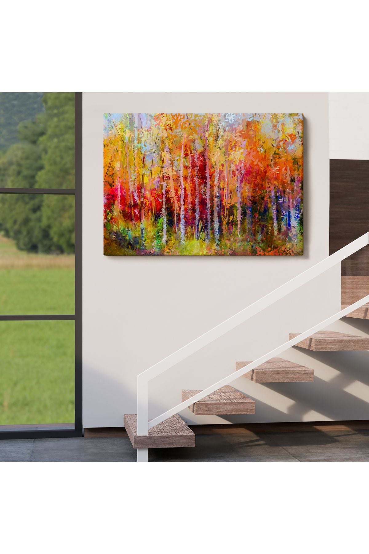 Son Bahar Ağaçları Yağlıboya Görünüm Dekoratif Kanvas Duvar Tablosu-3506