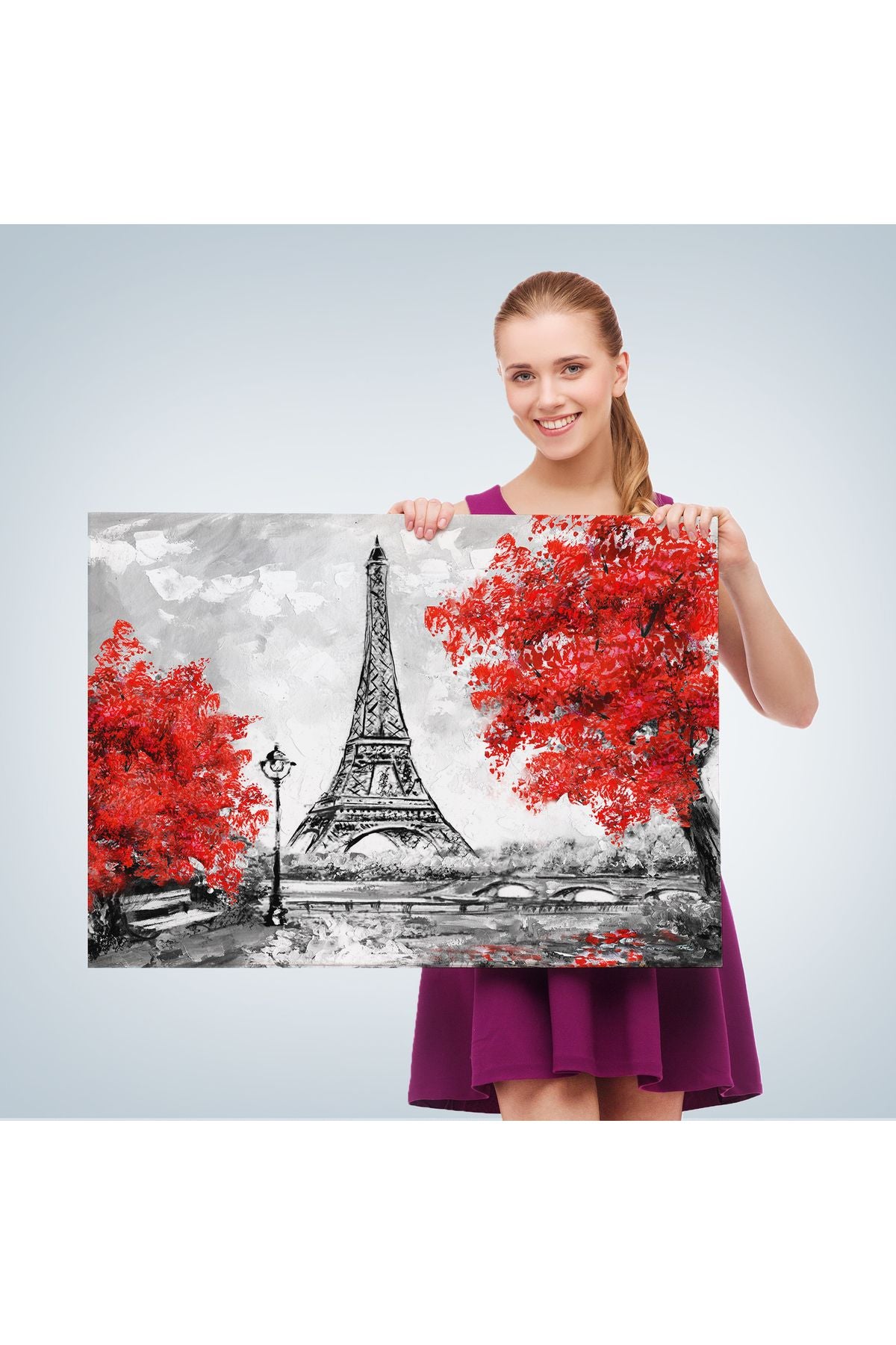 Paris Etfel Kulesi Yağlıboya Görünüm Dekoratif Kanvas Duvar Tablosu-3508