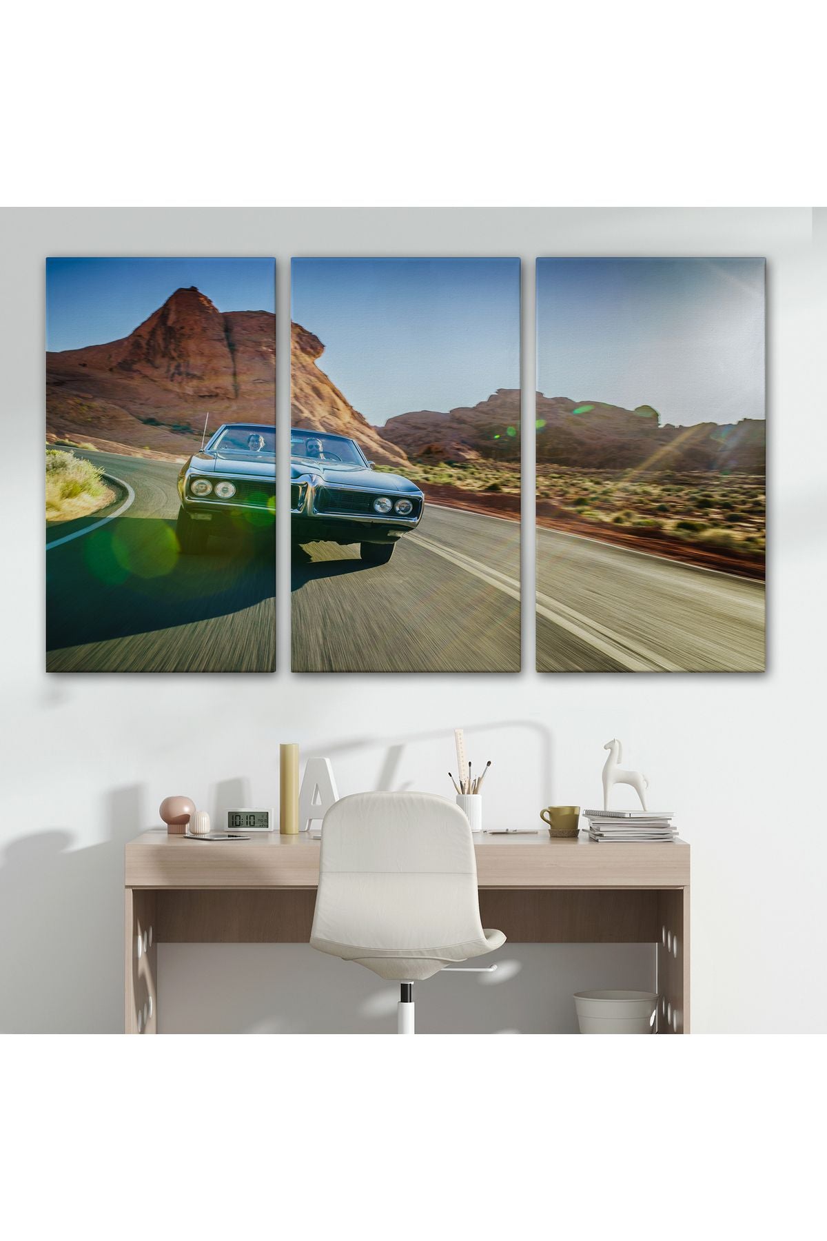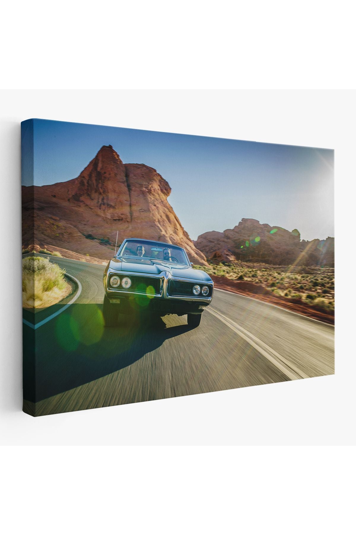 Çölde Eski Araba Dekoratif Kanvas Duvar Tablosu-3516
