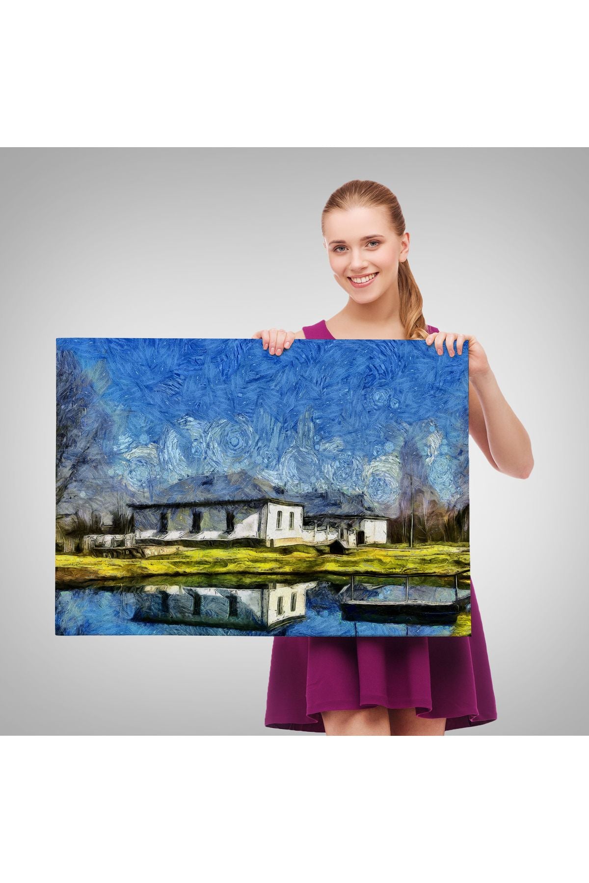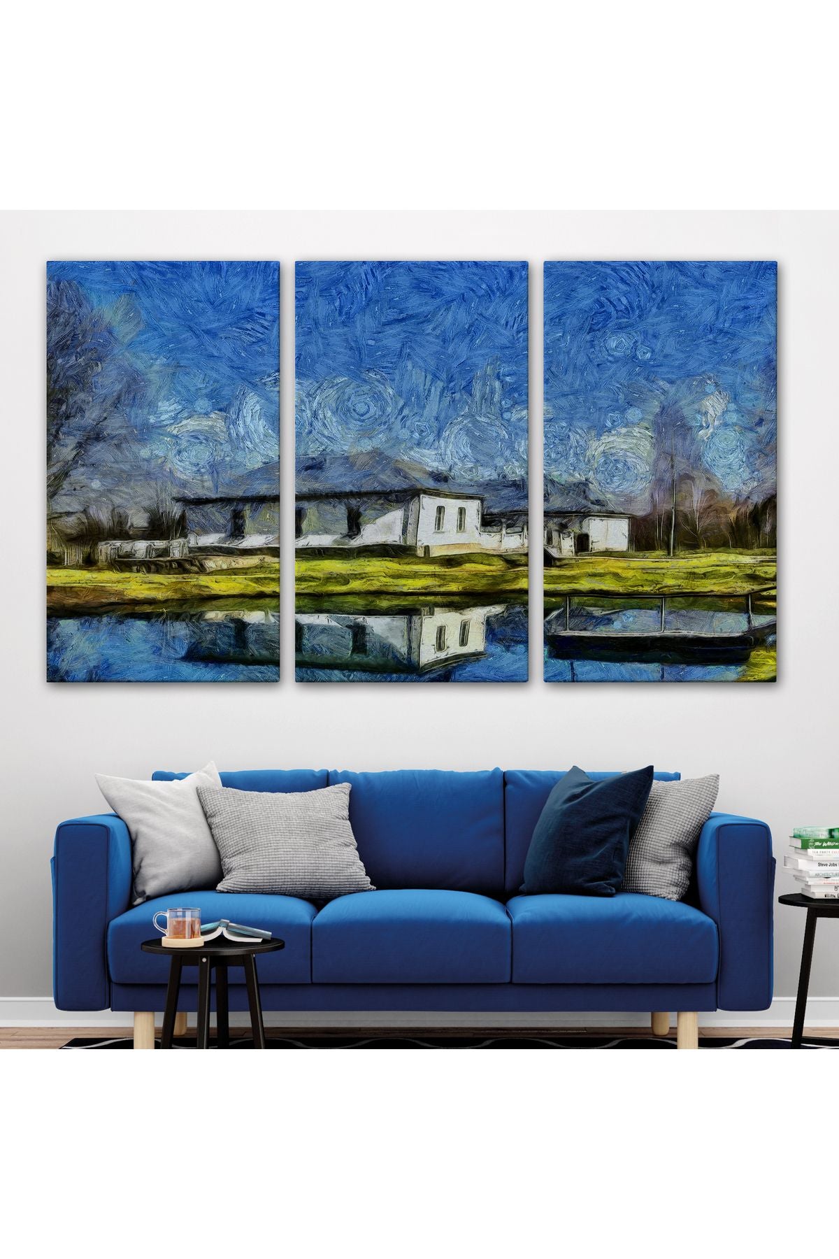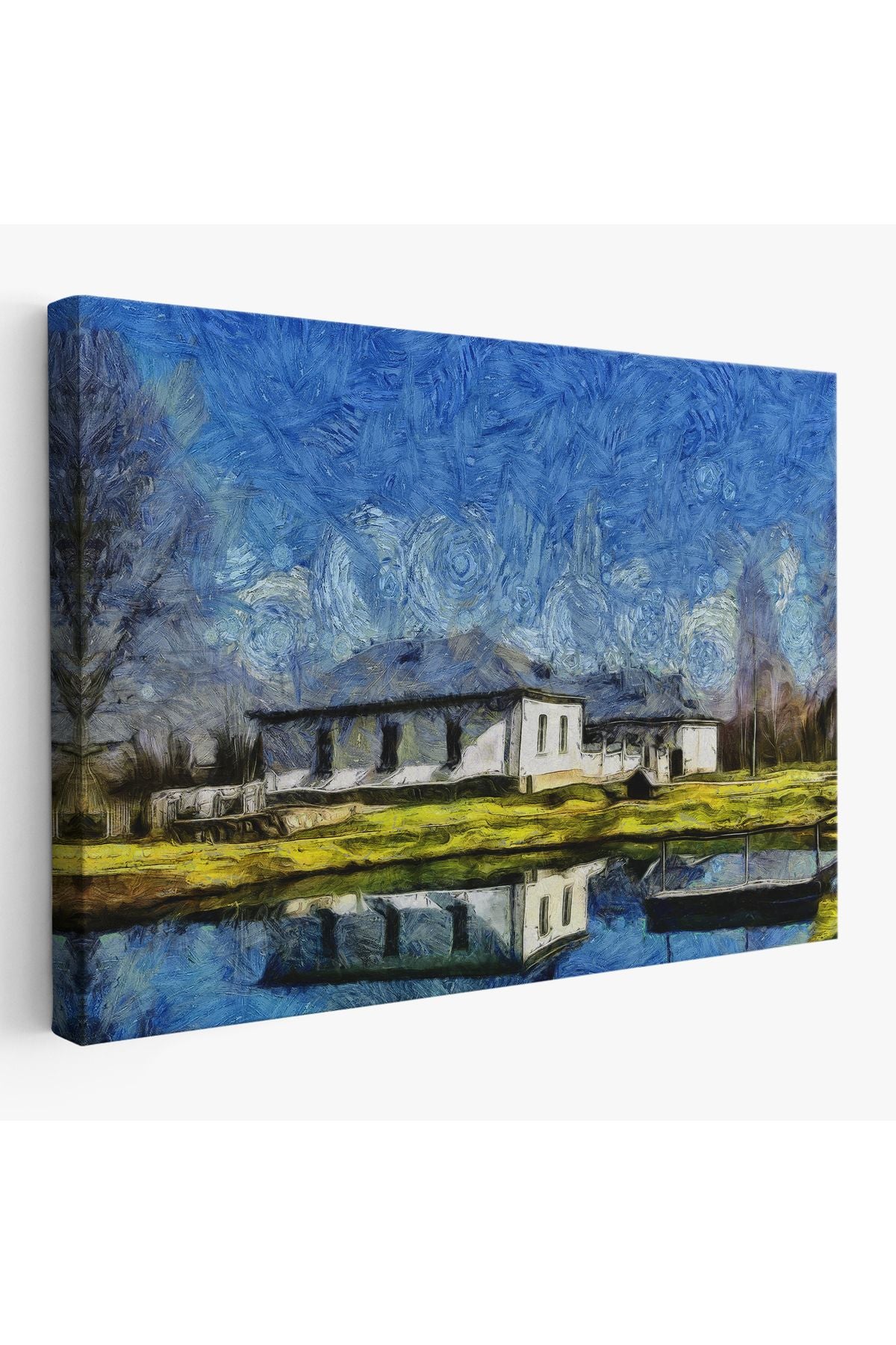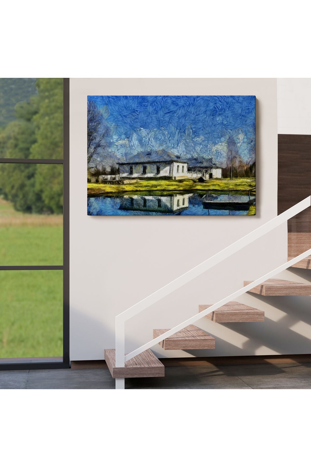 Göl Kenarındaki Köy Evi Dekoratif Duvar Tablosu-3528