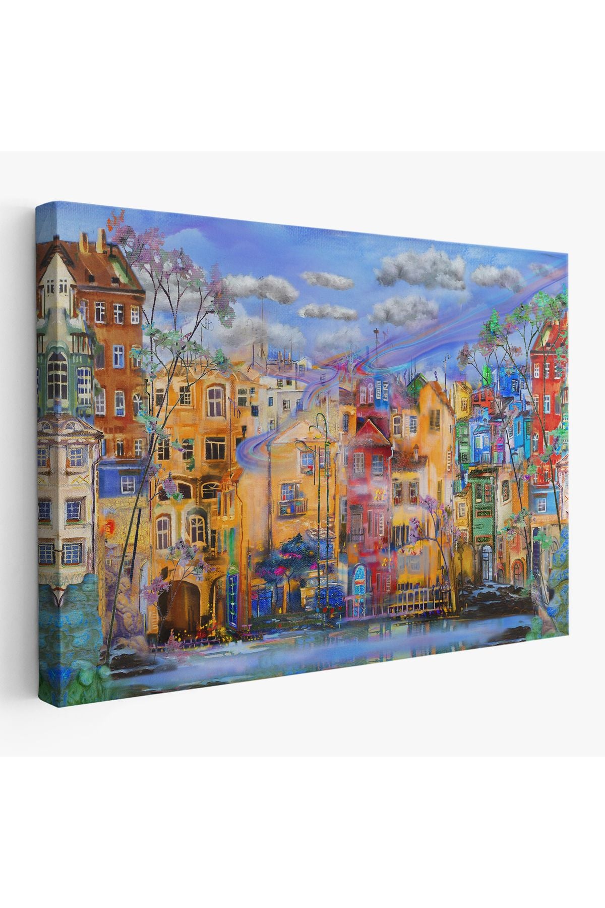Eski Avrupa Kasabası Yağlıboya Görünüm Dekoratif Kanvas Tablo-3536