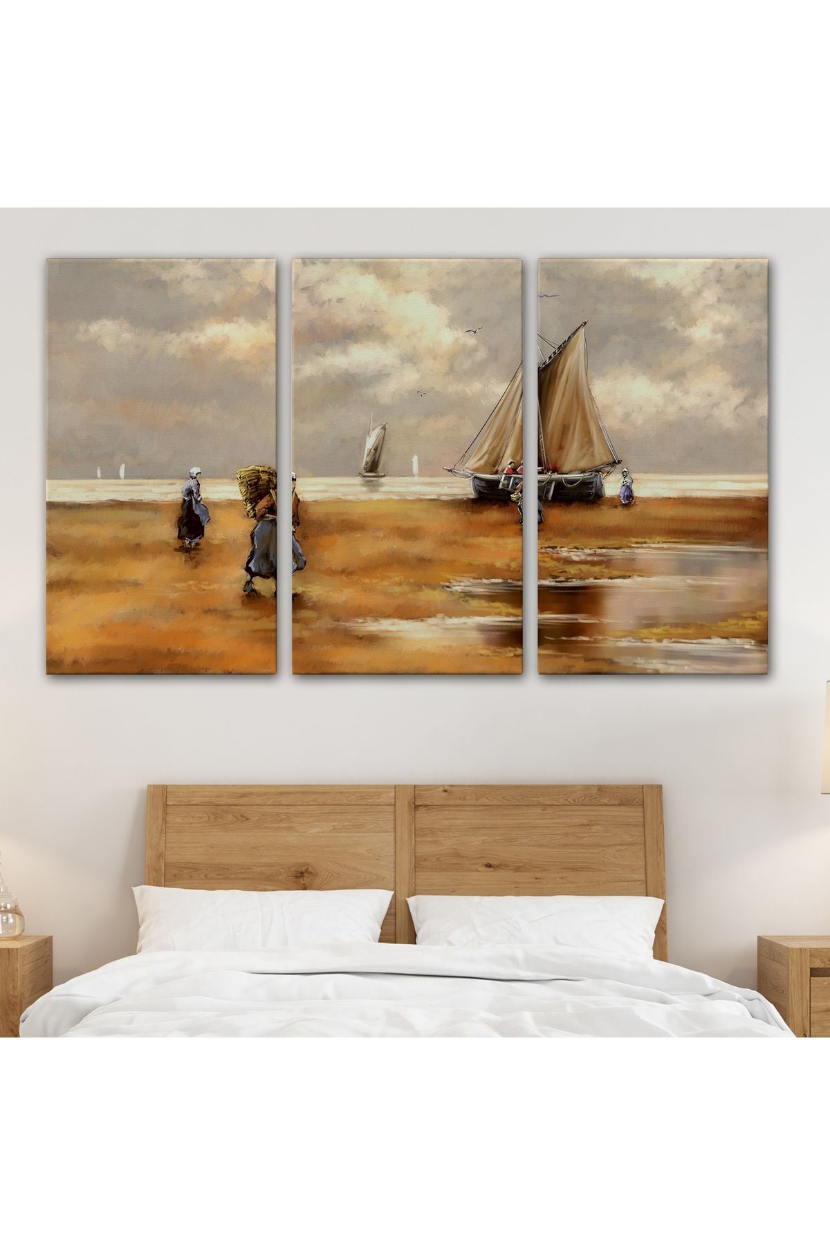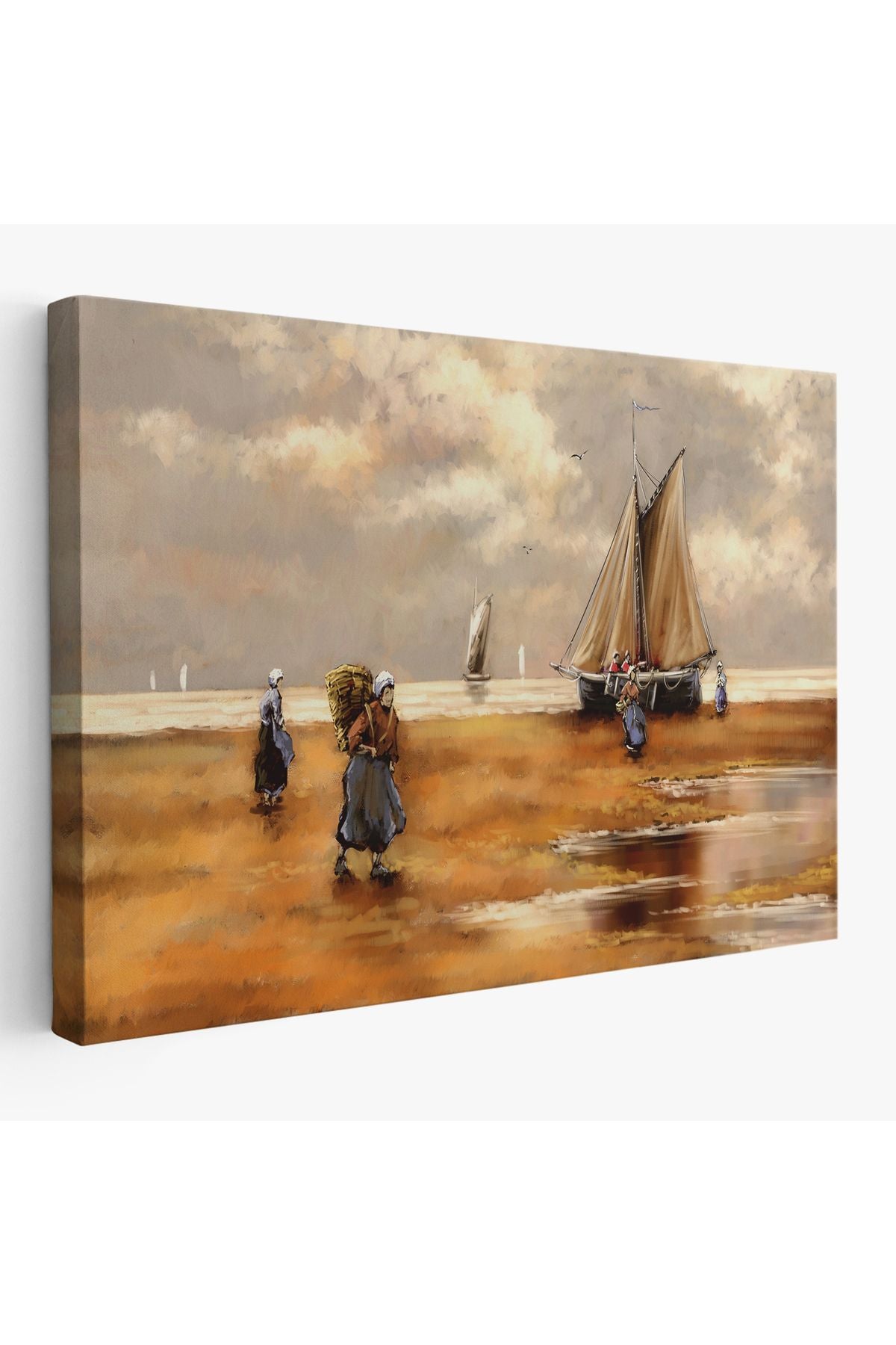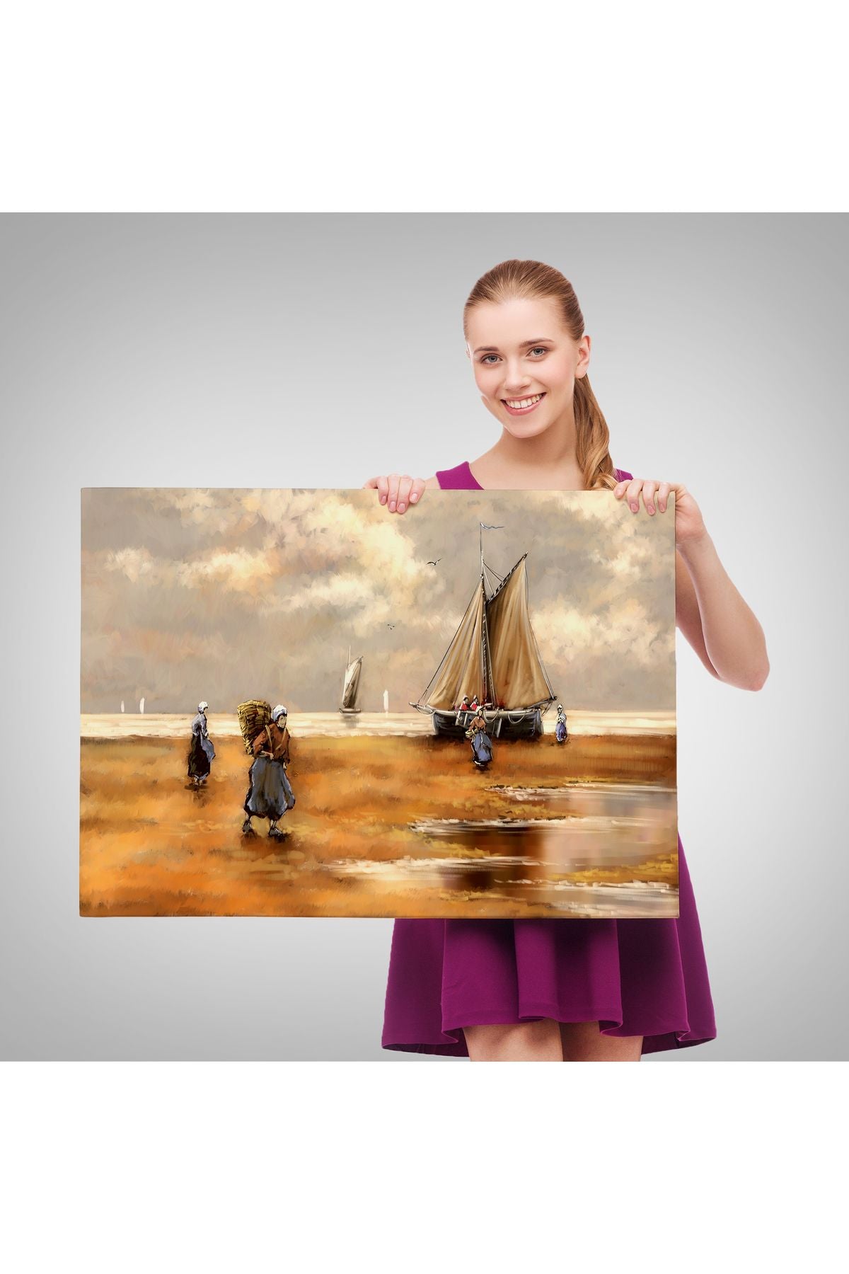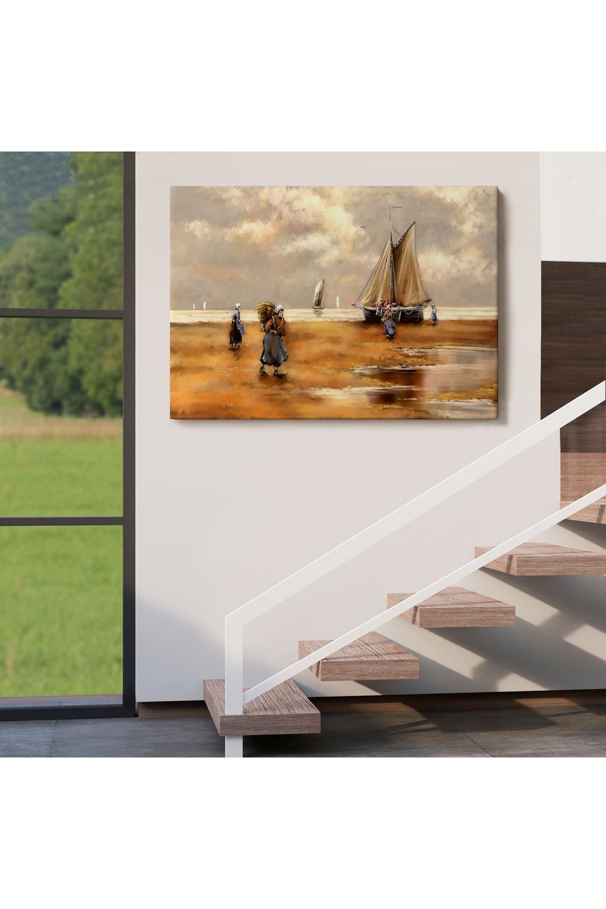 Balıkçılar ve Sahildeki Yelkenli Duvar Tablosu-3548
