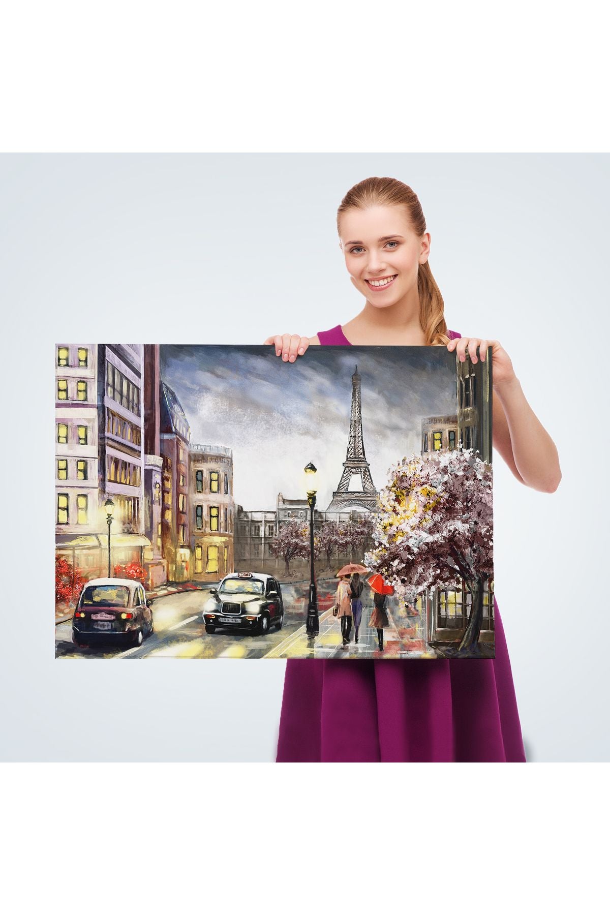 DB HG Eyfel Manzarası Yağlıboya Görünüm Dekoratif Kanvas Duvar Tablosu-3554