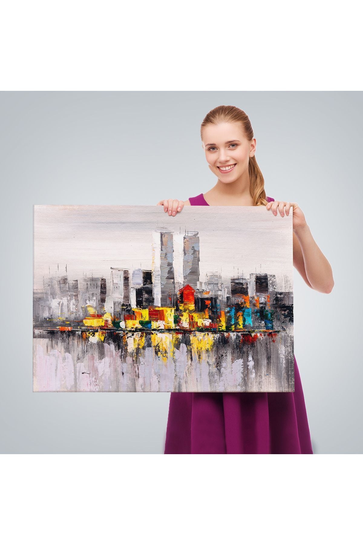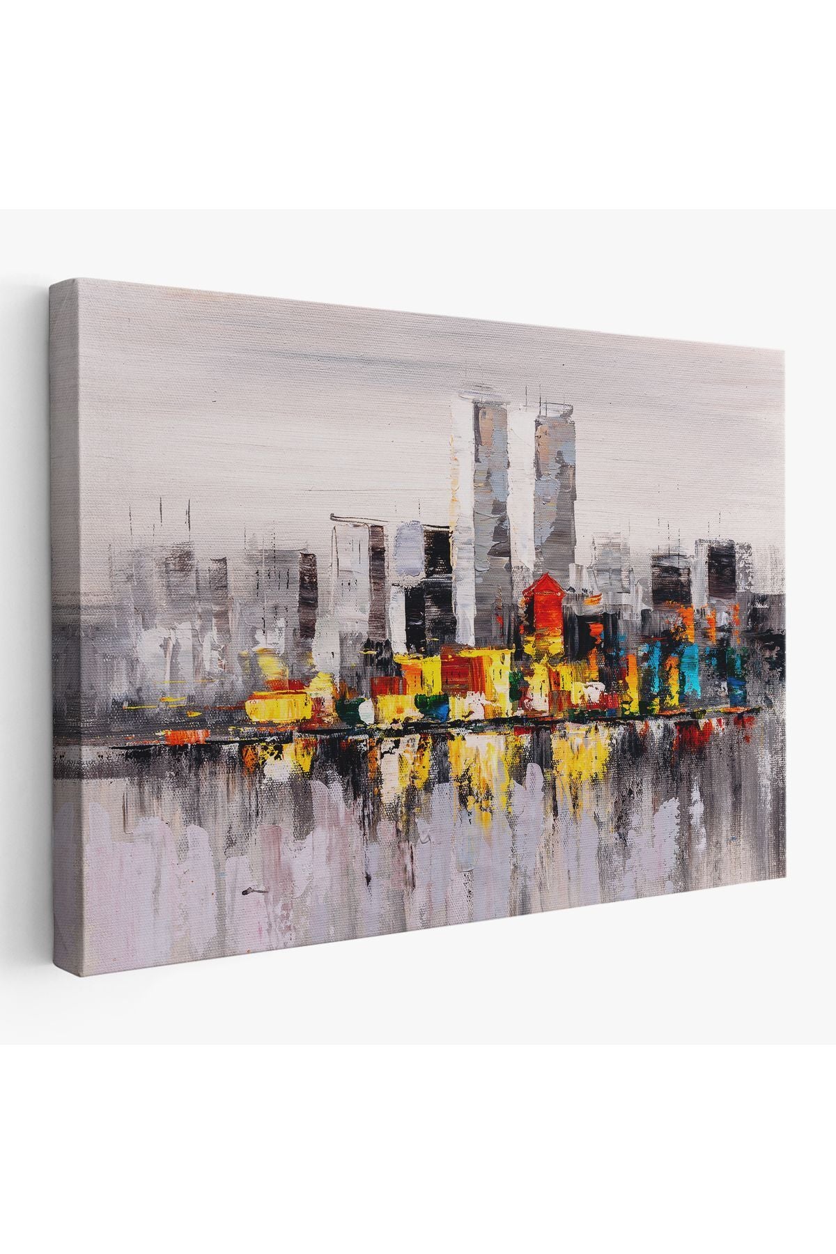 New York Şehir Manzarası Yağlıboya Görünüm Dekoratif Kanvas Duvar Tablosu-3557