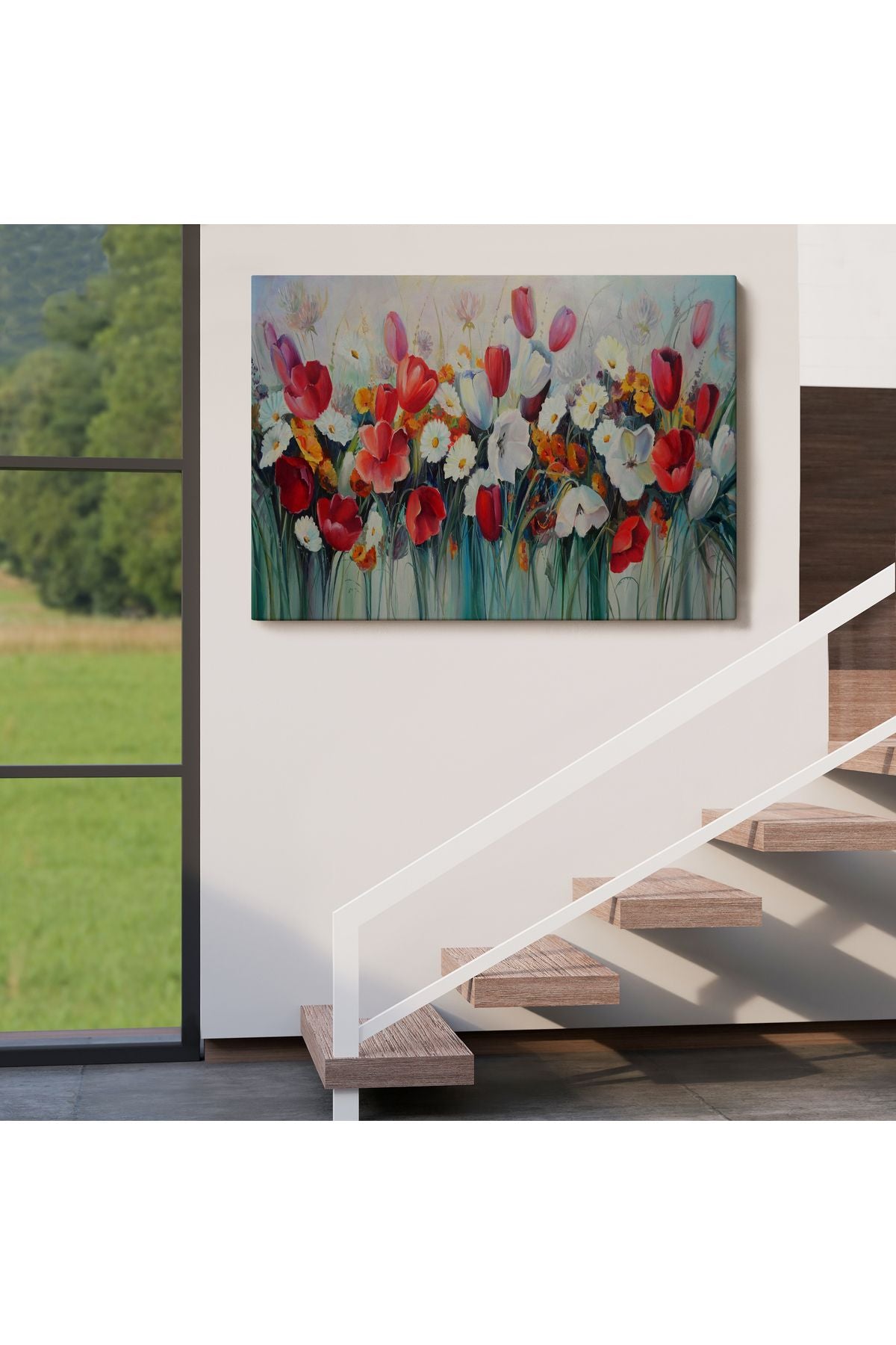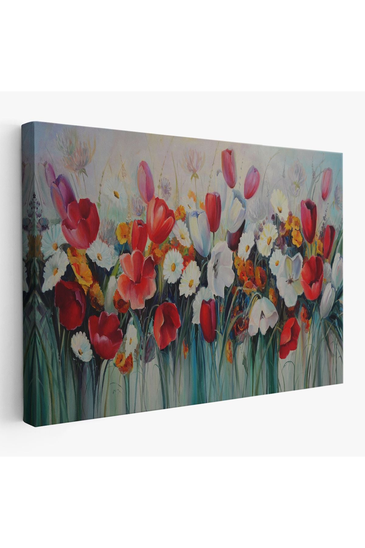Kır Çiçekleri Yağlıboya Görünüm Dekoratif Kanvas Duvar Tablosu-3581