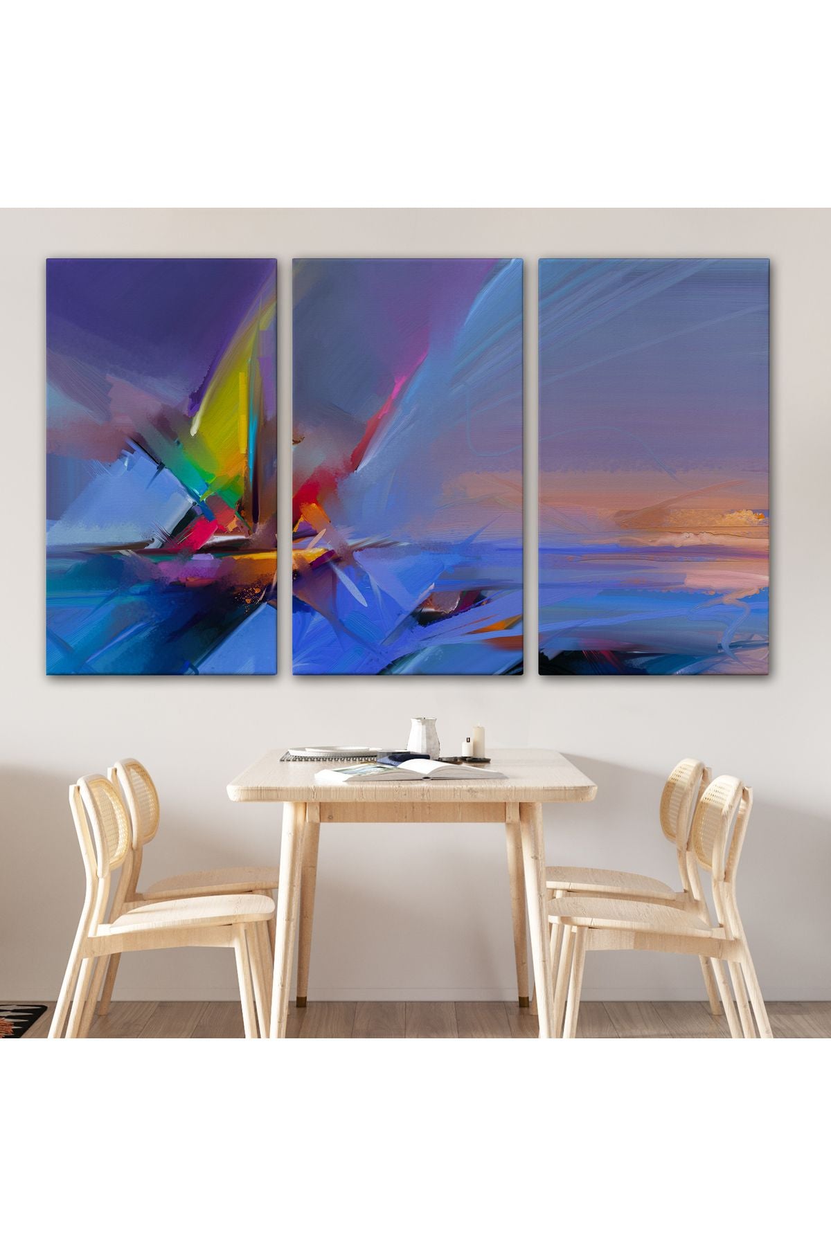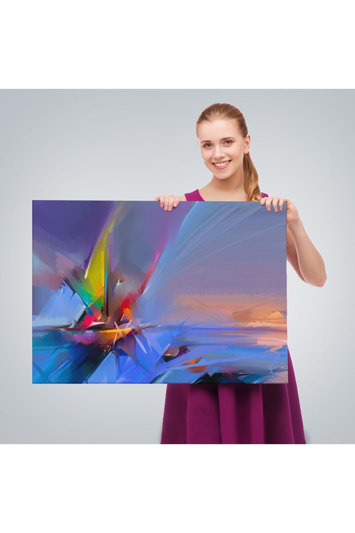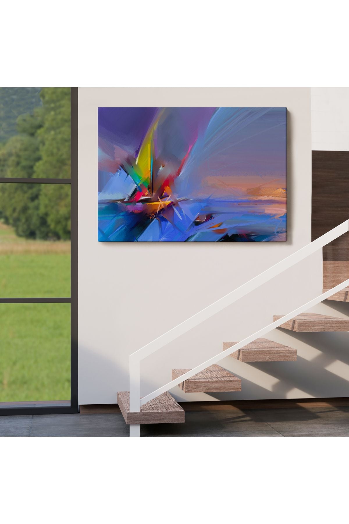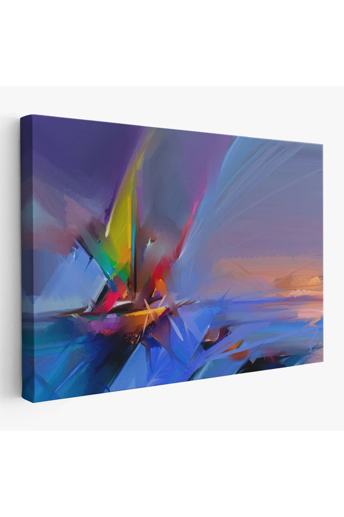 Fırça Darbeli Yelkenli Soyut Yağlıboya Görünüm Kanvas Tablosu-3585