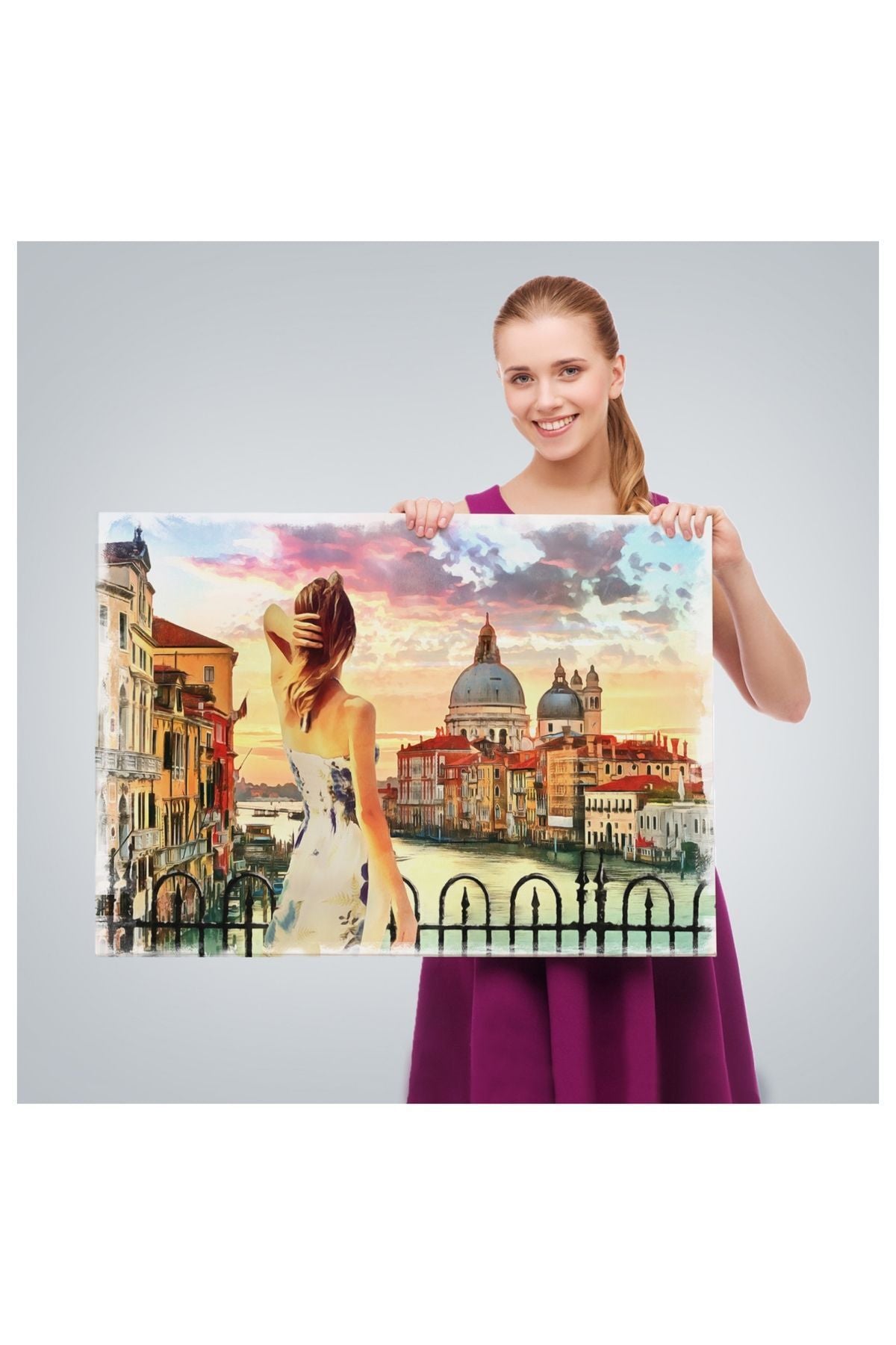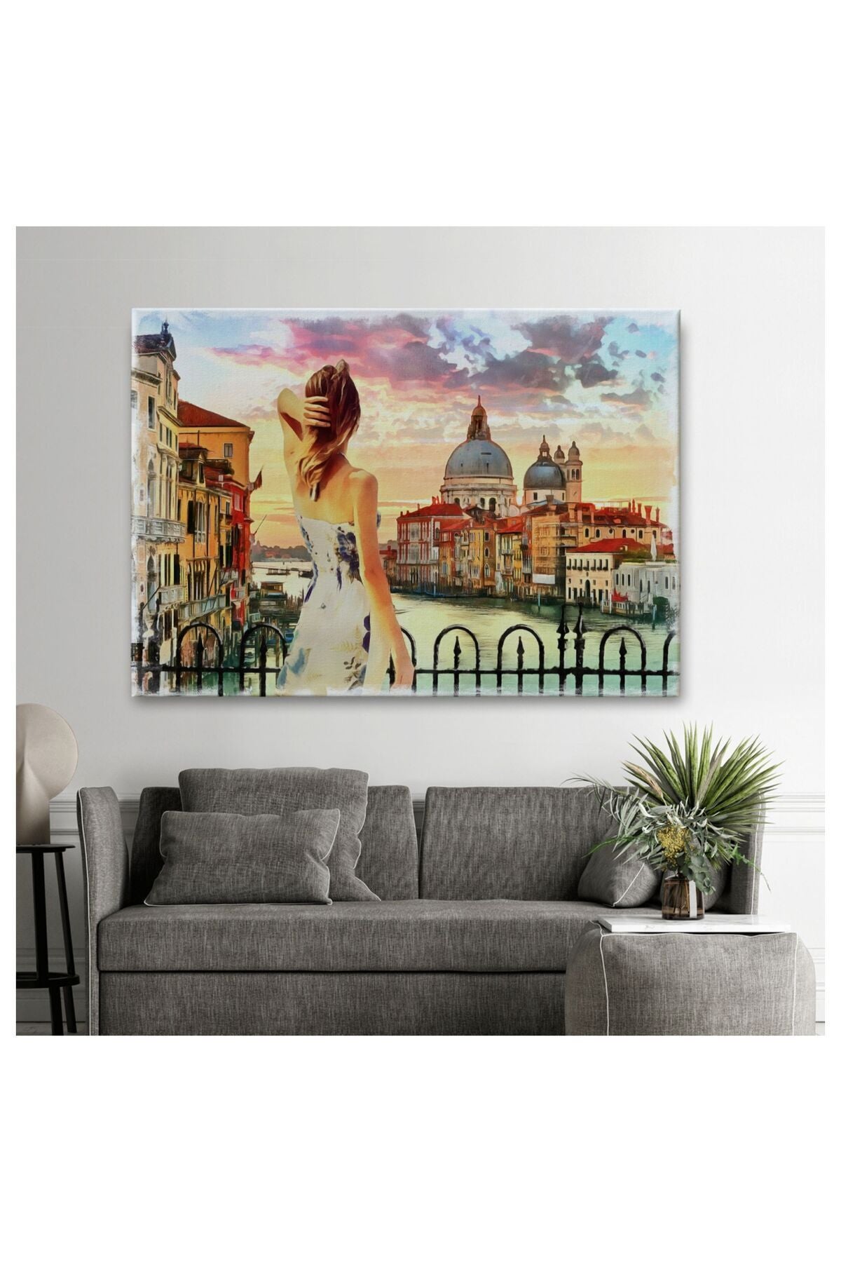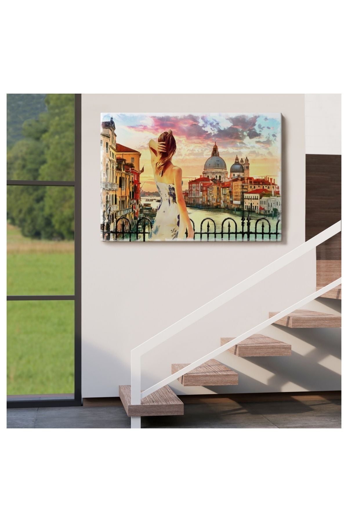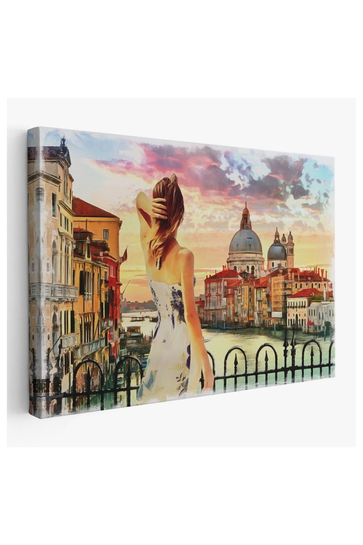 Kanvas, Duvar Tablosu, Dekoratif, Yağlıboya Görünüm Venedikte Kanala Bakan Kız 3590 EGKNV
