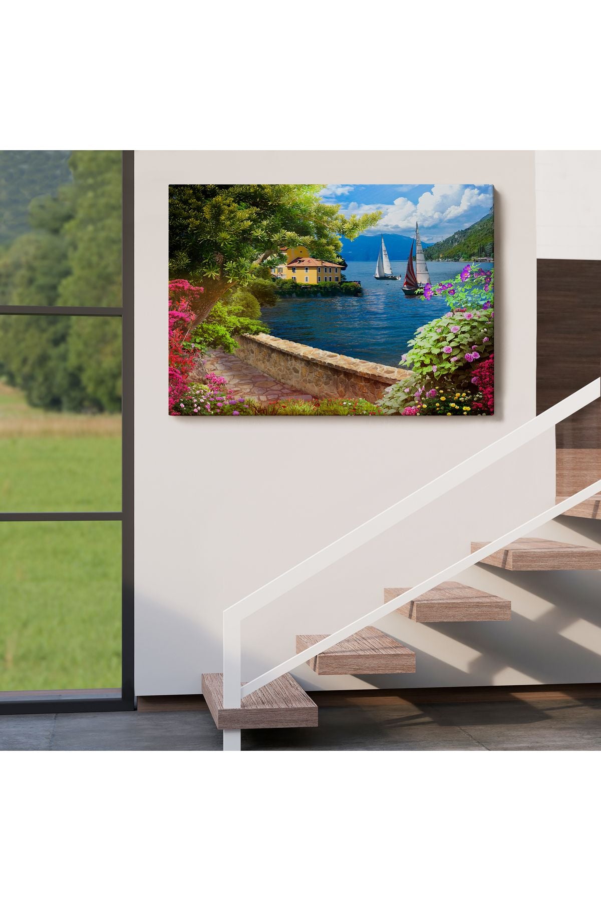 Denize Açılan Çiçekli Yol Duvar Tablosu-3606