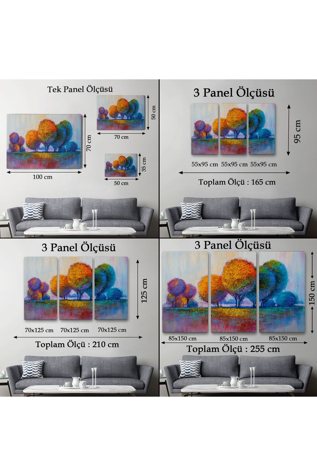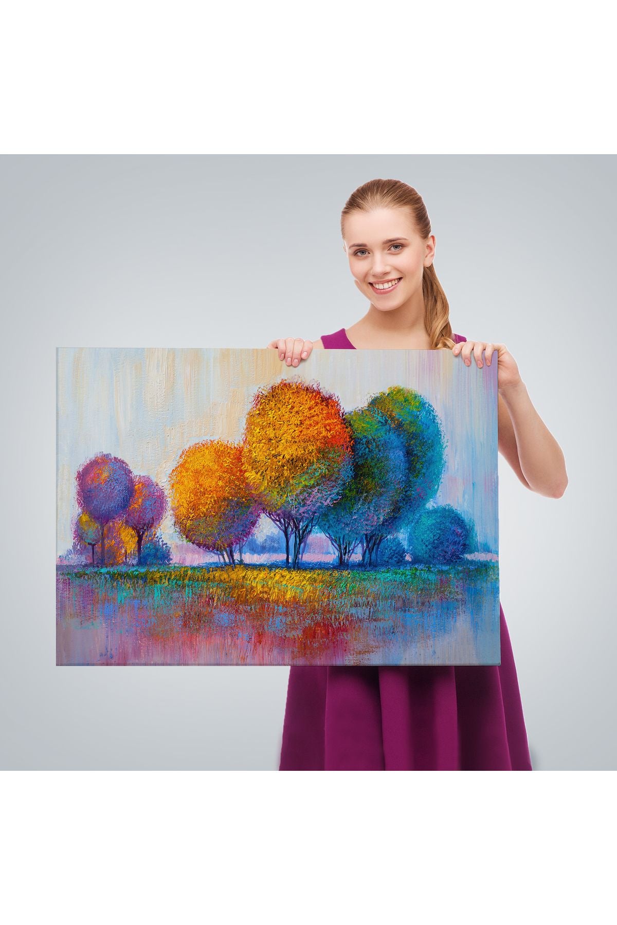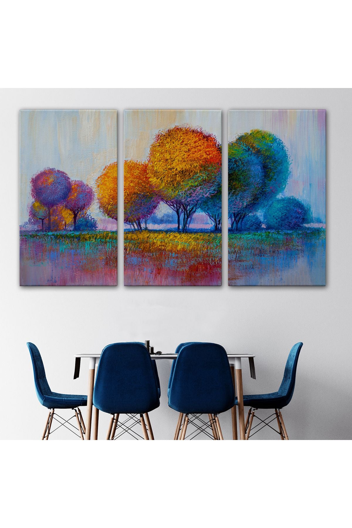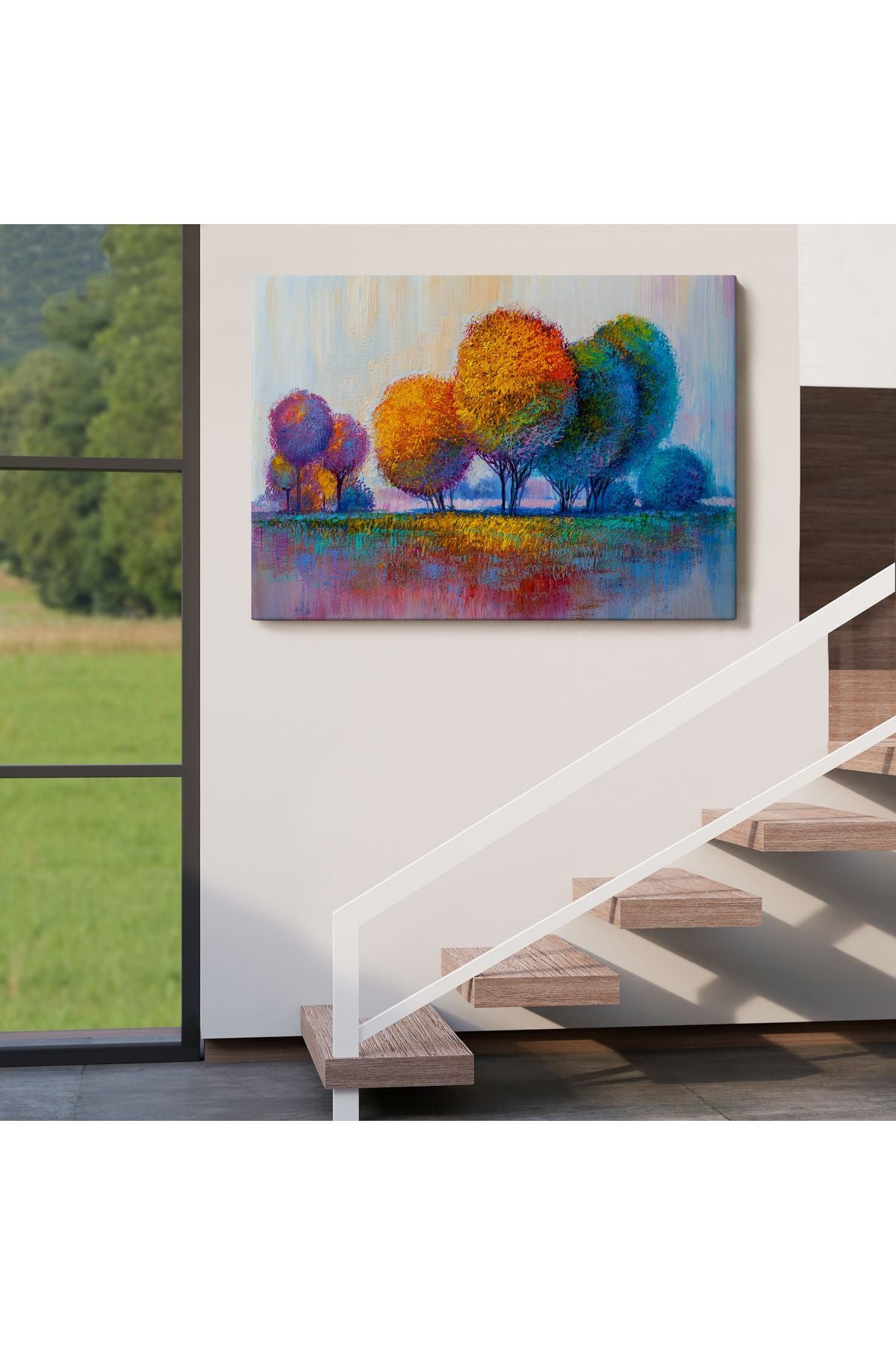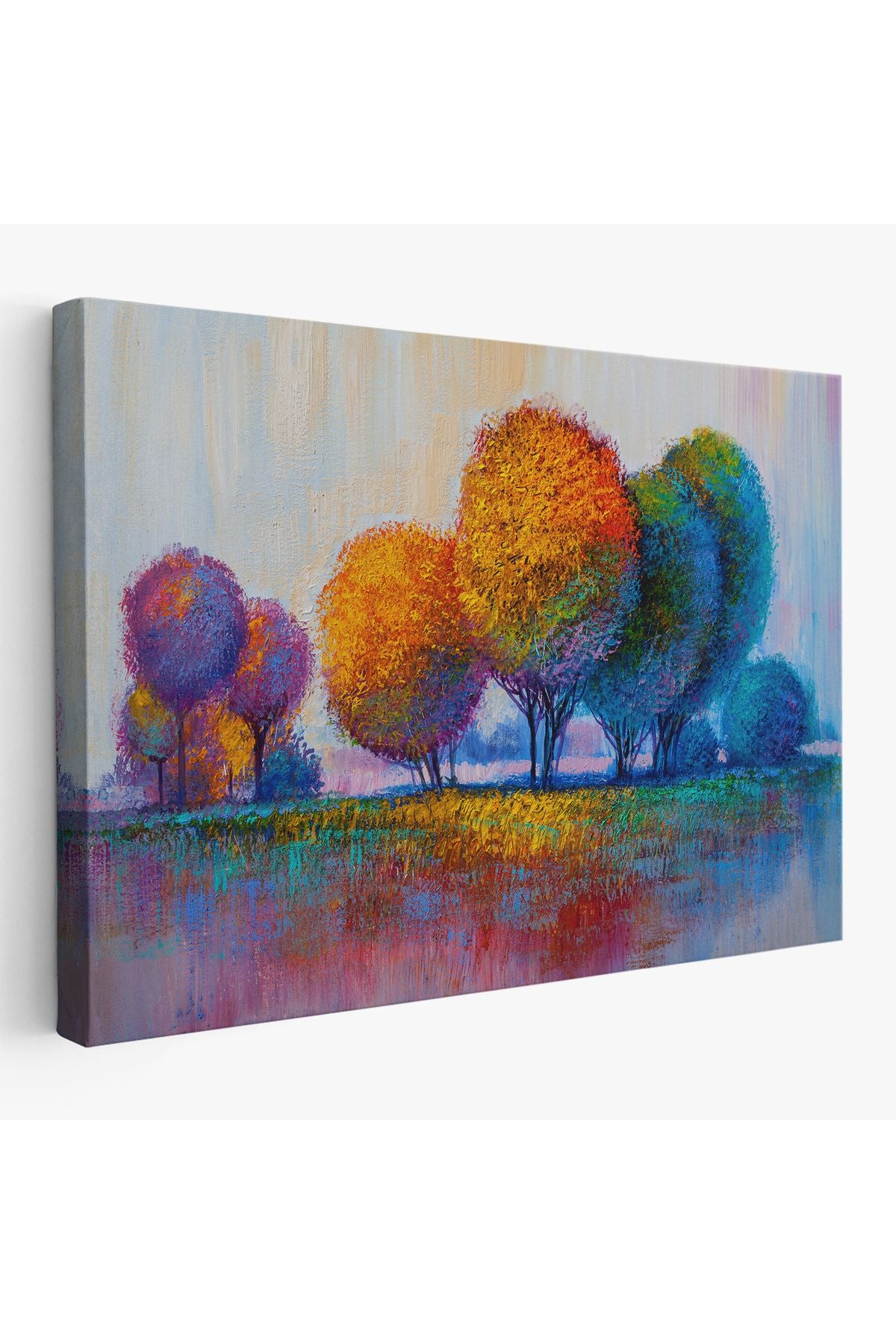 Renkli Ağaçlar Yağlıboya Görünüm Dekoratif Kanvas Duvar Tablosu-3608
