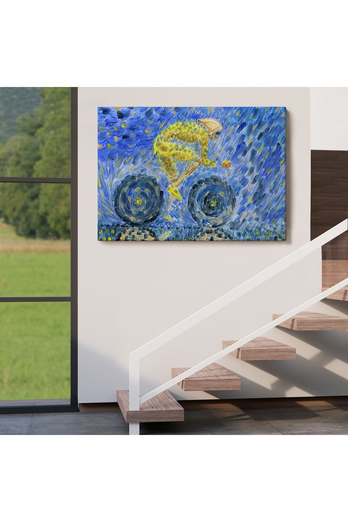 Yağmurda Süren Bisikletçi Yağlıboya Görünüm Dekoratif Kanvas Duvar Tablosu-3609