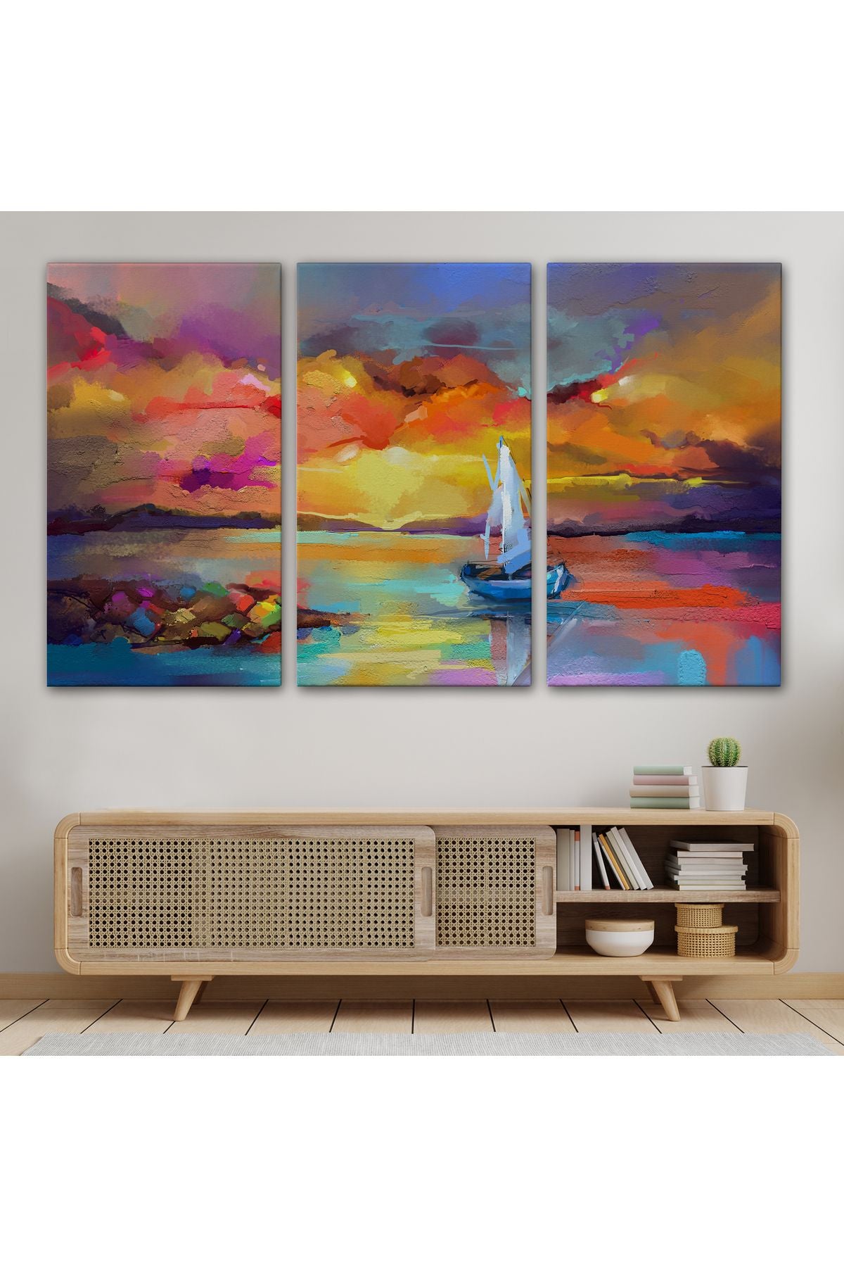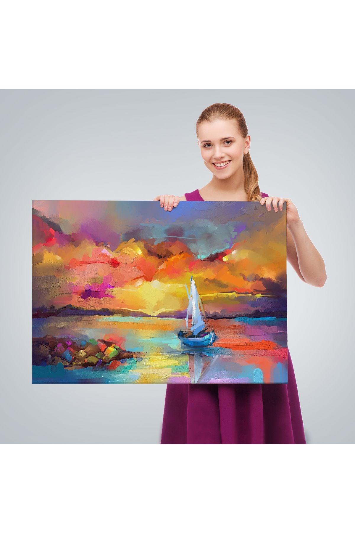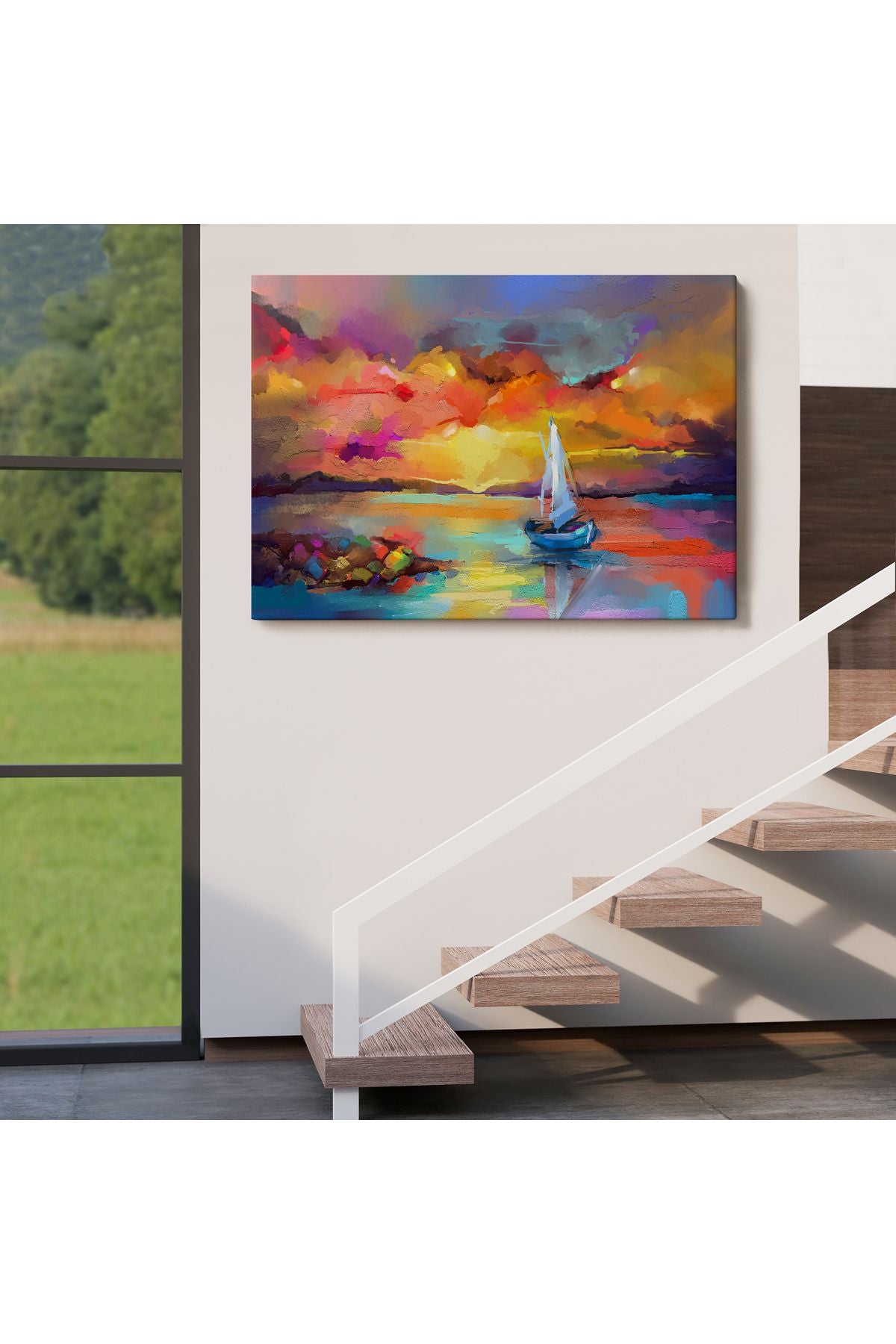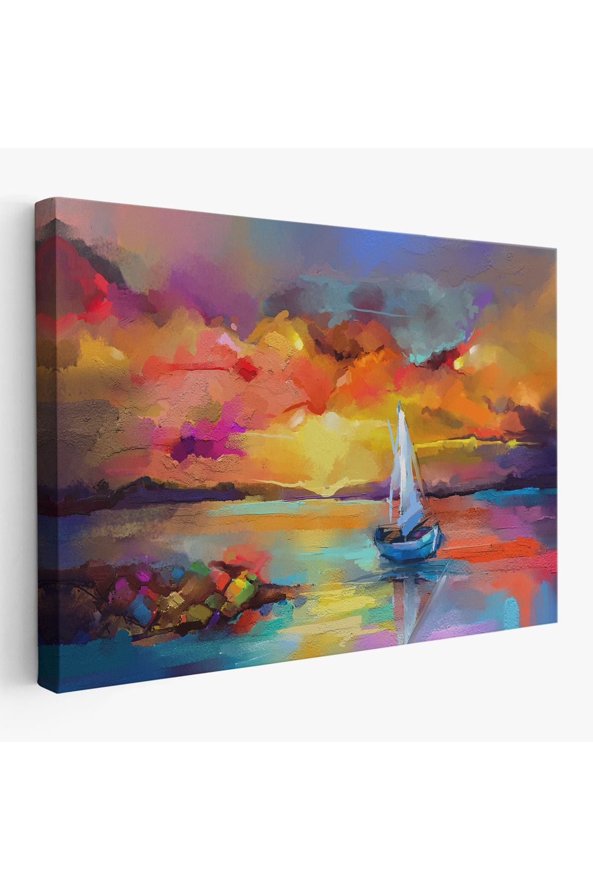 Denizdeki Yelkenli Yağlıboya Görünüm Dekoratif Kanvas Duvar Tablosu-3615