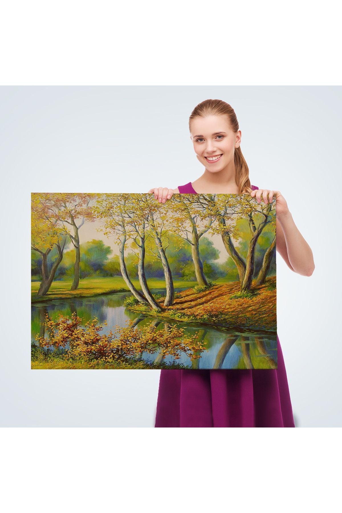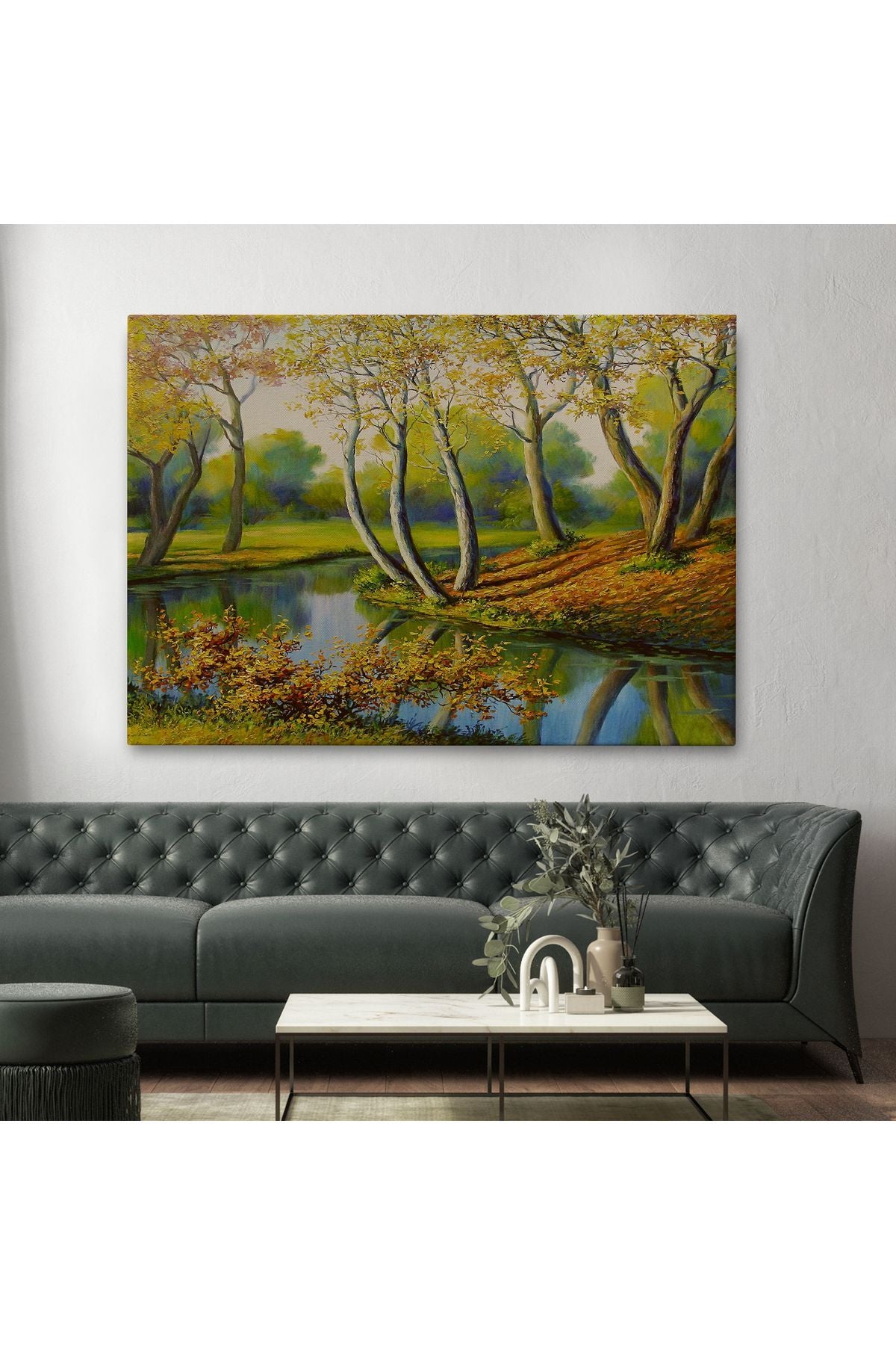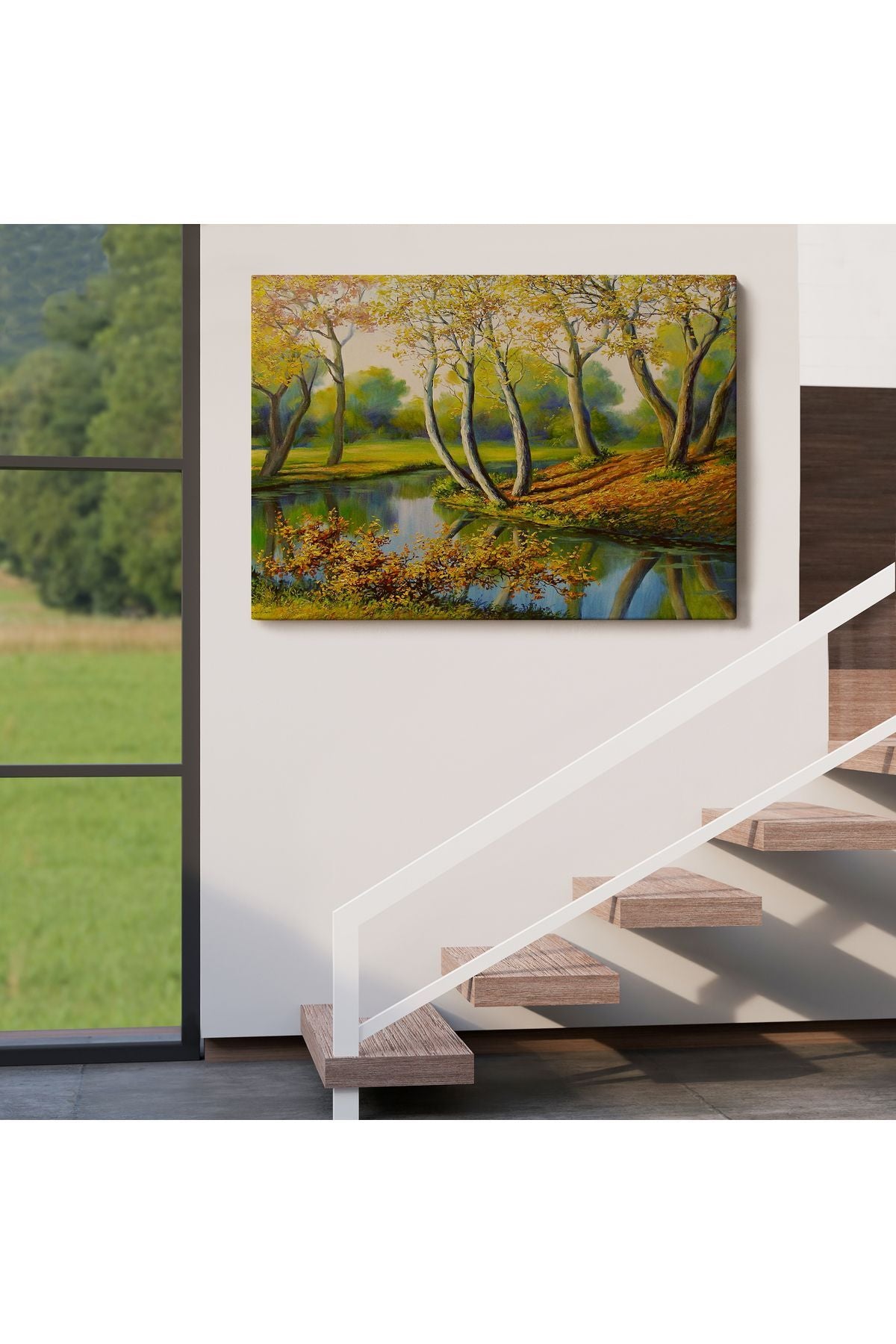 Nehir Manzaralı Yağlıboya Görünüm Dekoratif Kanvas Duvar Tablosu-3617