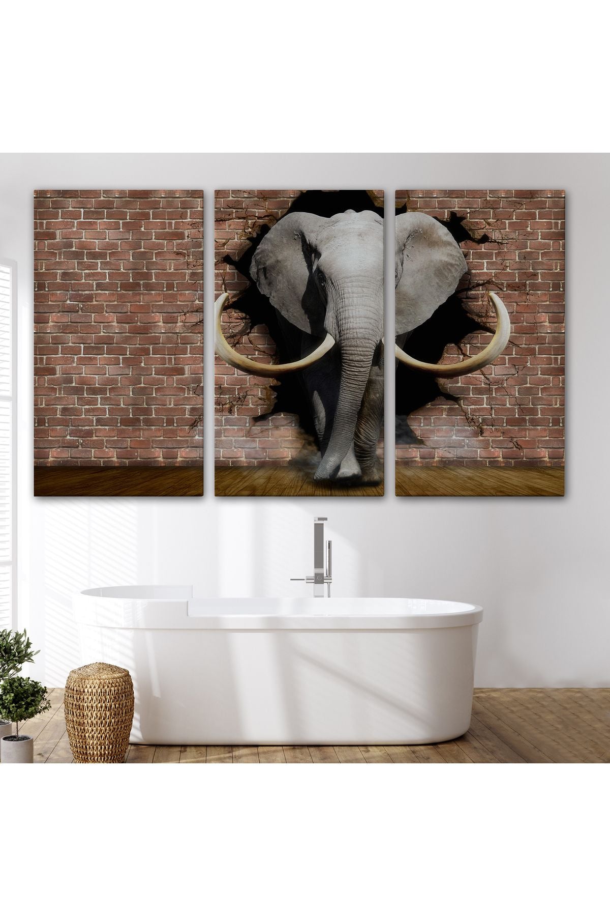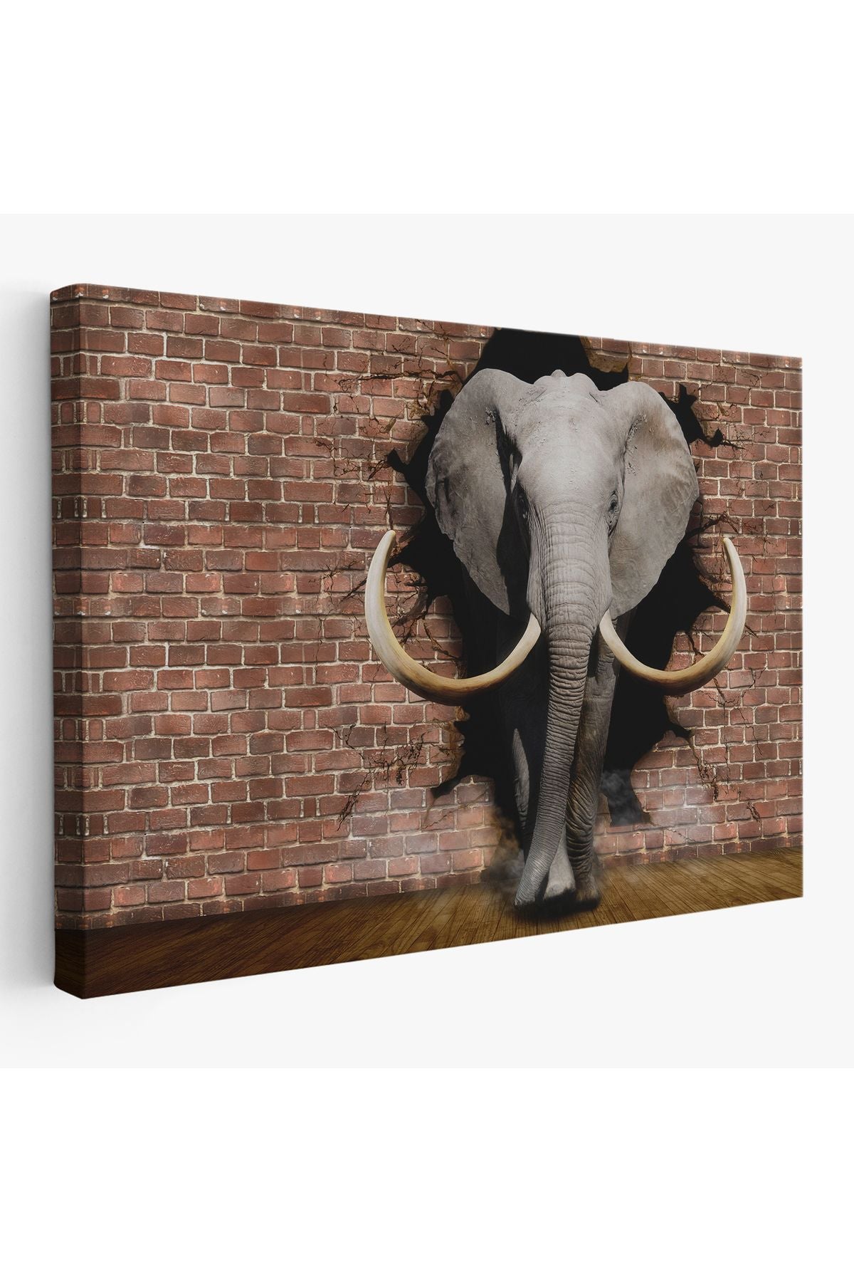 Duvardan Çıkan Fil Dekoratif Kanvas Duvar Tablosu-3620