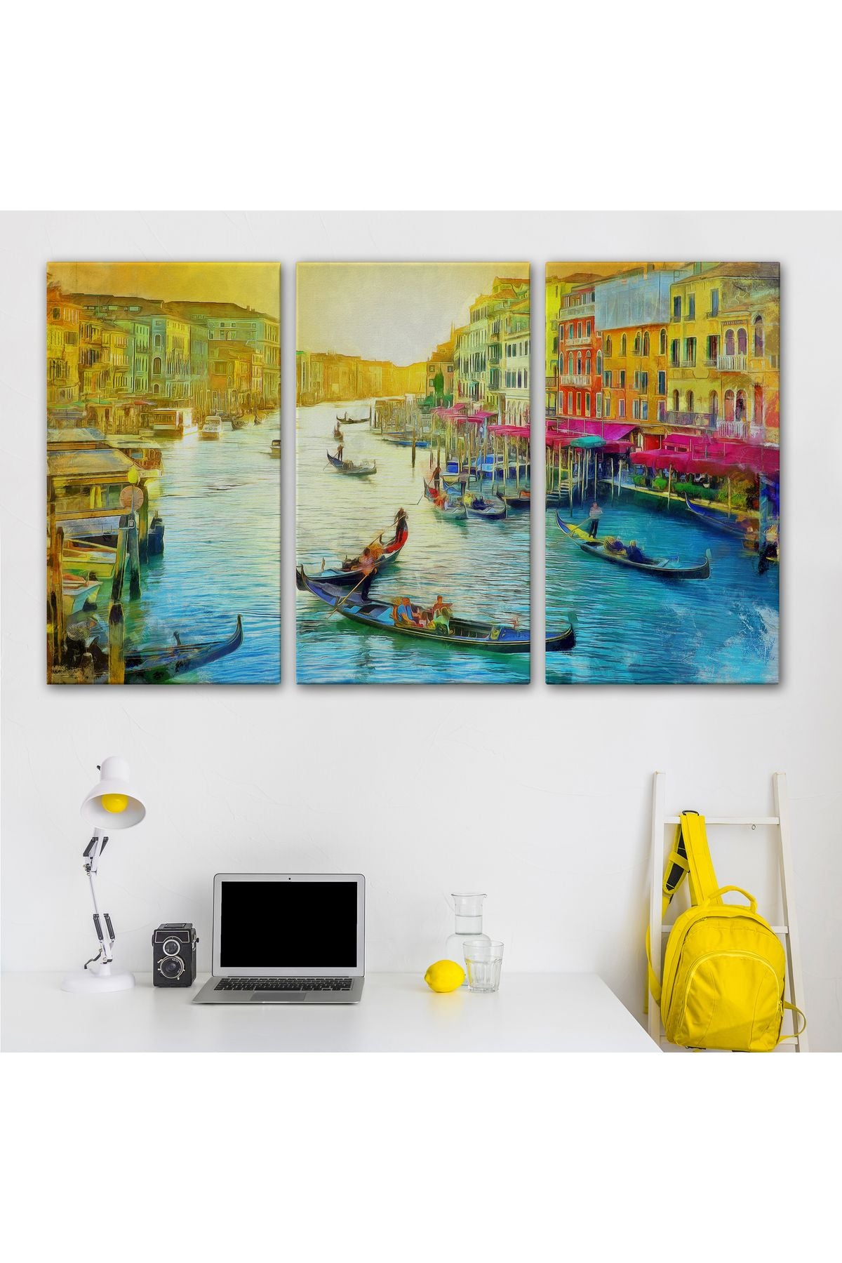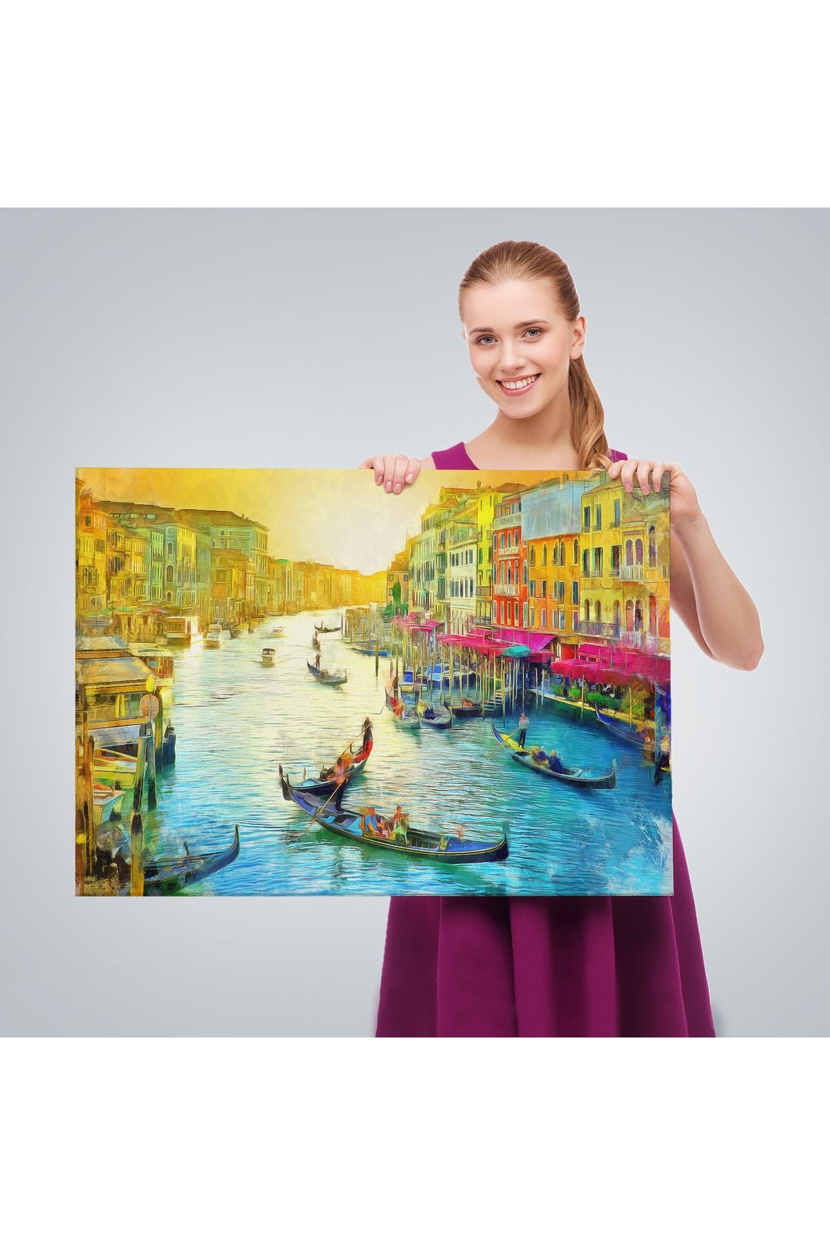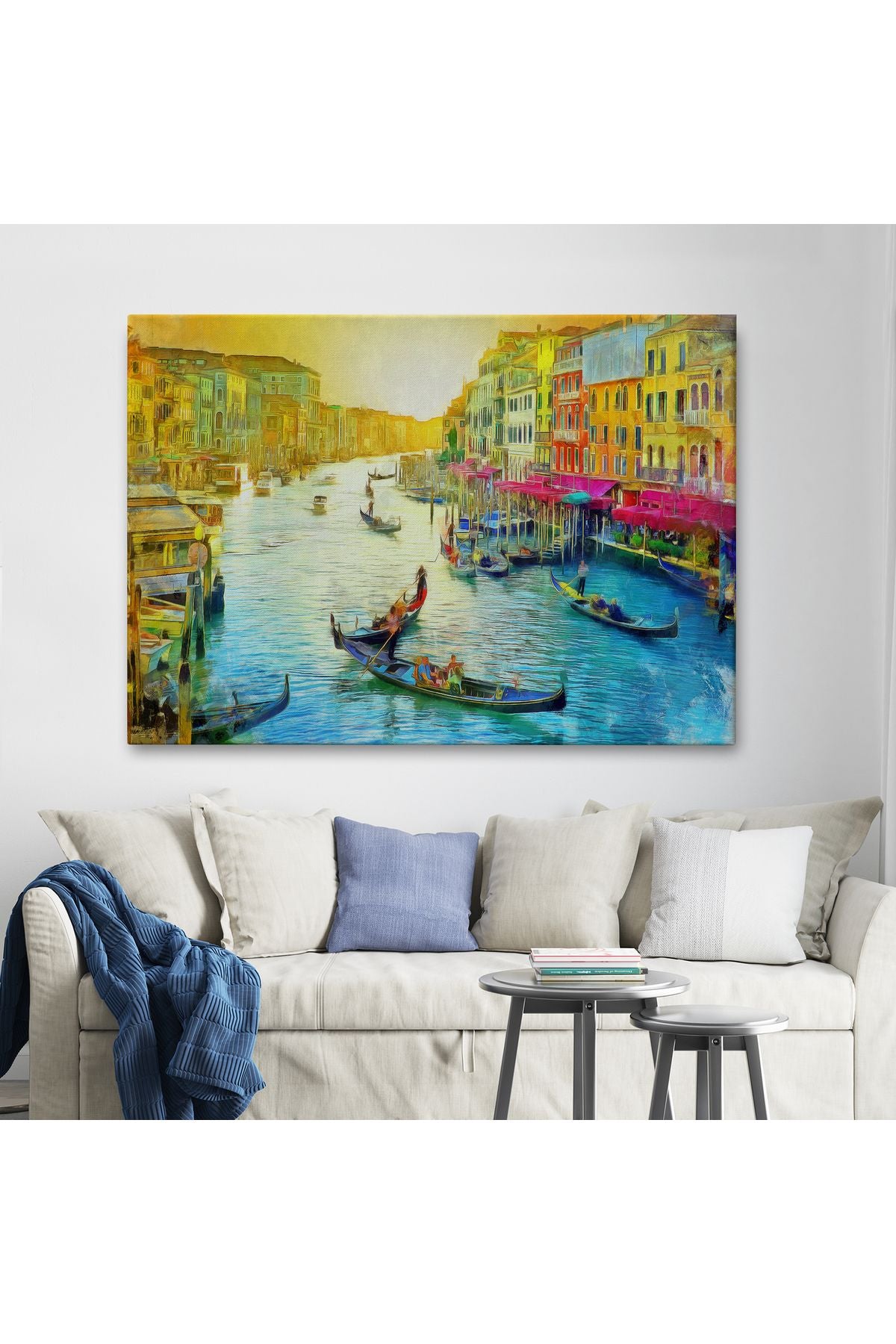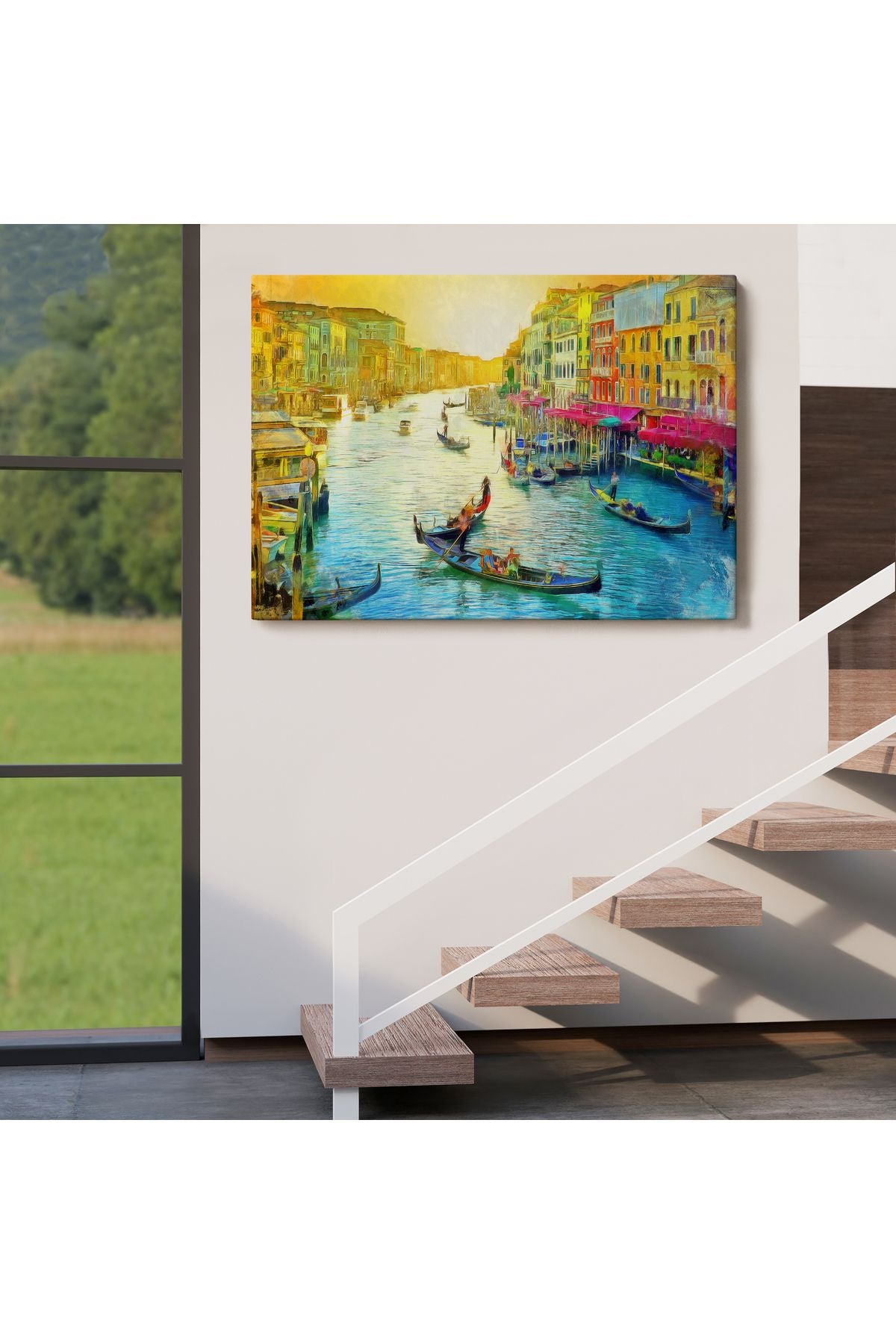 İtalya Venedik Gondol Manzarası Yağlıboya Görünüm Dekoratif Kanvas Duvar Tablosu-3623