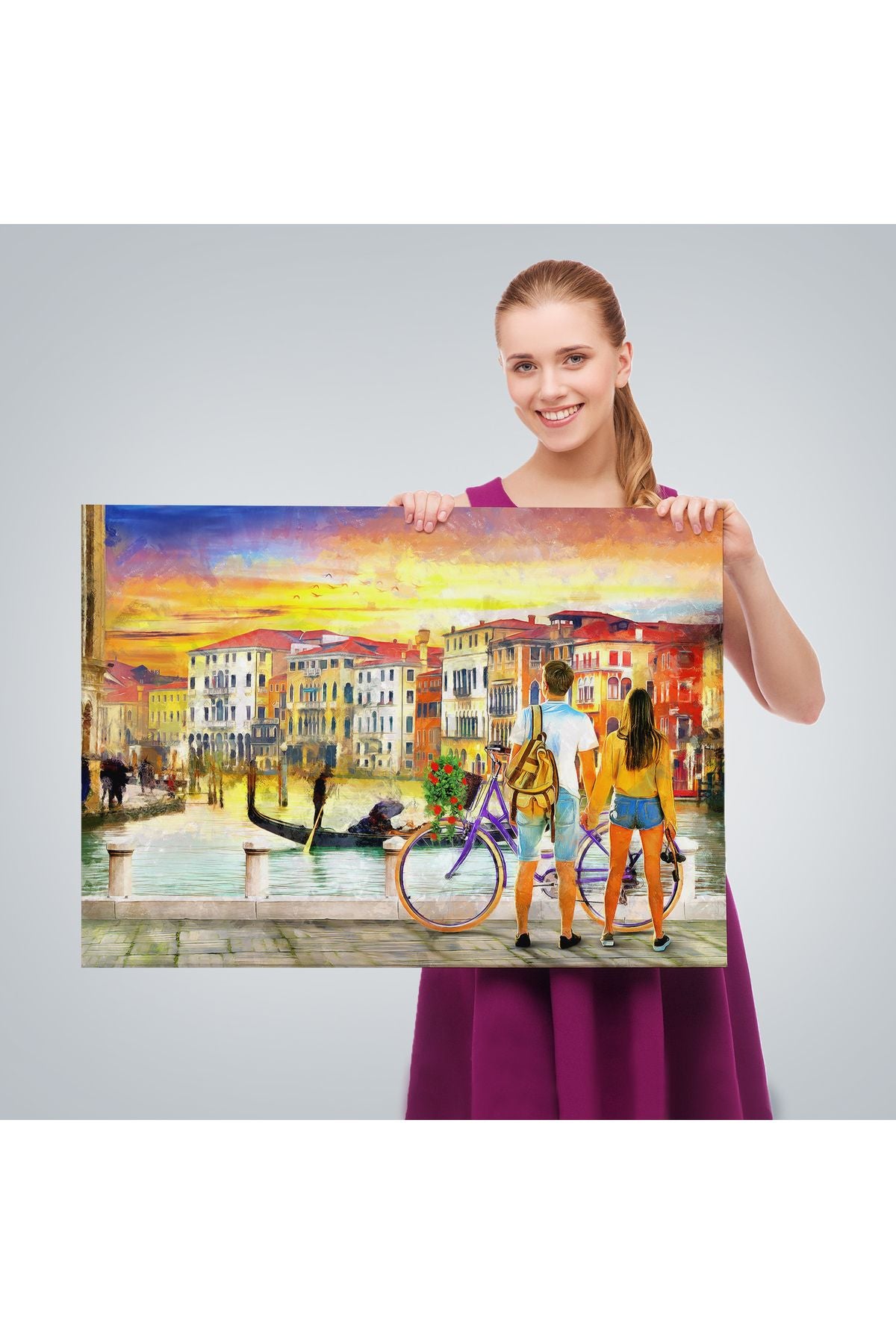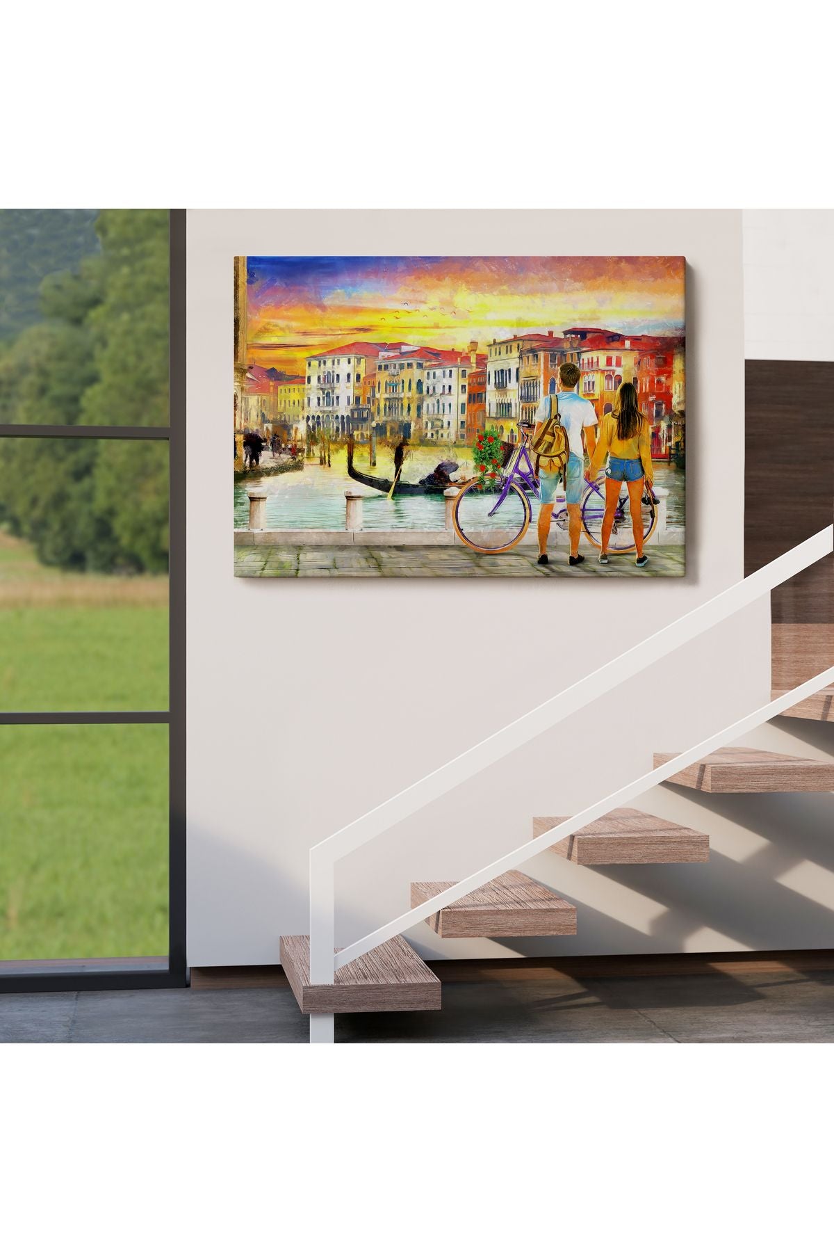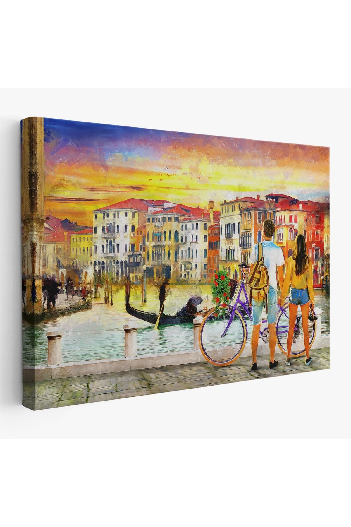 Venedik Kanalına Bakan Romantik Çift Yağlıboya Görünüm Kanvas Tablosu-3625
