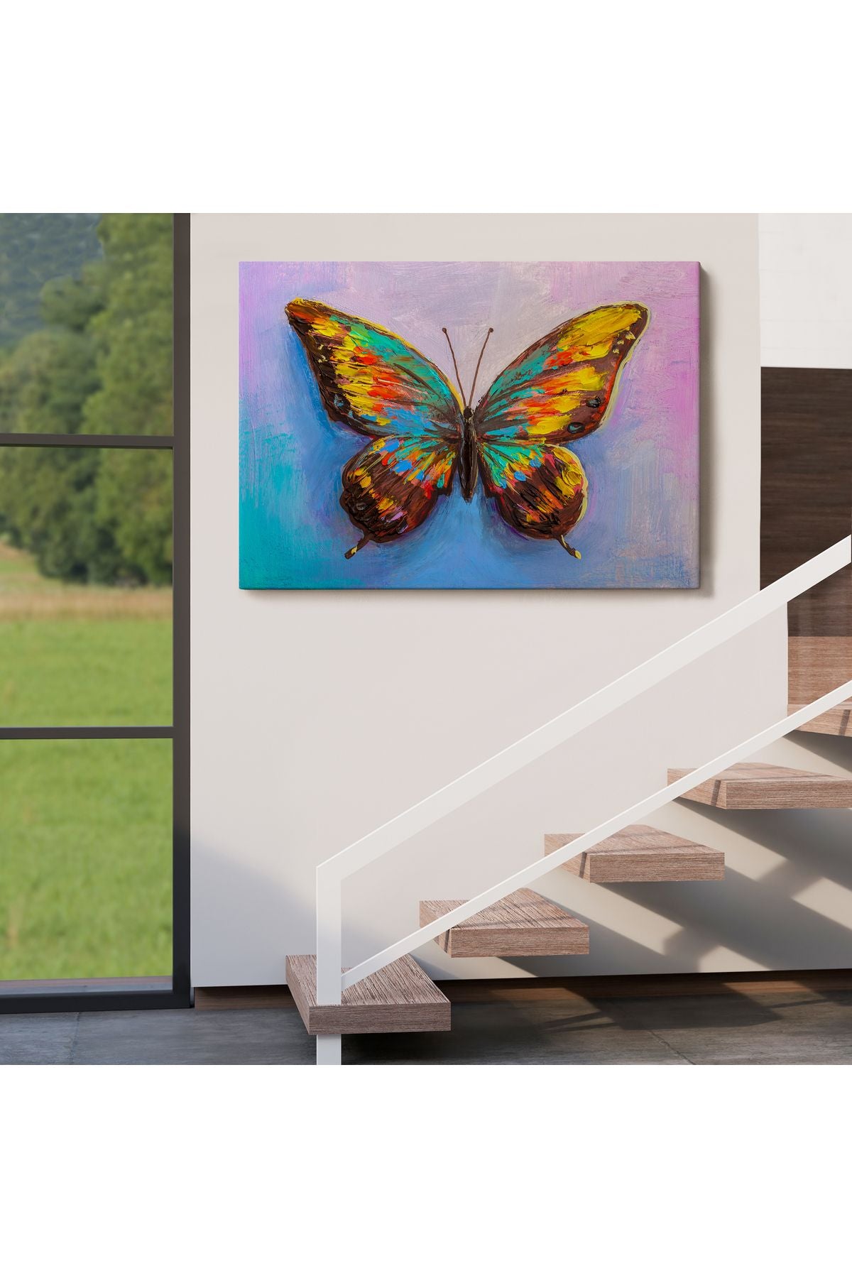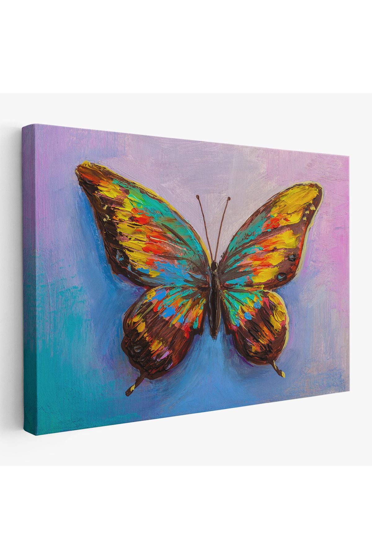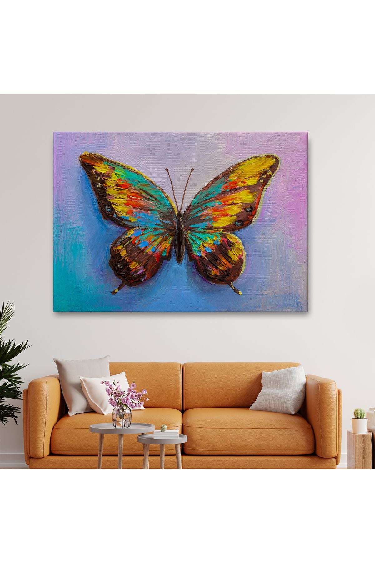 Renkli Kelebek Yağlıboya Görünüm Dekoratif Kanvas Duvar Tablosu-3628