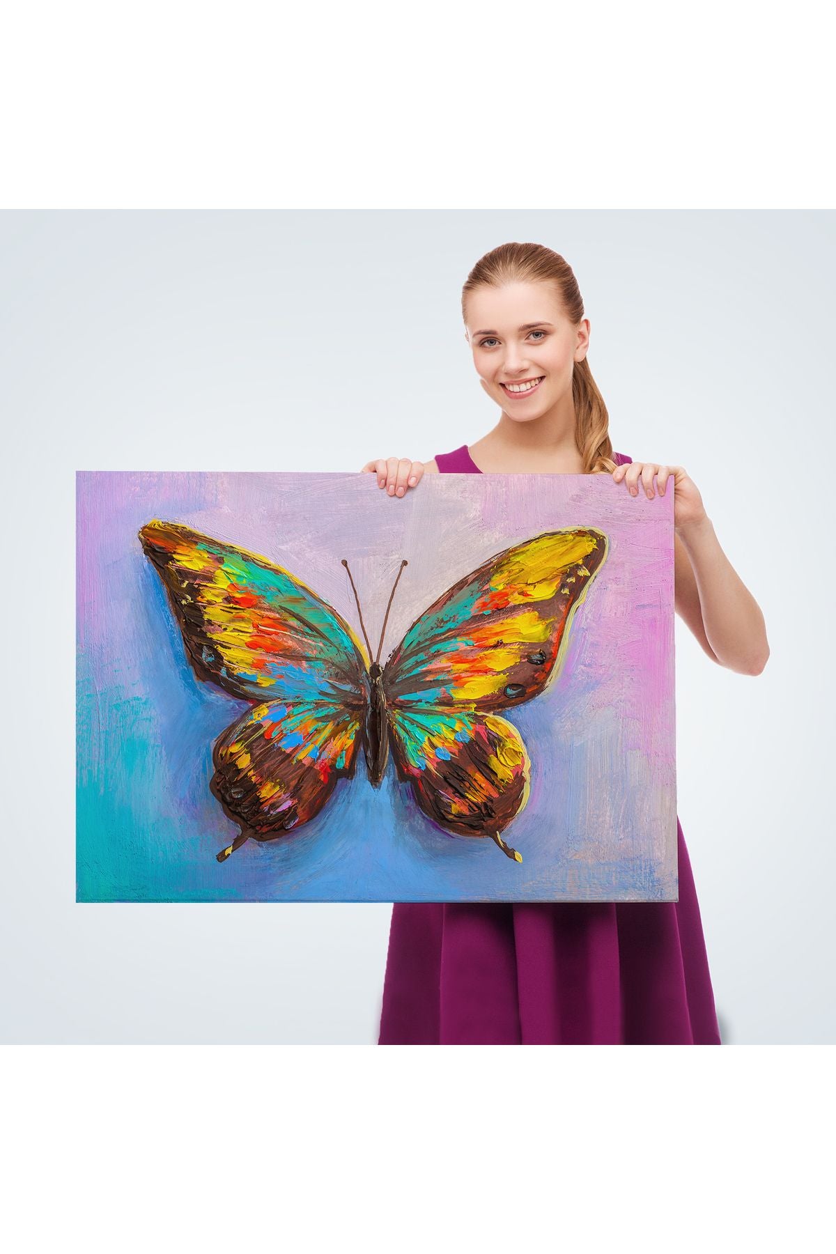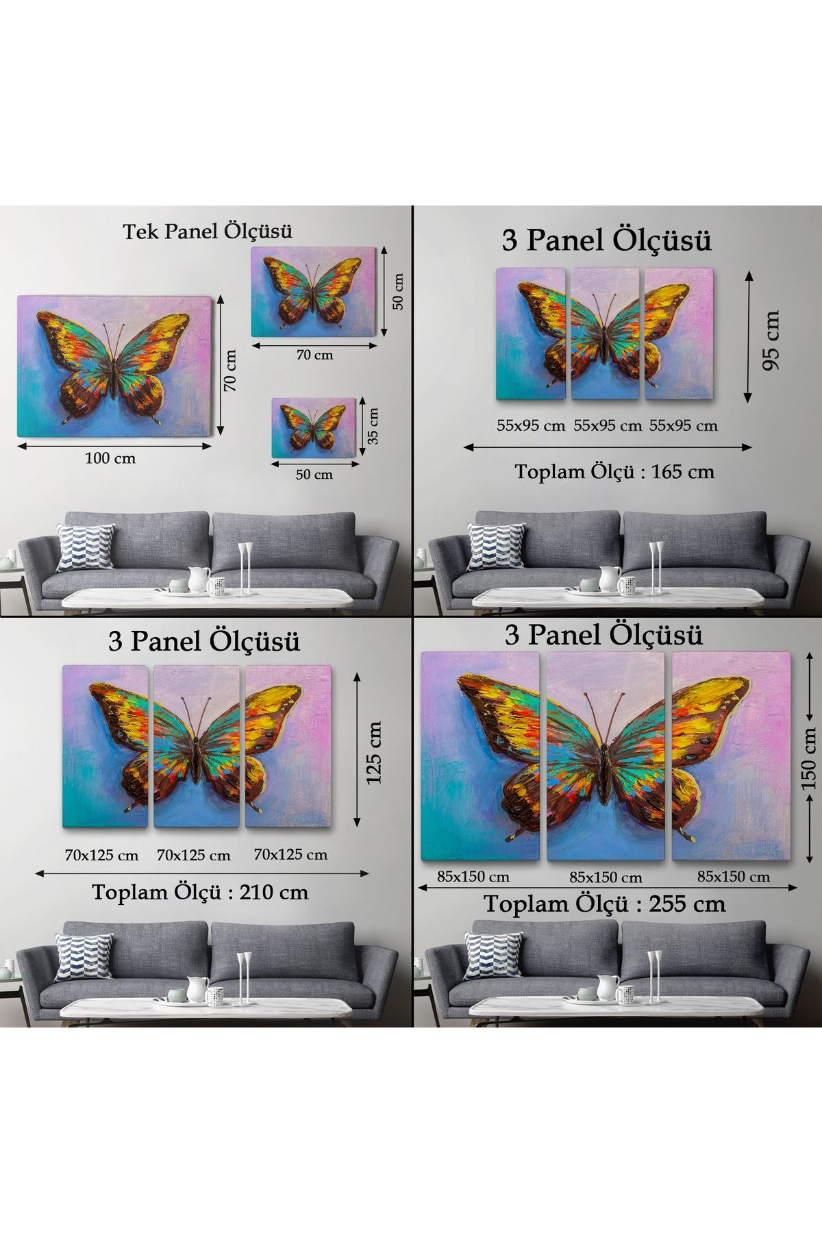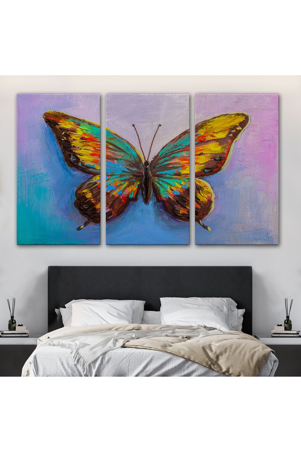 Renkli Kelebek Yağlıboya Görünüm Dekoratif Kanvas Duvar Tablosu-3628