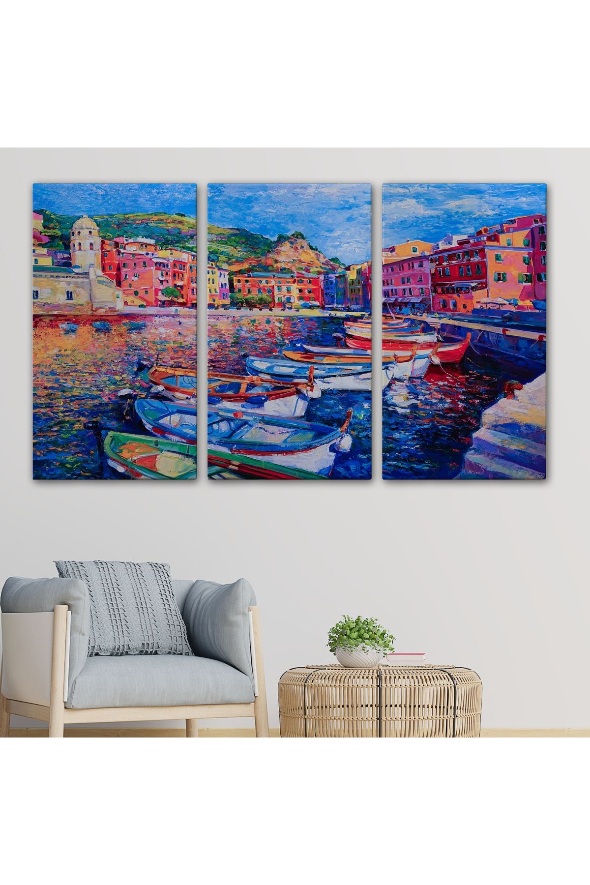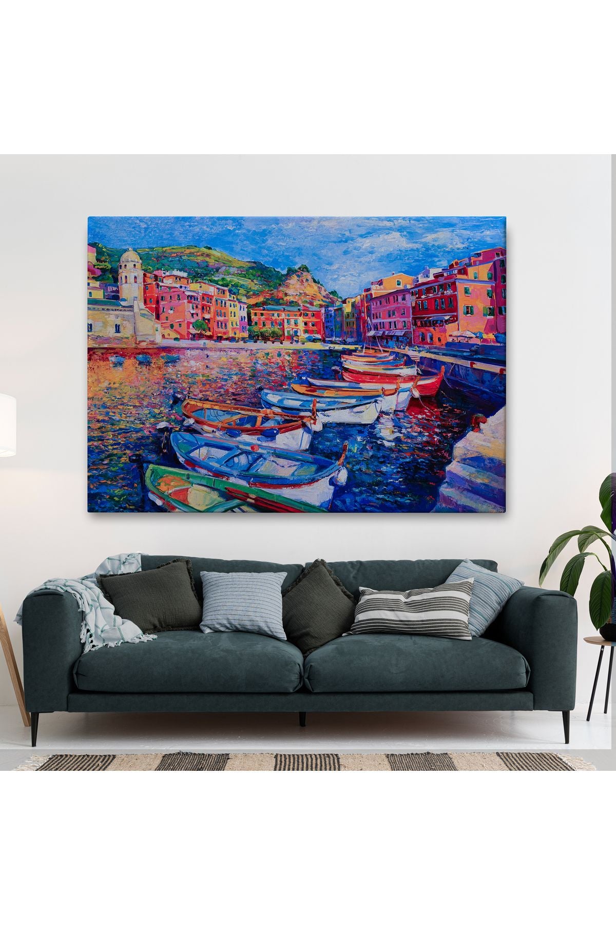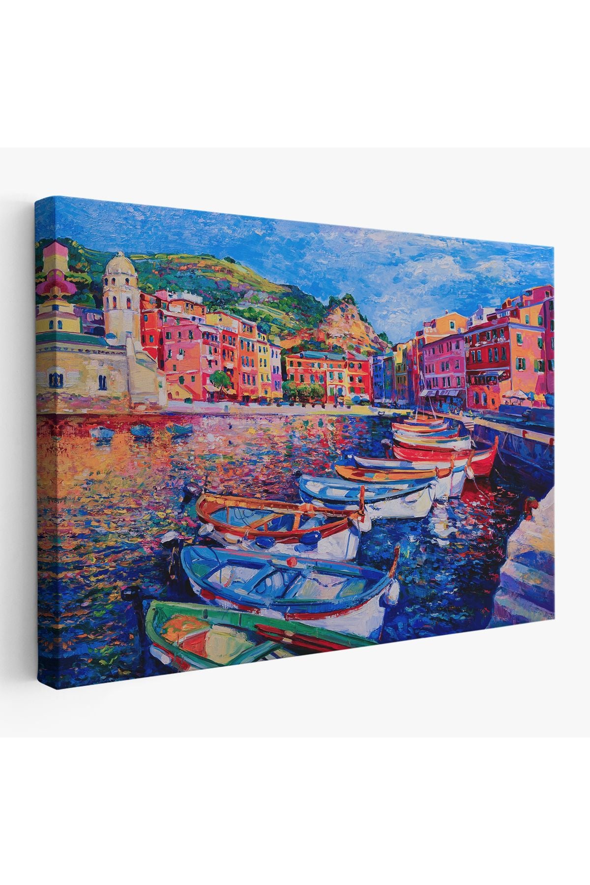 HG Şehir Limanı Yağlıboya Görünüm Dekoratif Kanvas Duvar Tablosu-3629