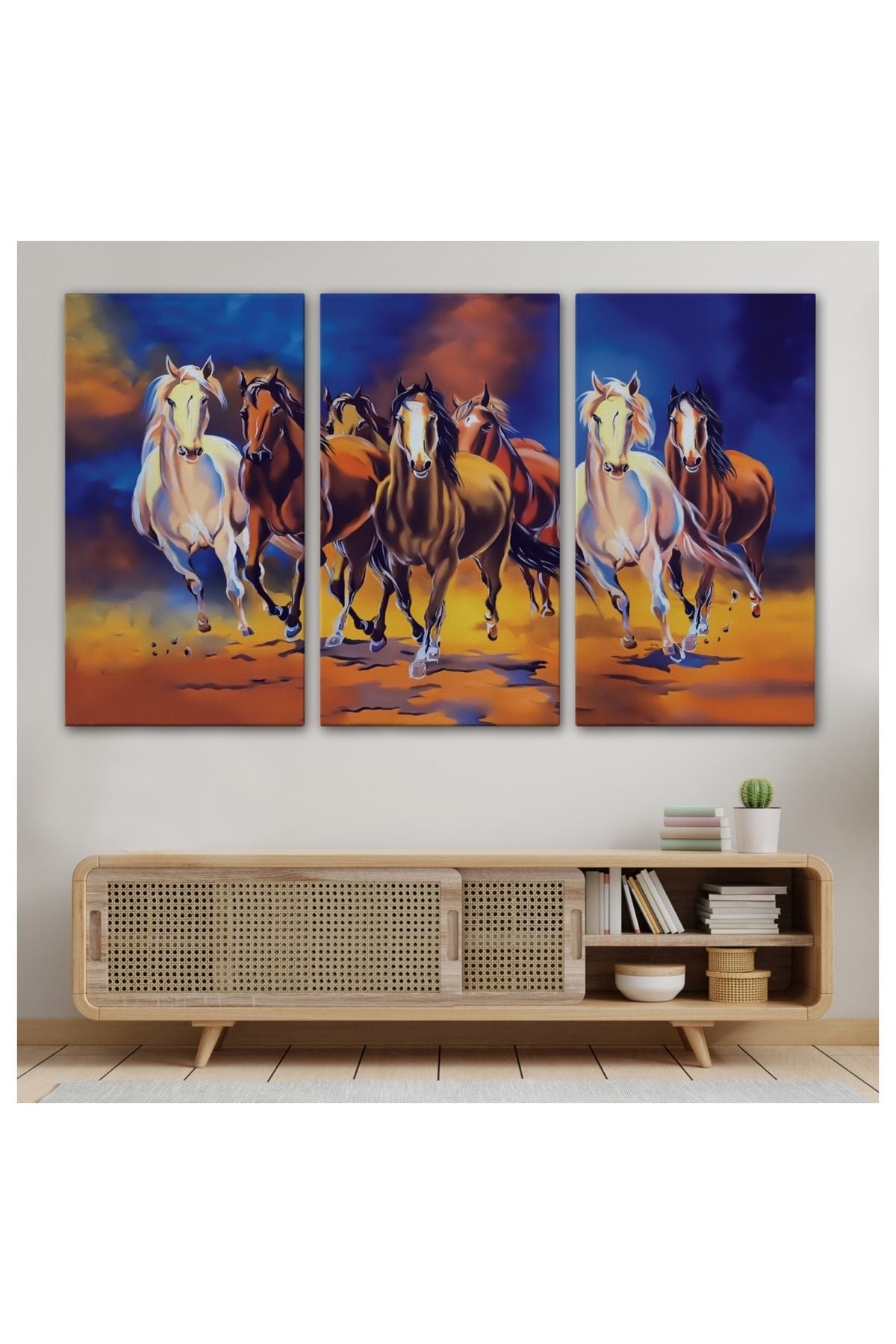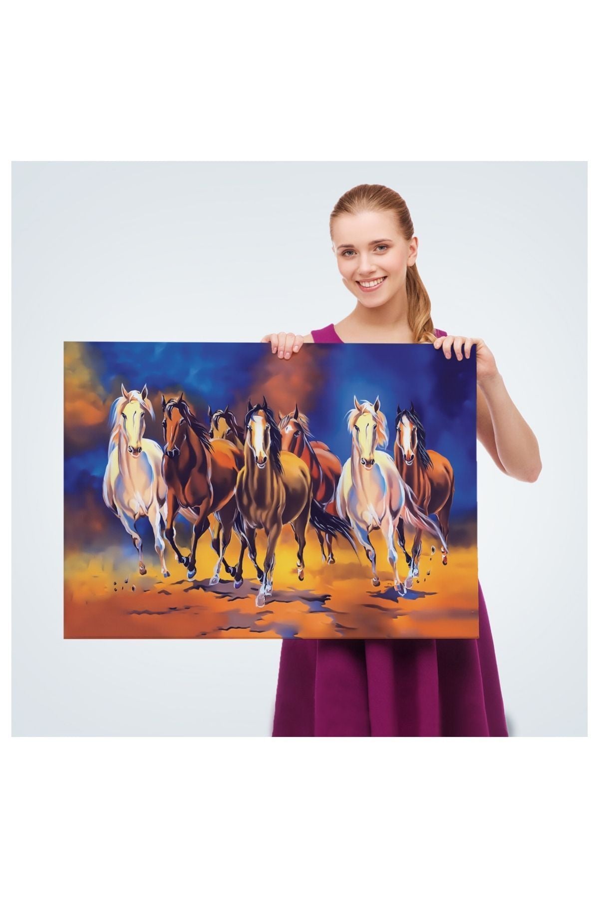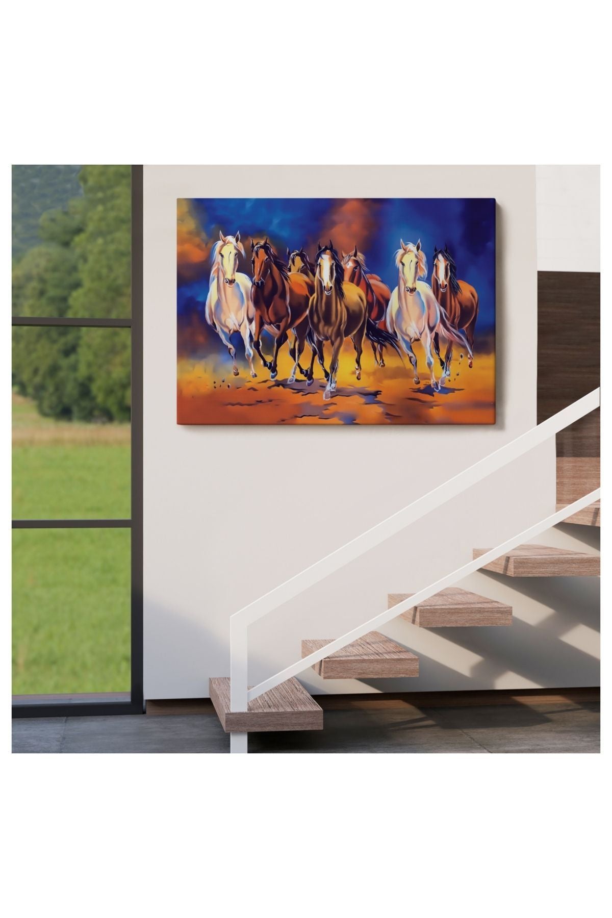 Kanvas, Duvar Tablosu, Dekoratif, Yağlıboya Görünüm Koşan Atlar 3630 EGKNV