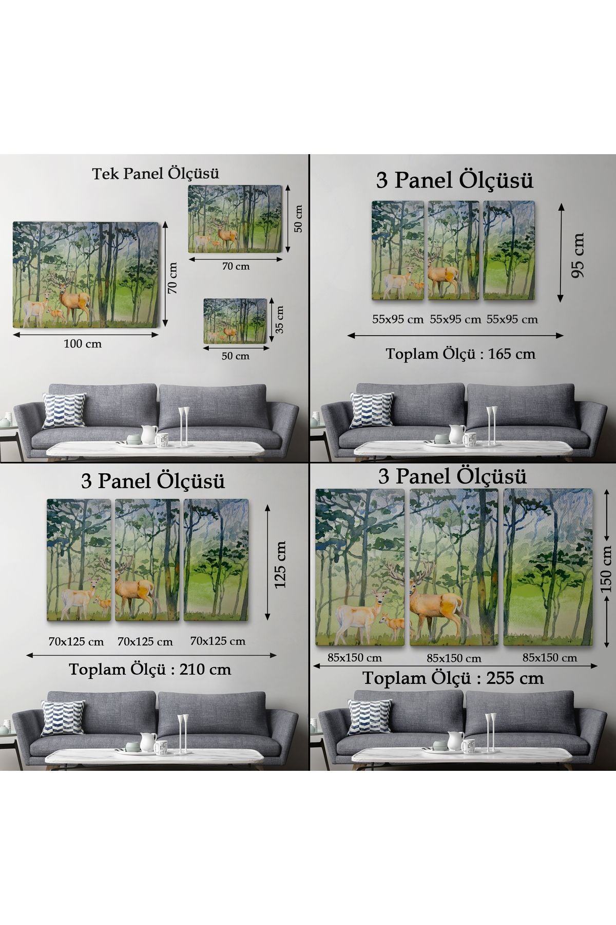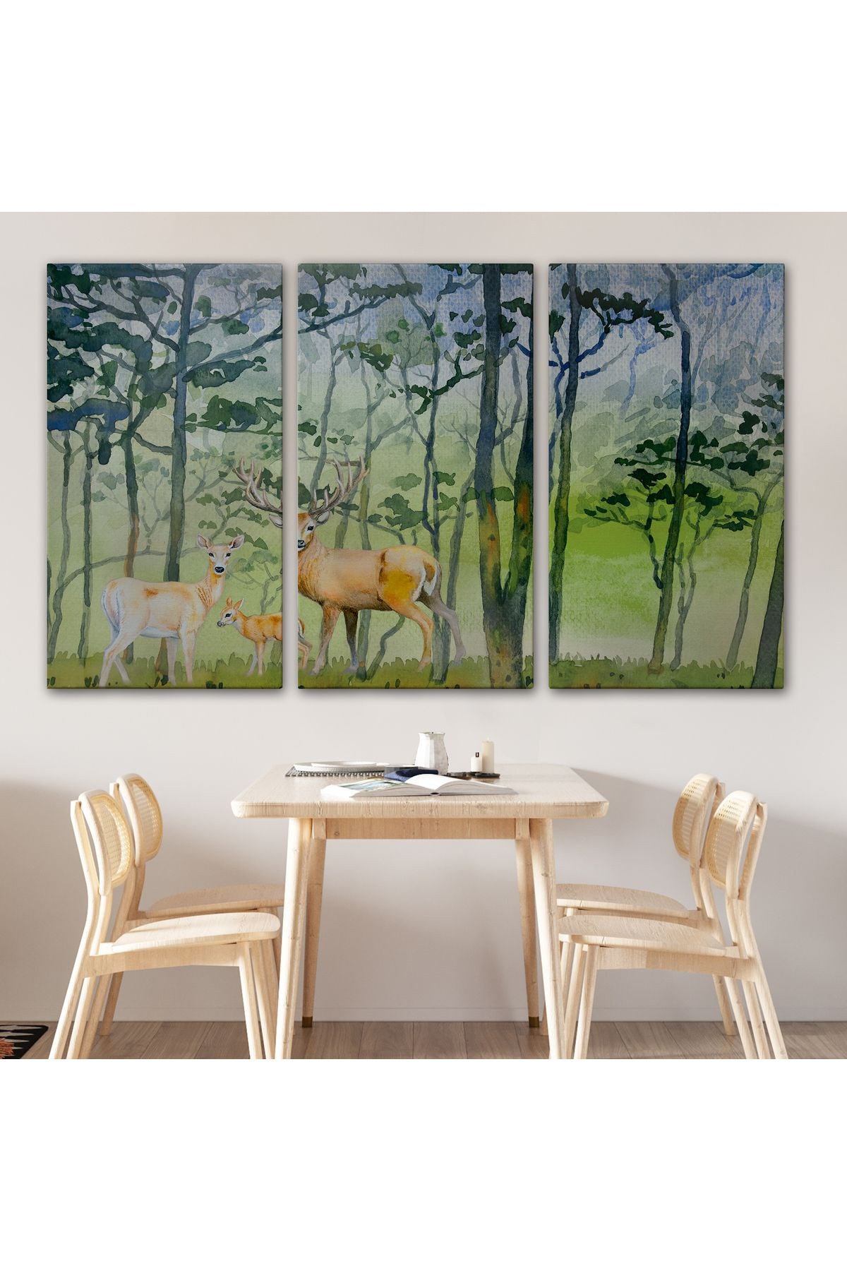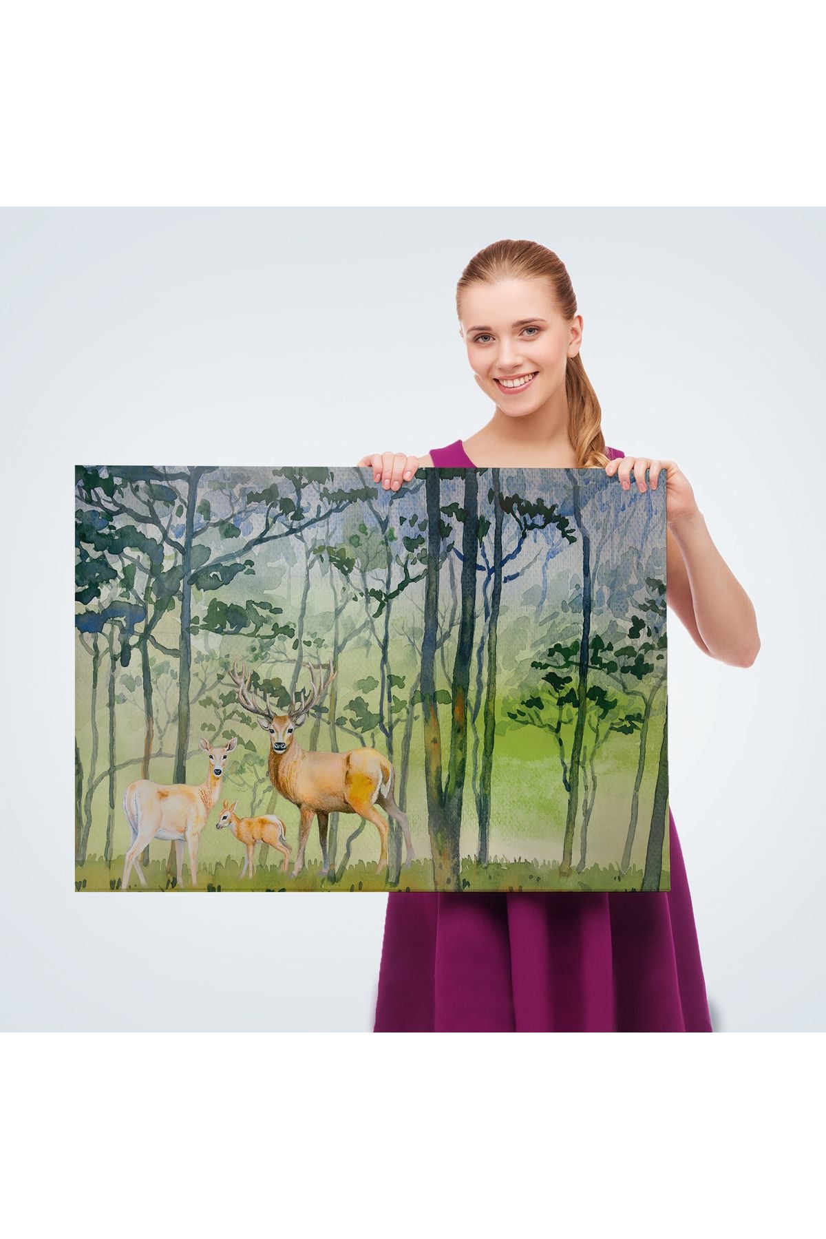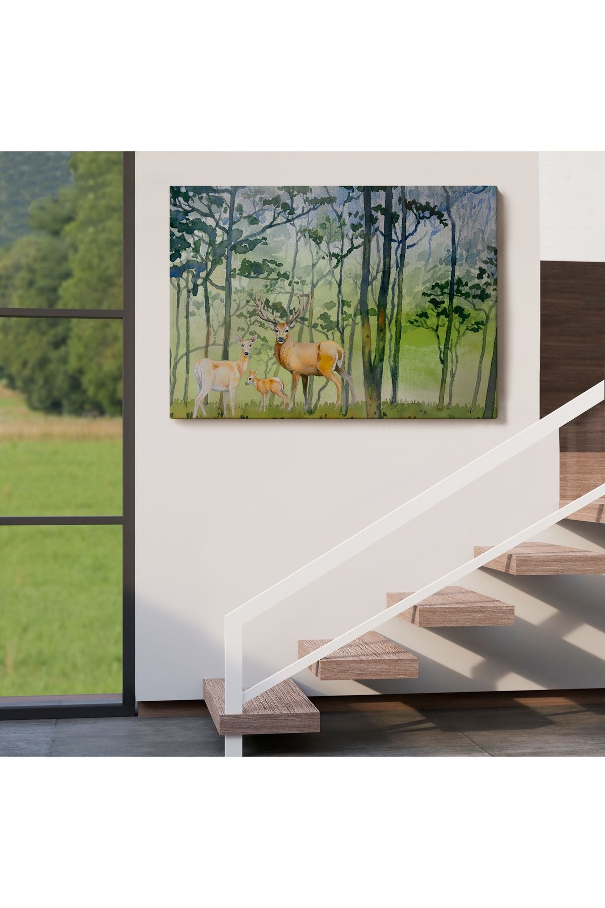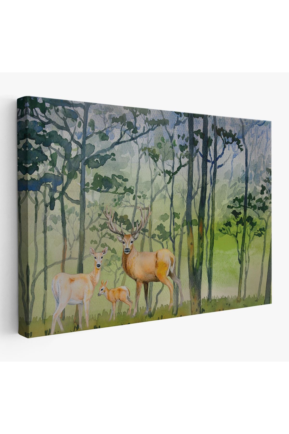 Geyik Ailesi Suluboya Görünüm Dekoratif Kanvas Duvar Tablosu-3648