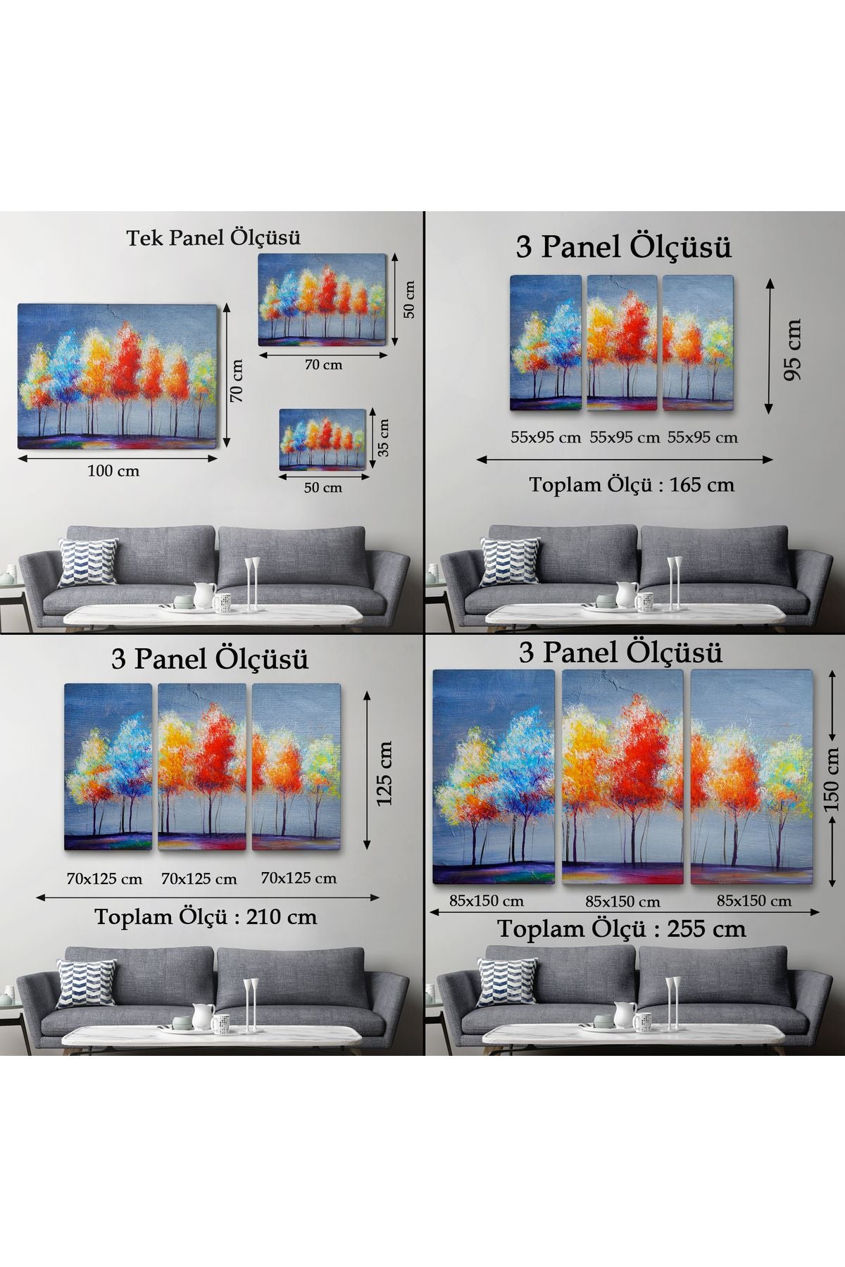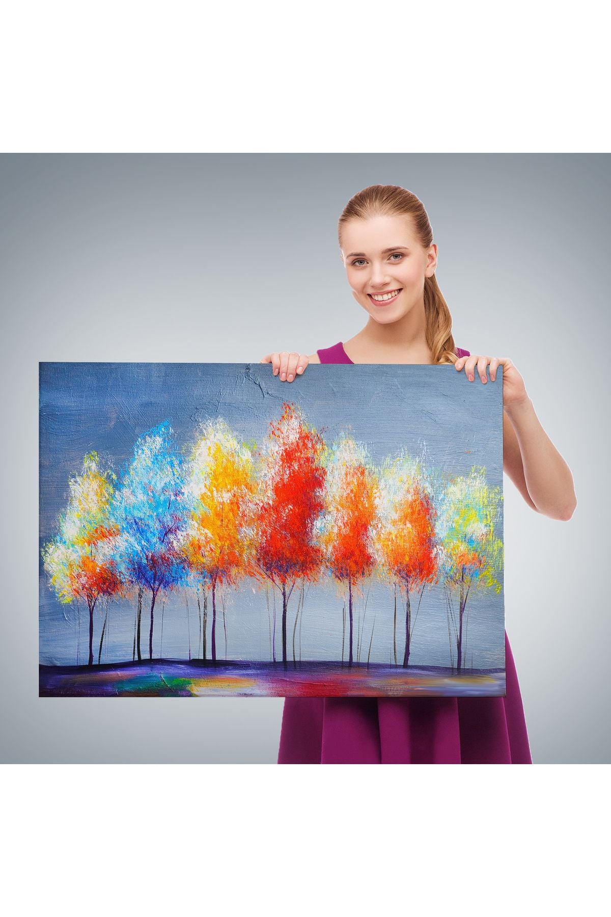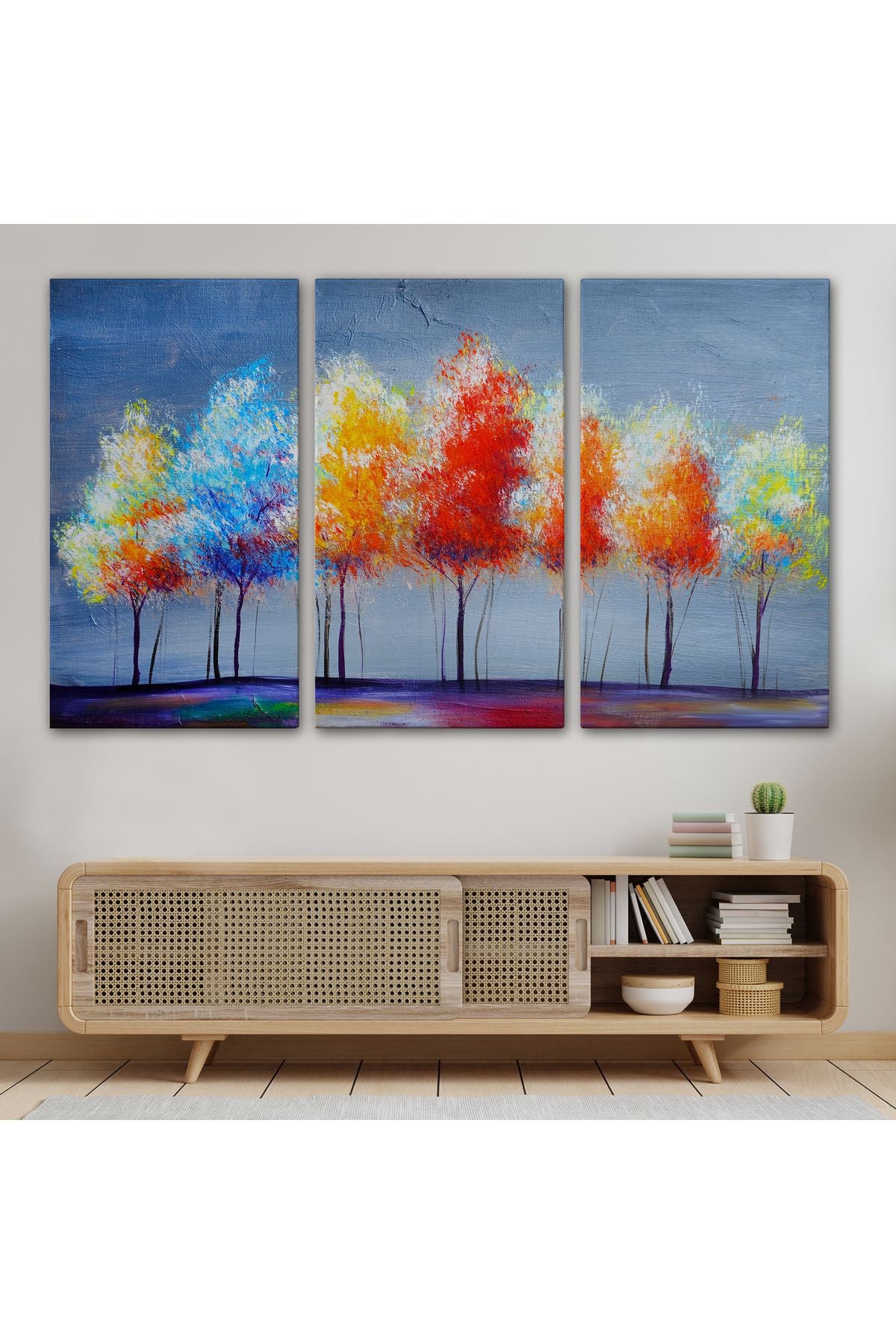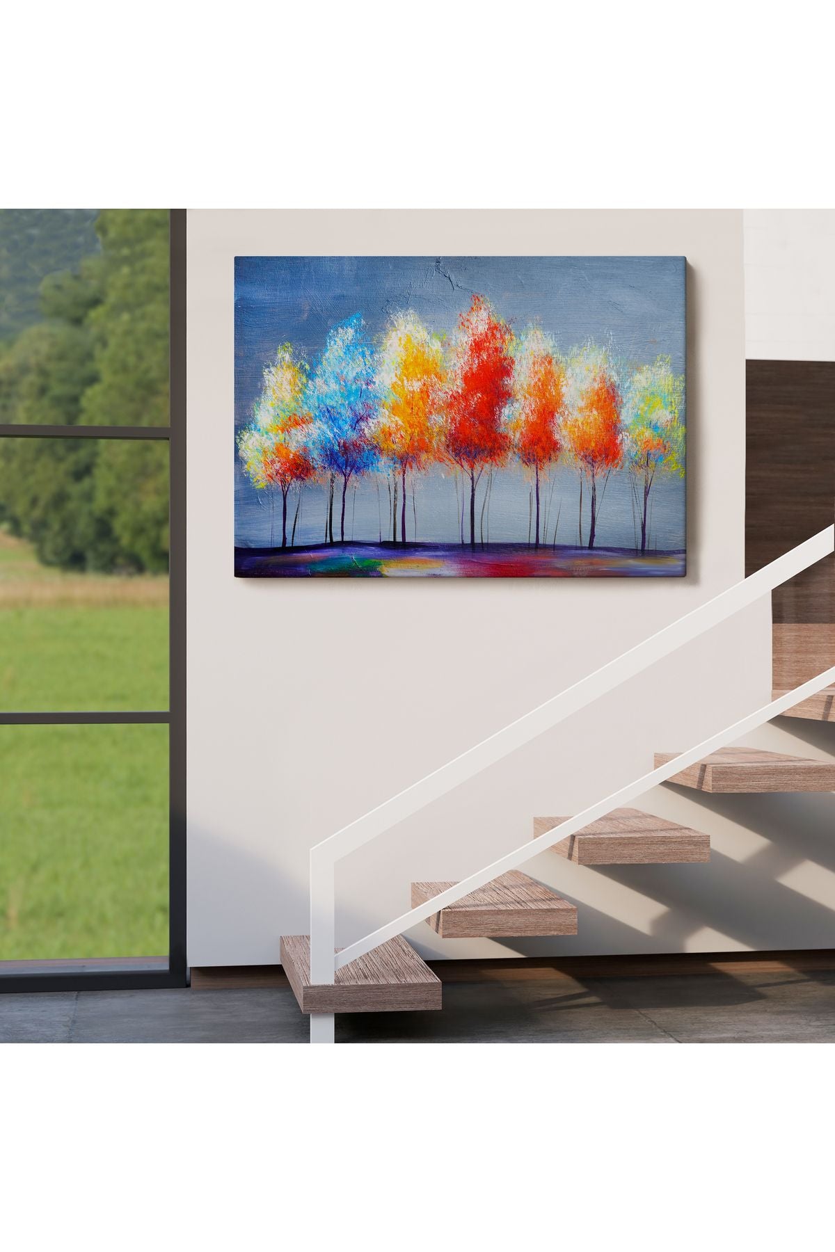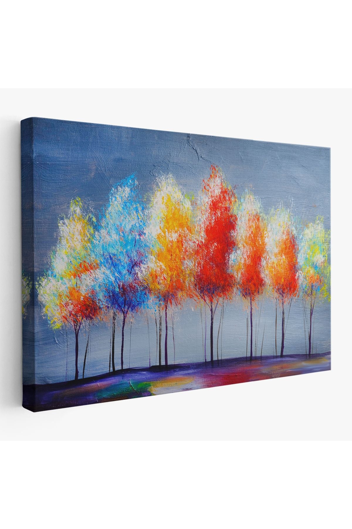 Renkli Ağaçlar Yağlıboya Görünüm Dekoratif Kanvas Duvar Tablosu-3656