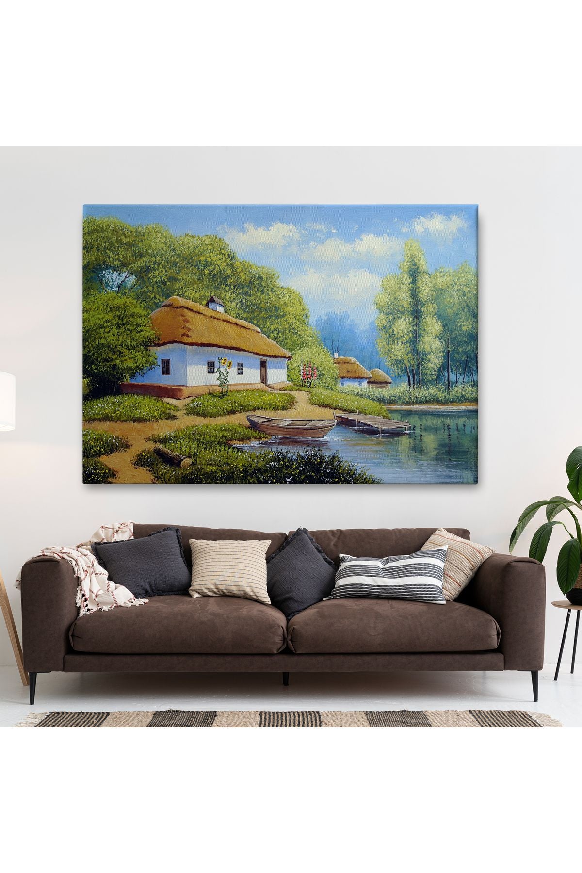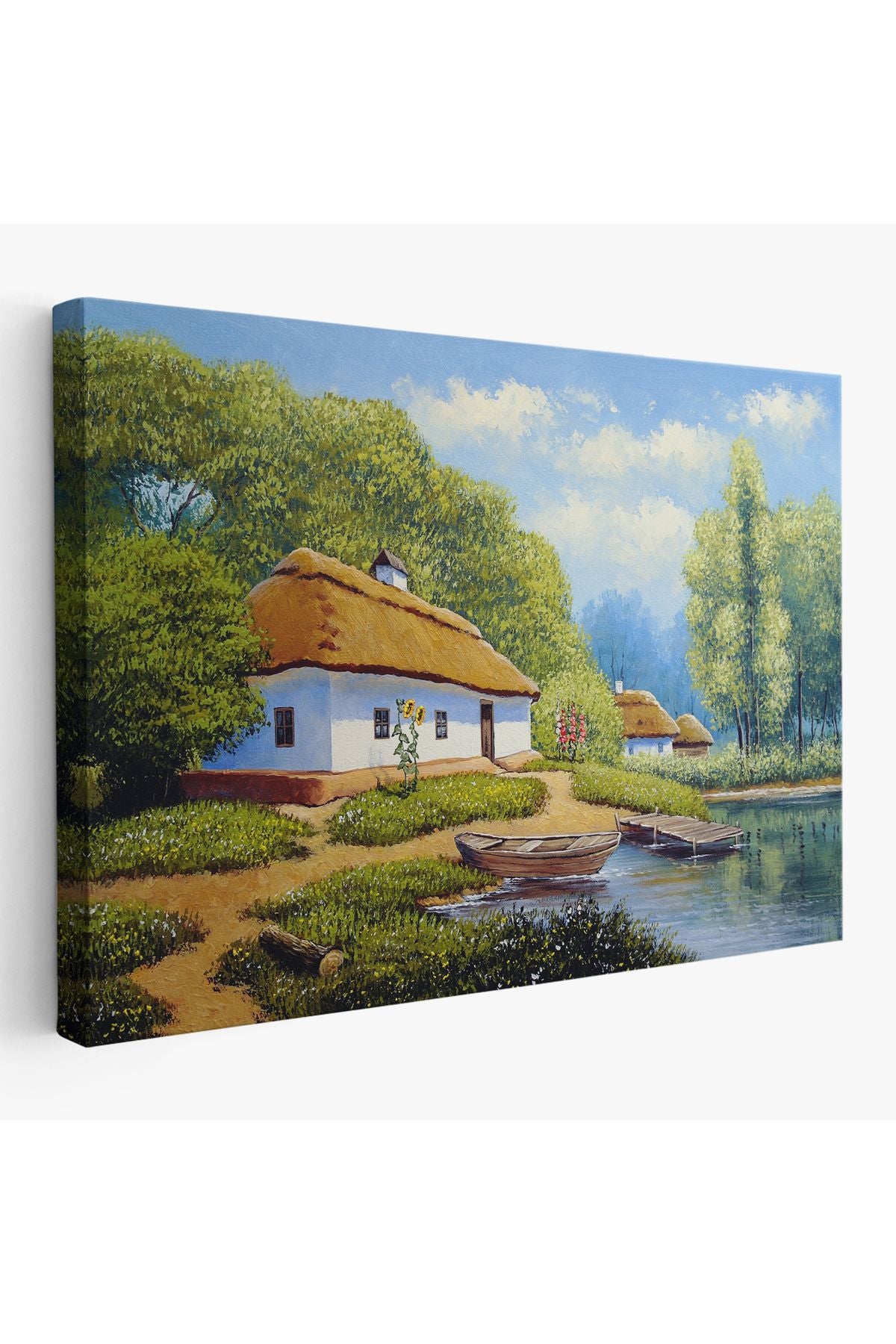 Ukrayna Köy Evi Manzarası Yağlıboya Görünüm Dekoratif Kanvas Duvar Tablosu-3663