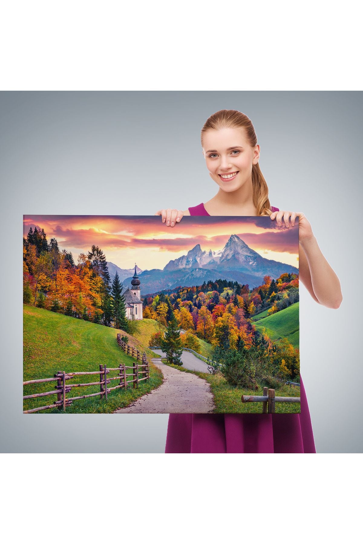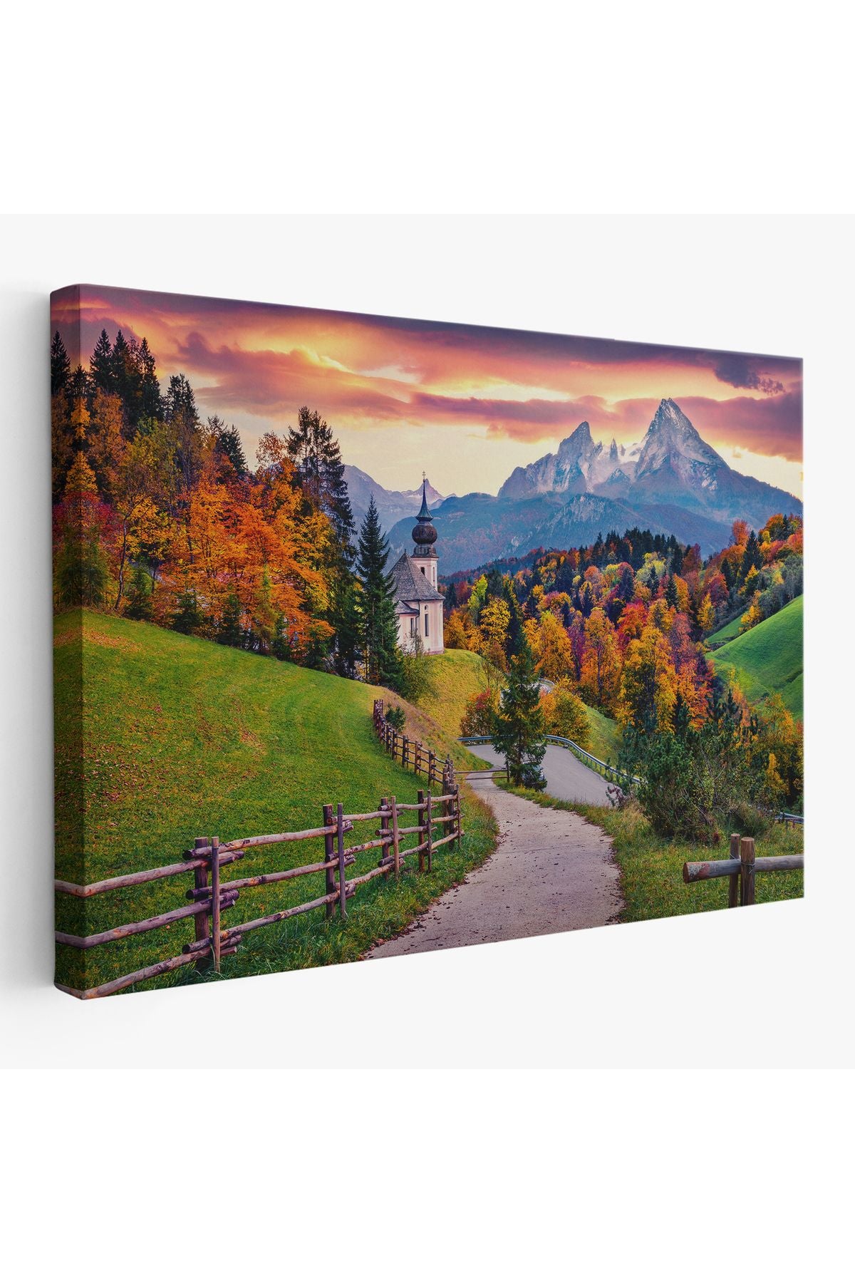 Hochkalter Dağı Maria Gern Kilisesi Ve Alpler Dekoratif Tablo-3679