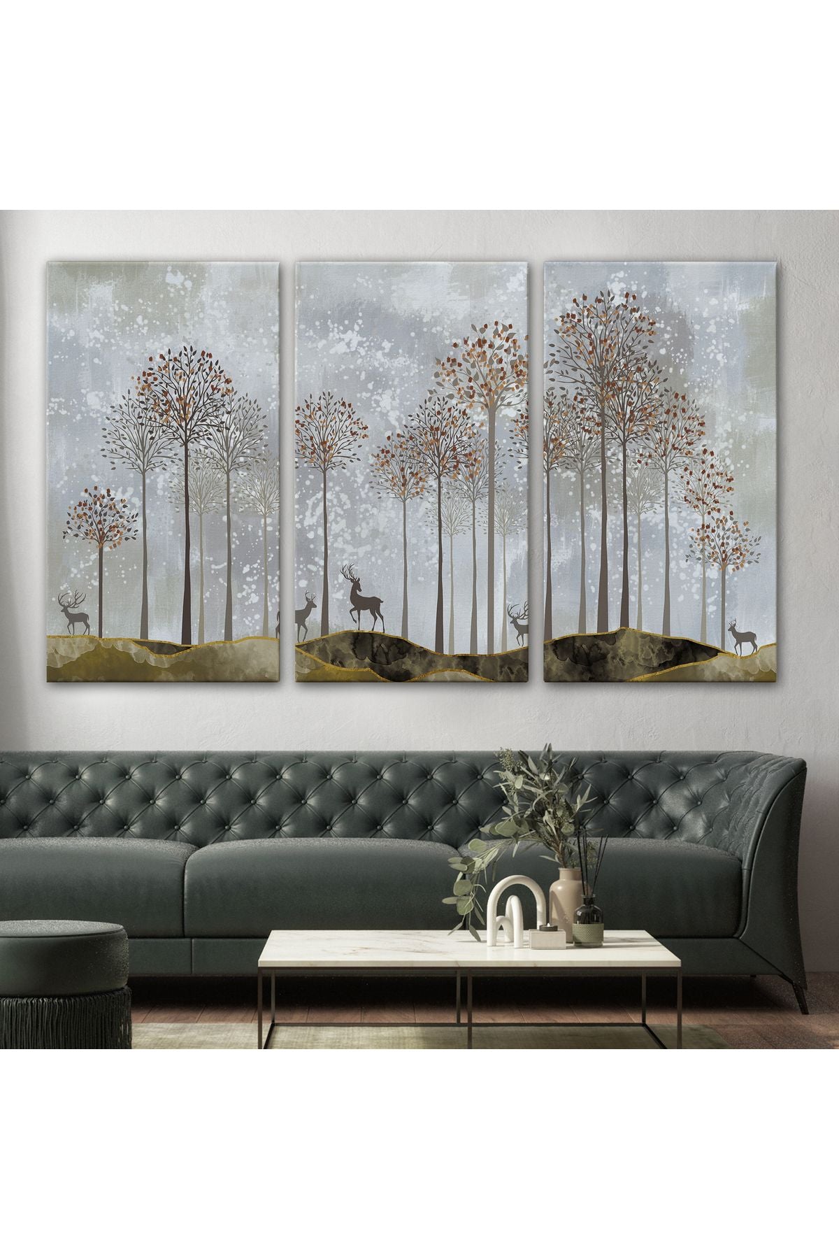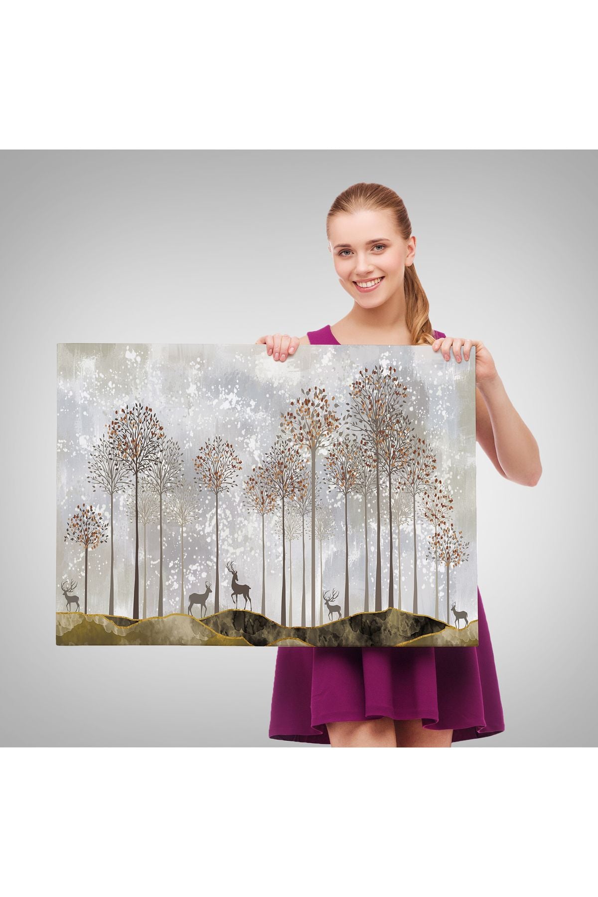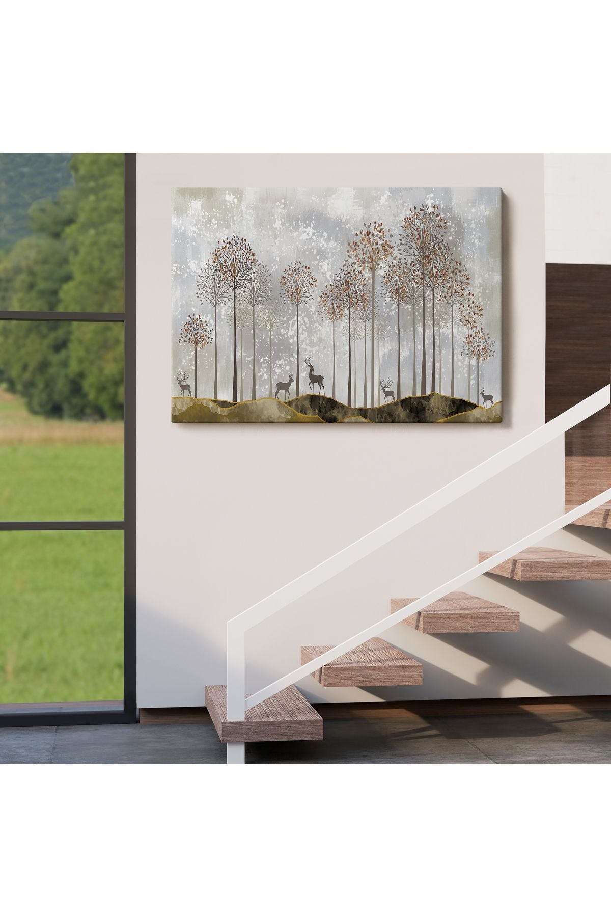 Dekoratif Kanvas Tablo-Ormanda Geyikler Duvar Tablosu 3682