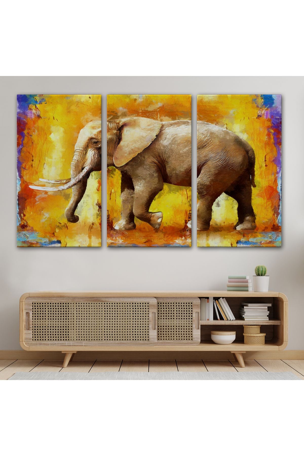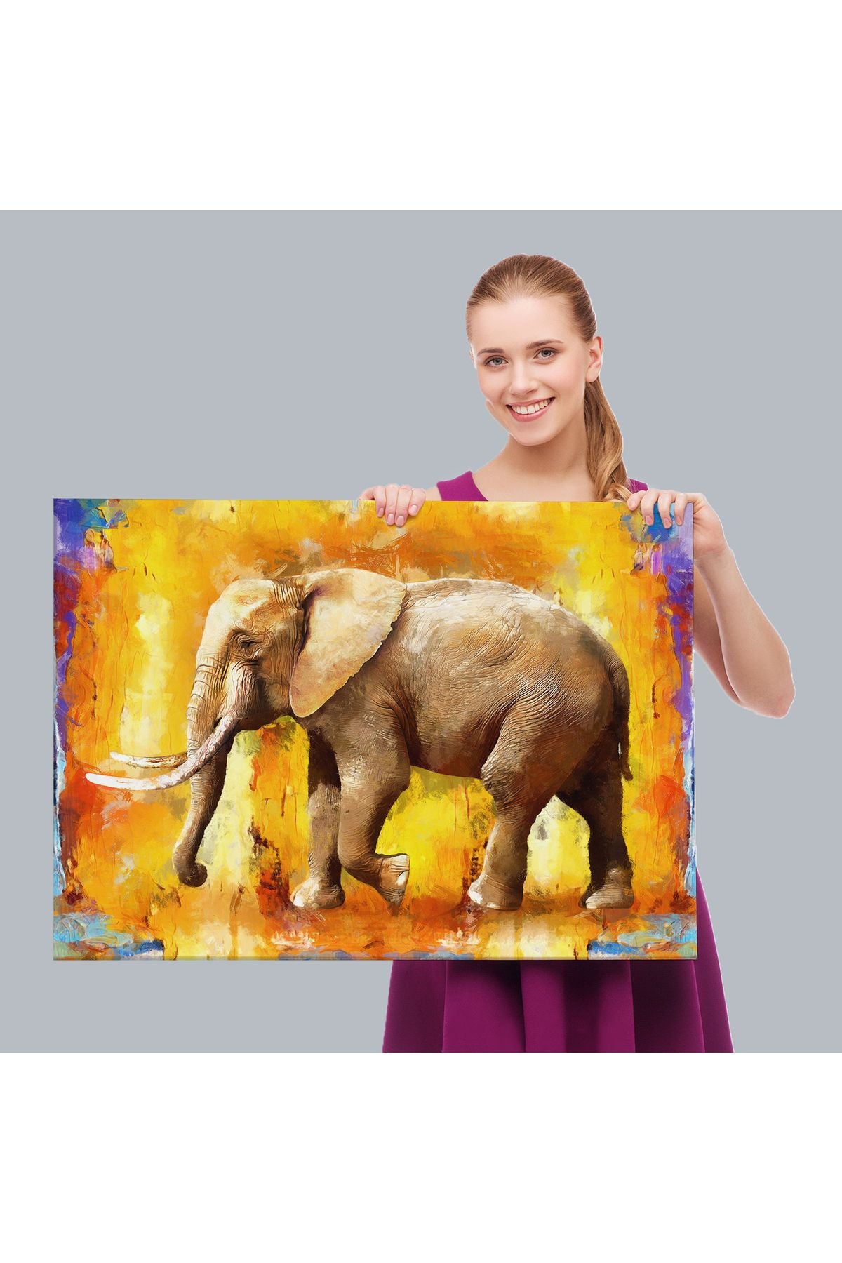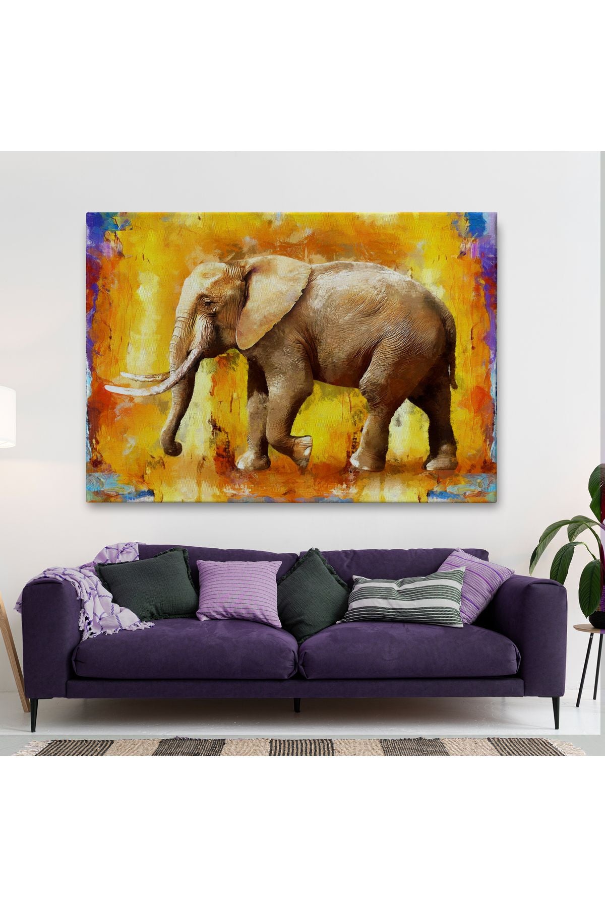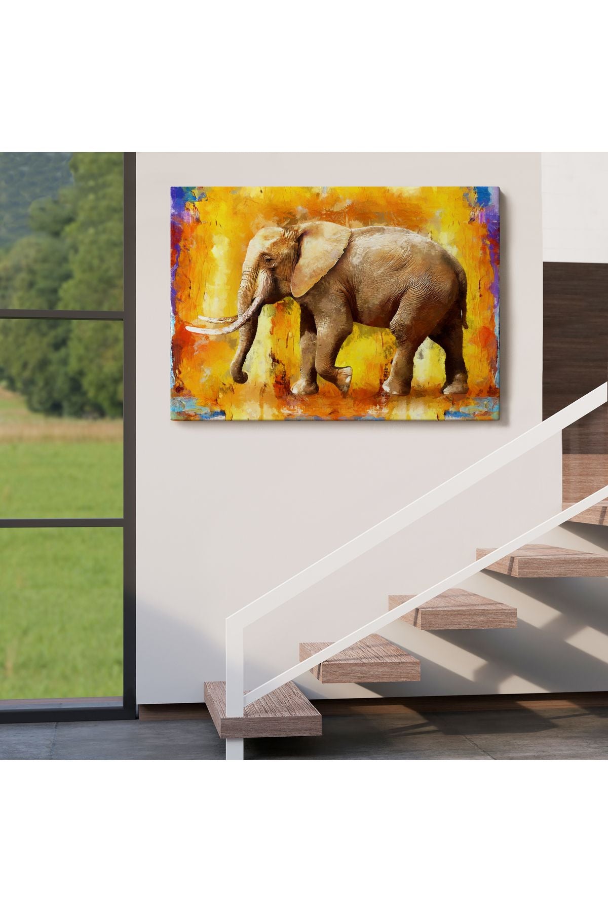 Modern Sanat Tarzı Yürüyen Fil Yağlıboya Görünüm Kanvas Duvar Tablosu-3688