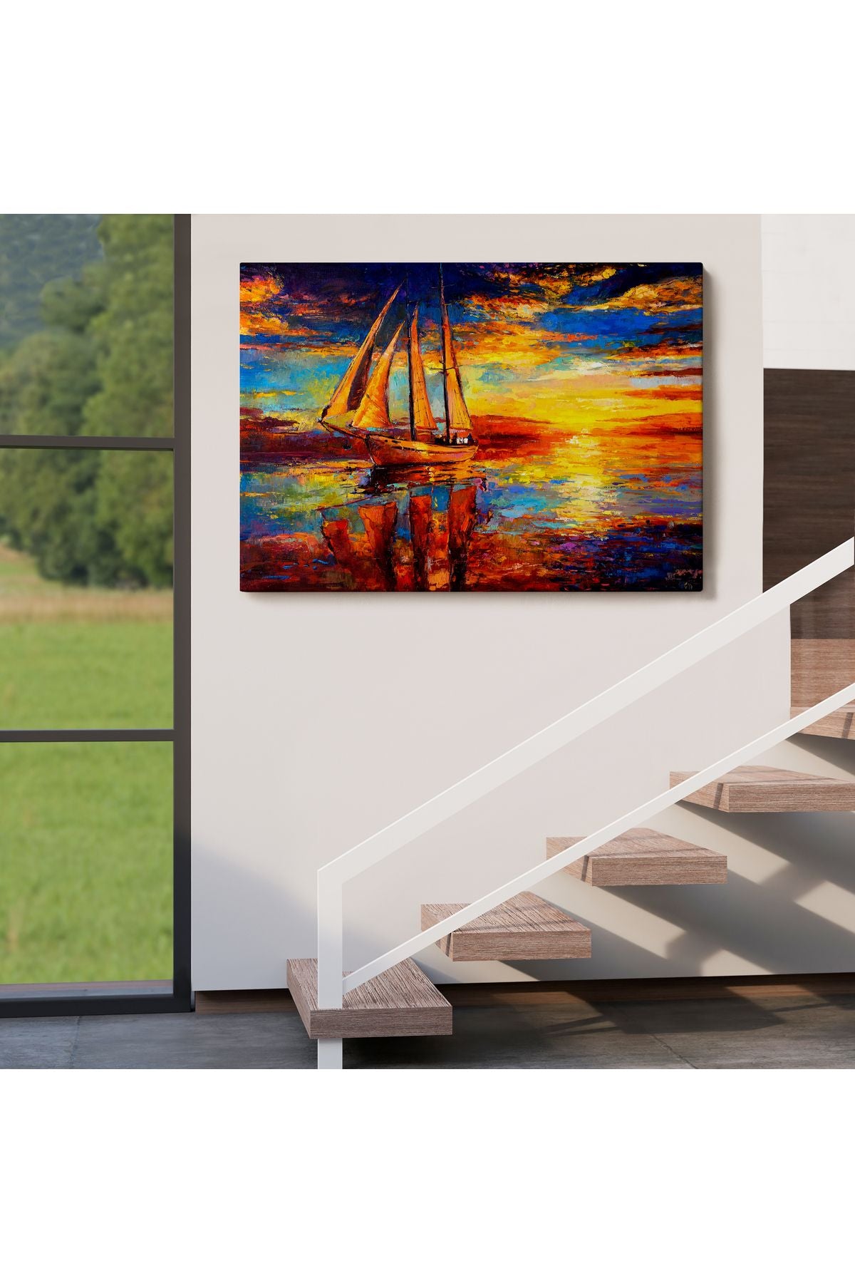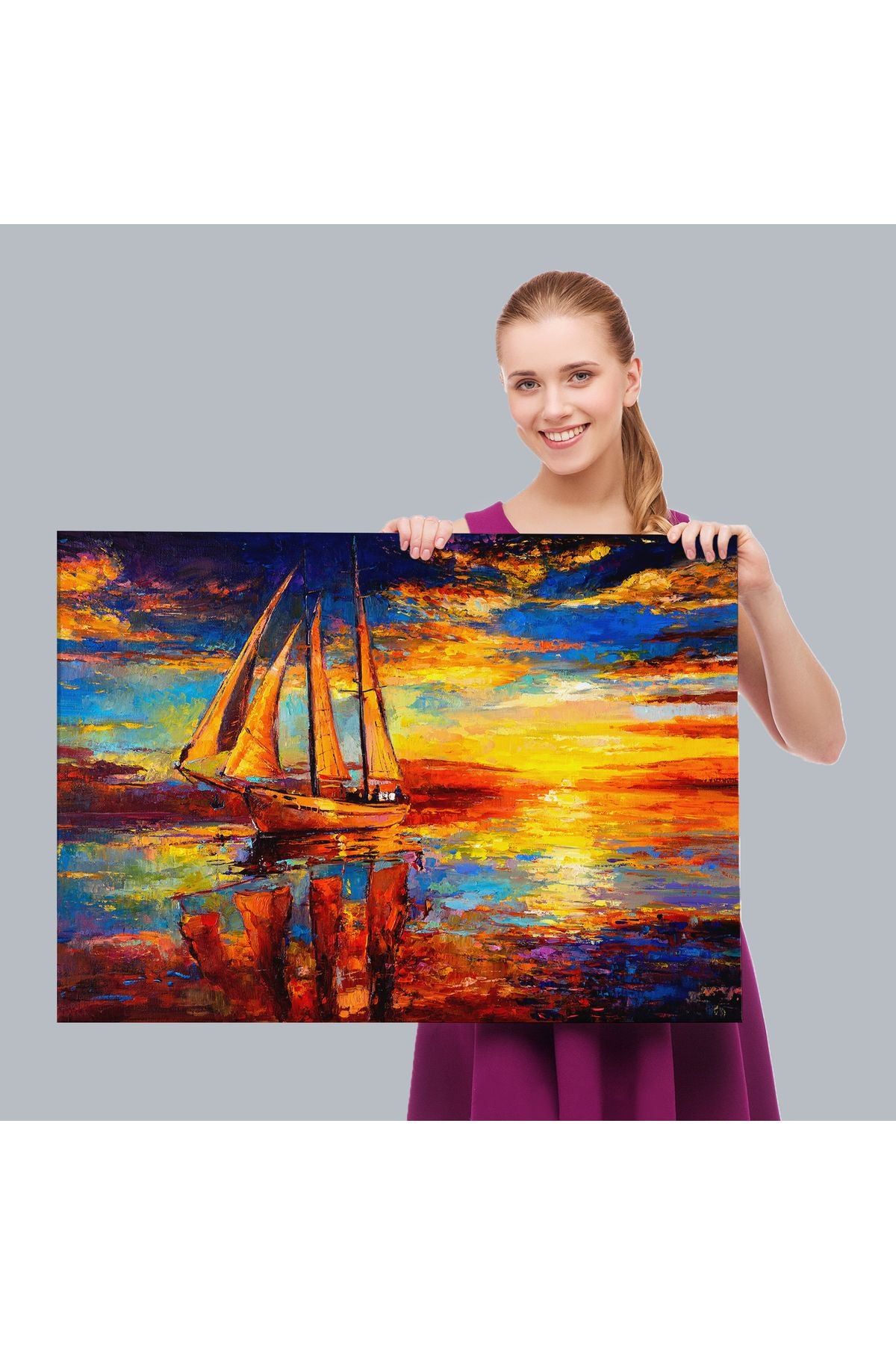 Deniz ve Yelkenli Manzarası Yağlıboya Görünüm Dekoratif Kanvas Duvar Tablosu-3708