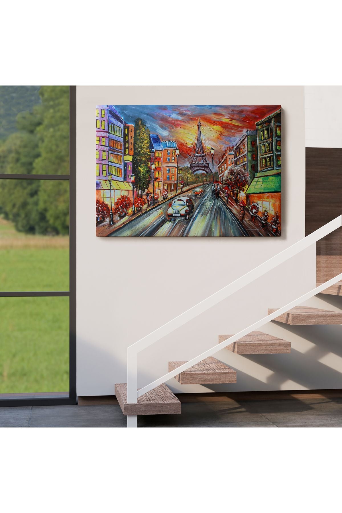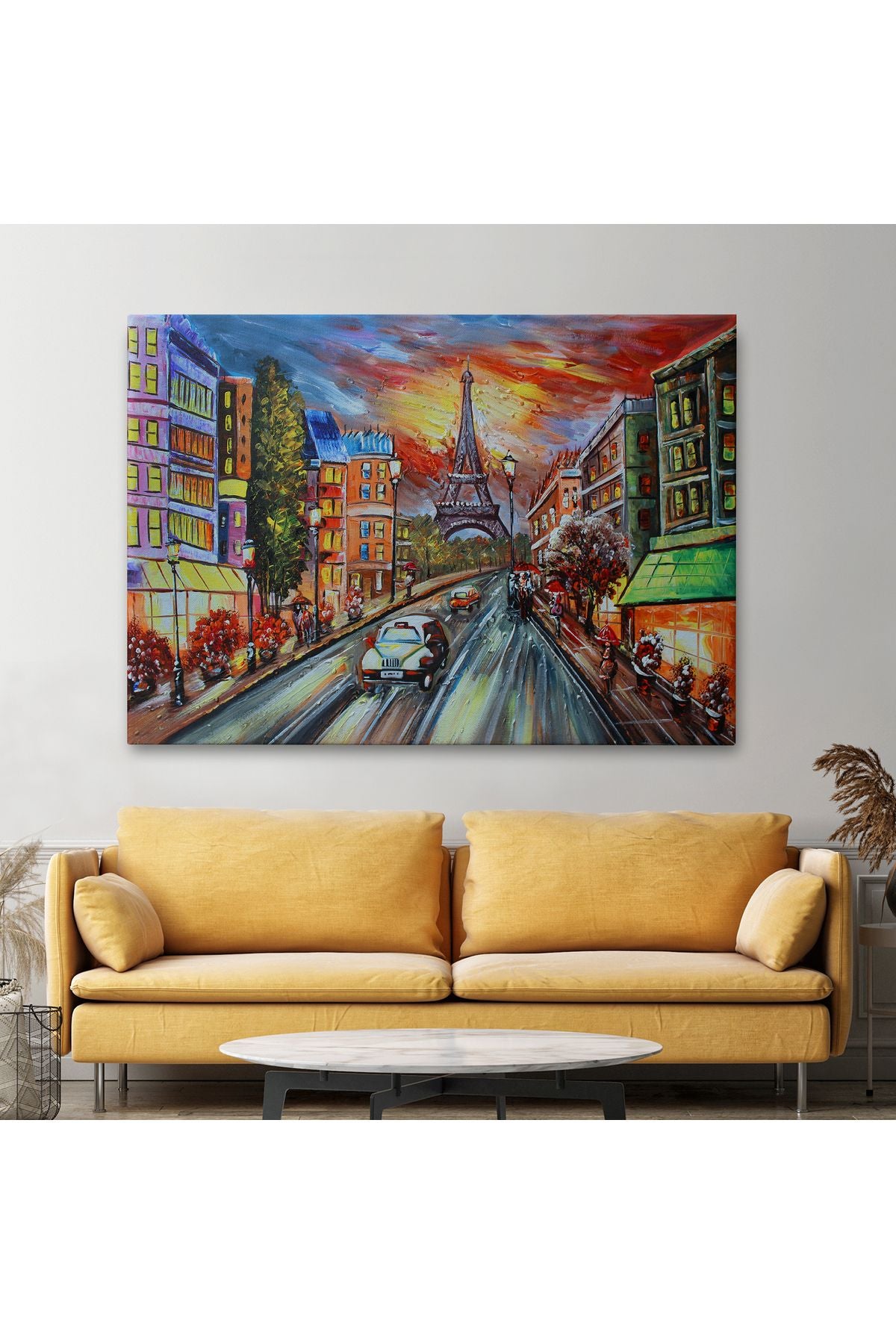Eyfel Kulesi Manzaralı Yağlıboya Görünüm Dekoratif Kanvas Duvar Tablosu-3726