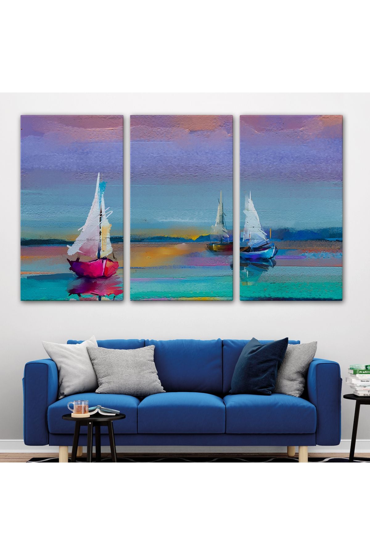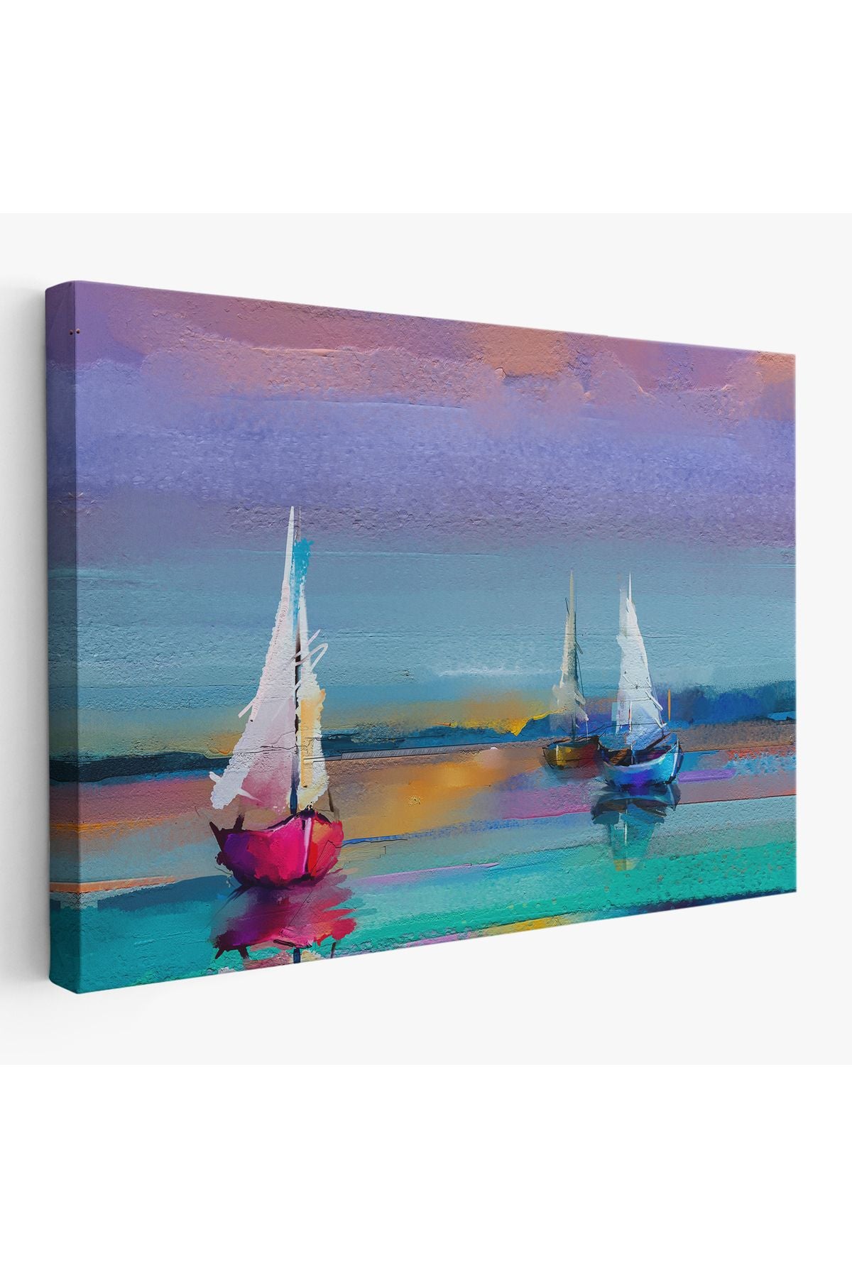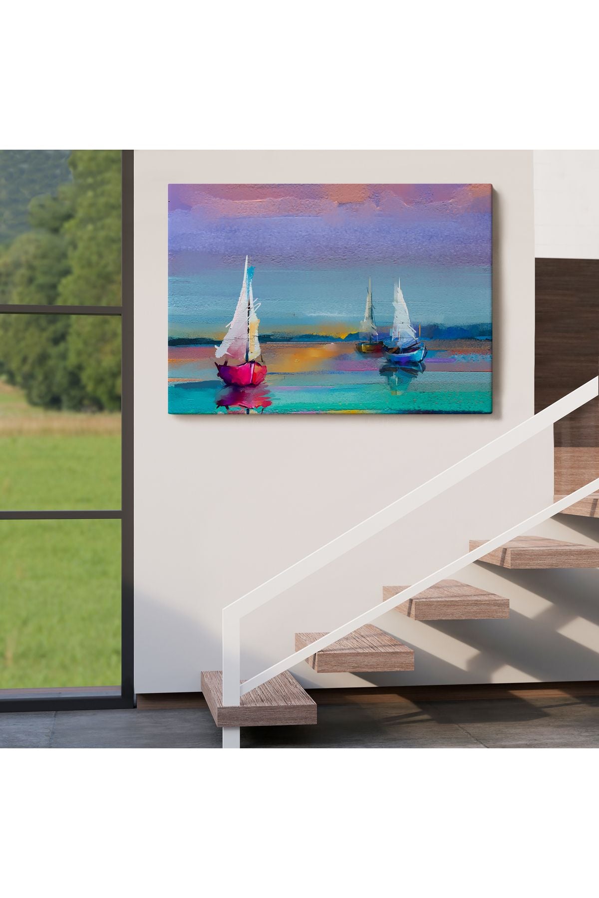 Renkli Deniz Üzerindeki Yelkenliler Duvar Tablosu-3728