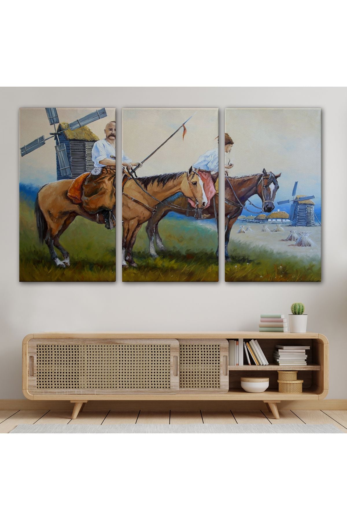 Kazakistan Kırsalında Atlı İnsanlar Yağlıboya Görünüm Kanvas Duvar Tablosu-3735