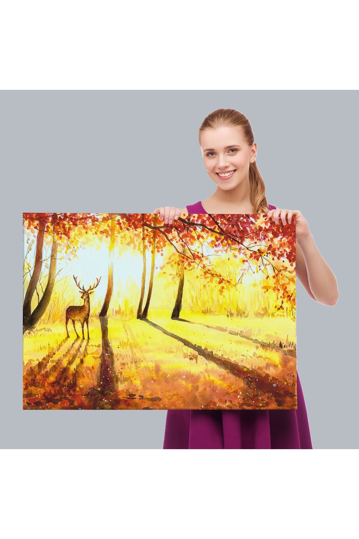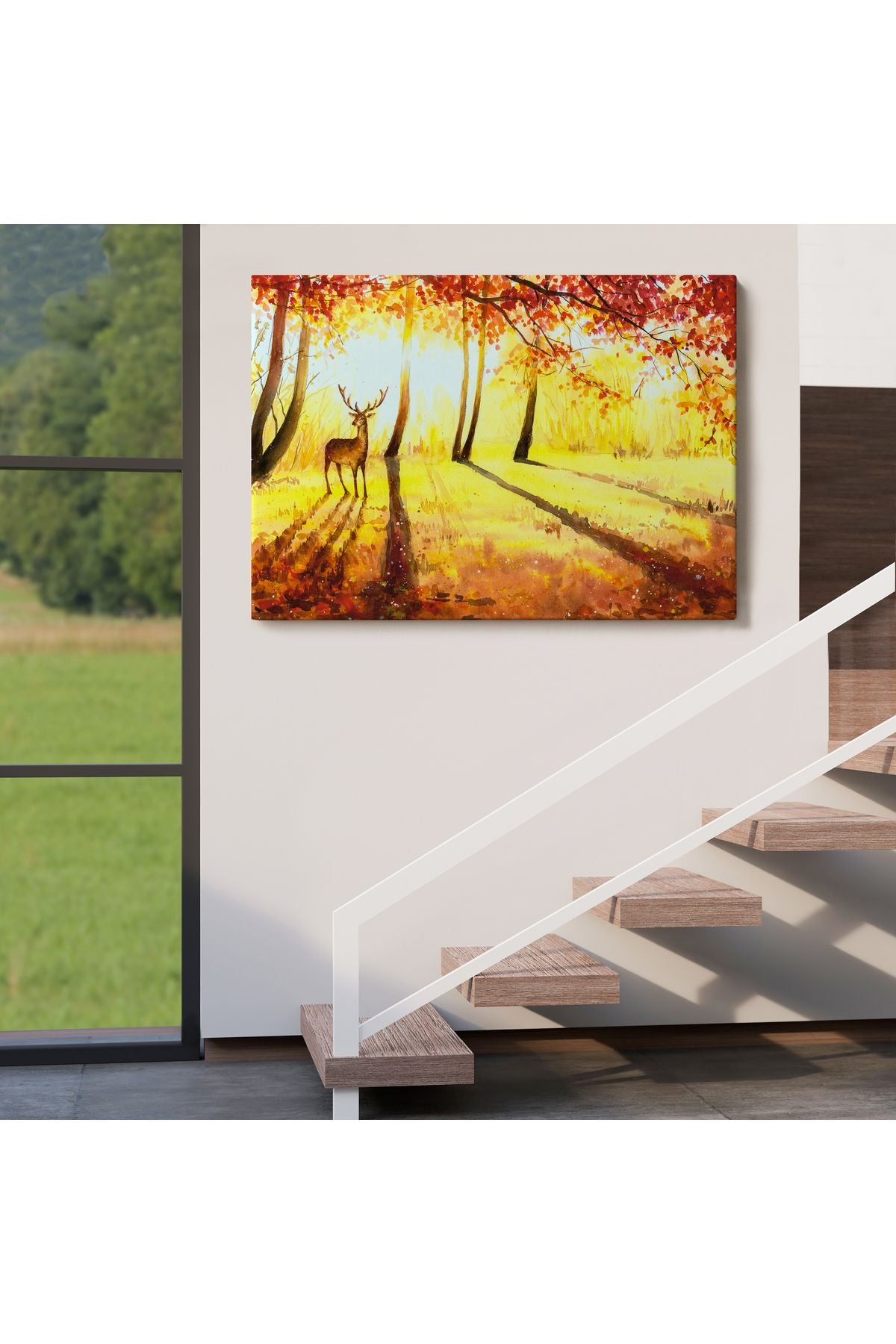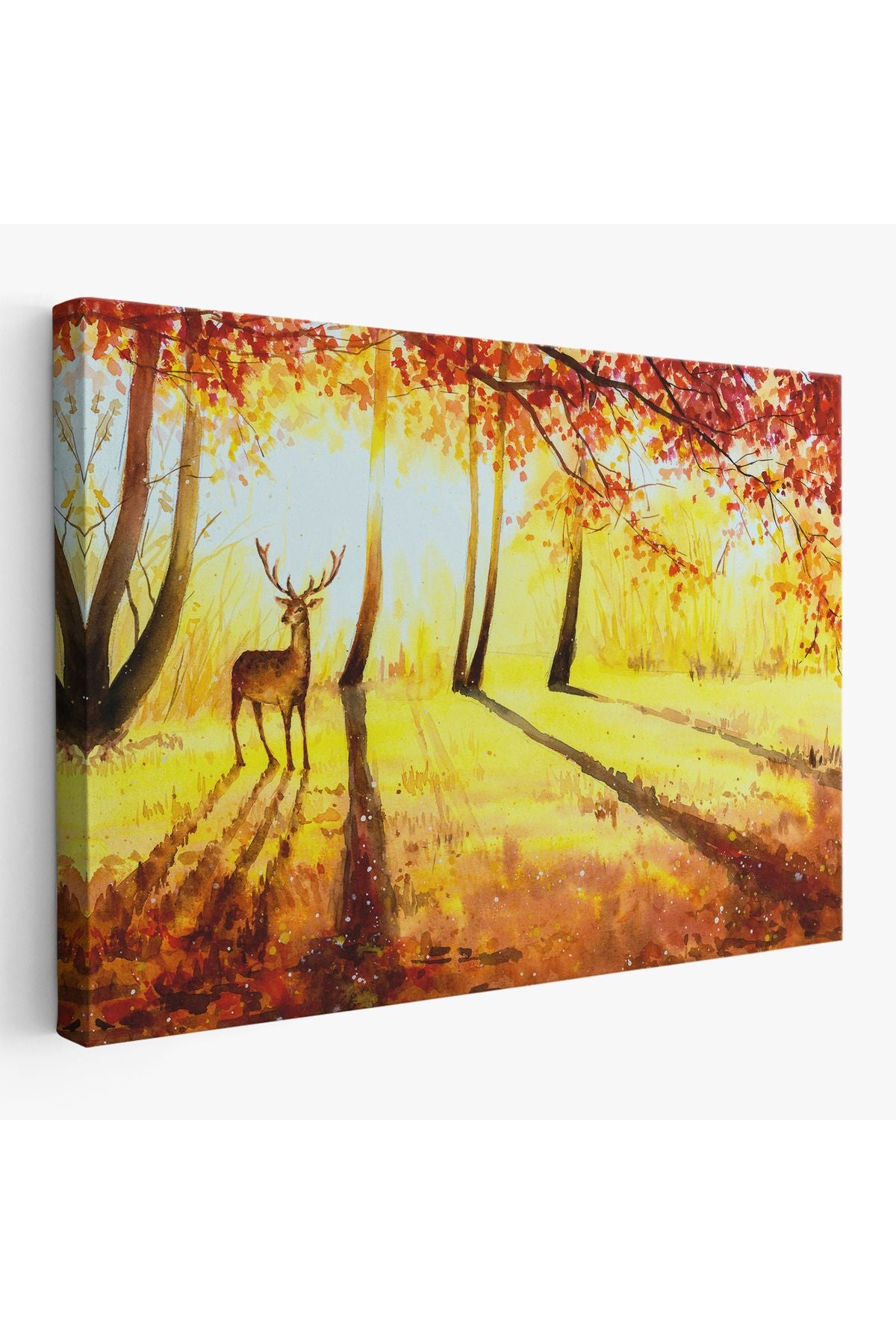 Baharda Ormanda Bir Geyik Yağlıboya Görünüm Kanvas Tablo-3745