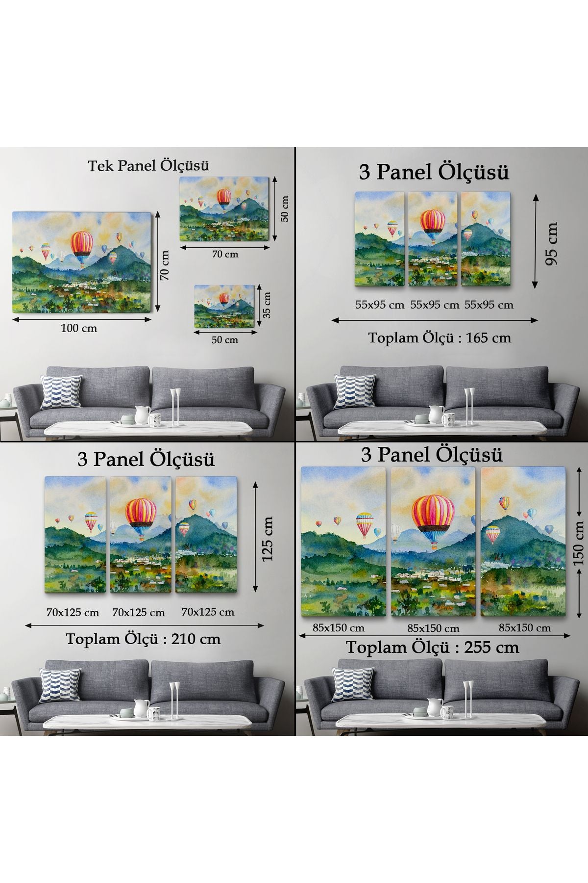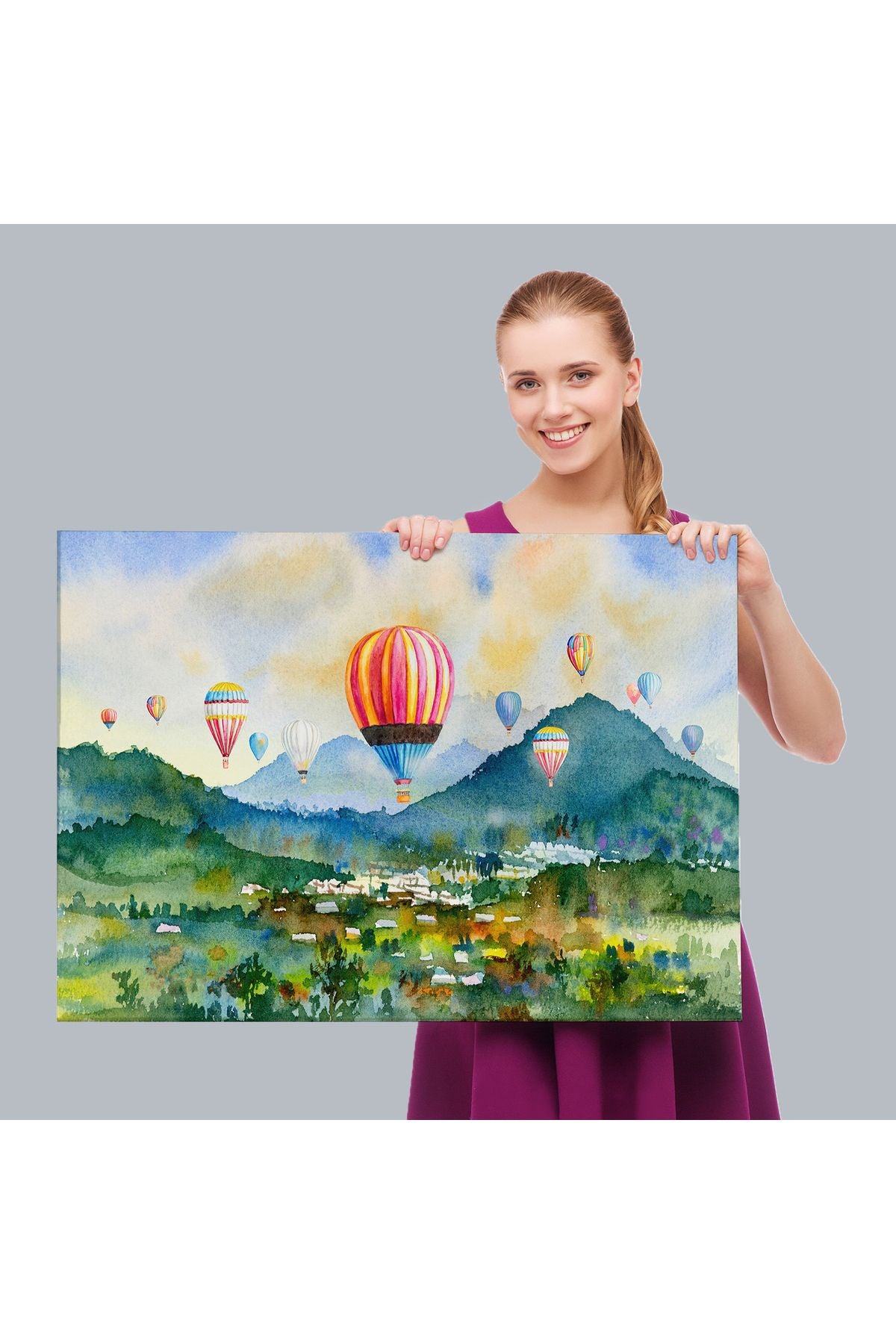 Kapadokya Hava Balonları Yağlıboya Görünüm Dekoratif Kanvas Duvar Tablosu-3747