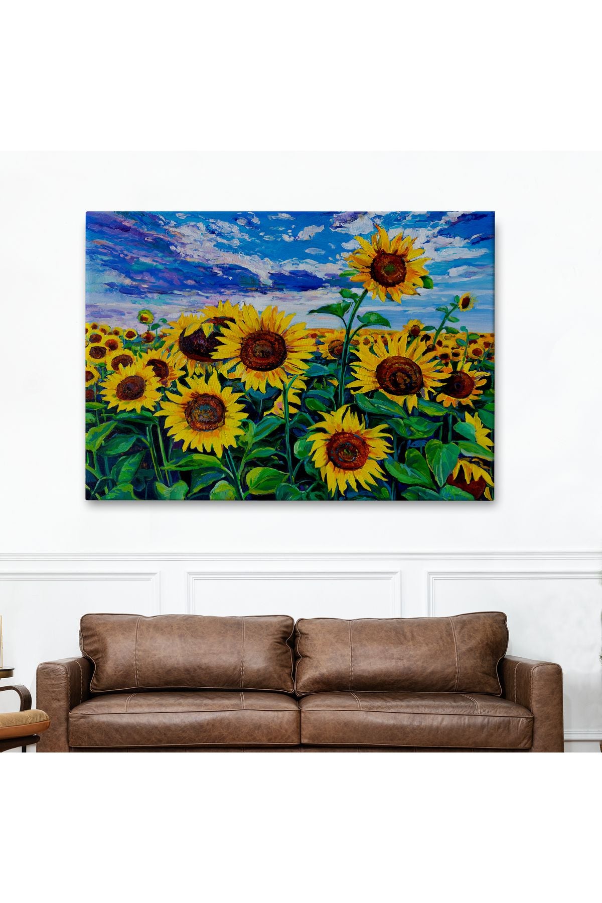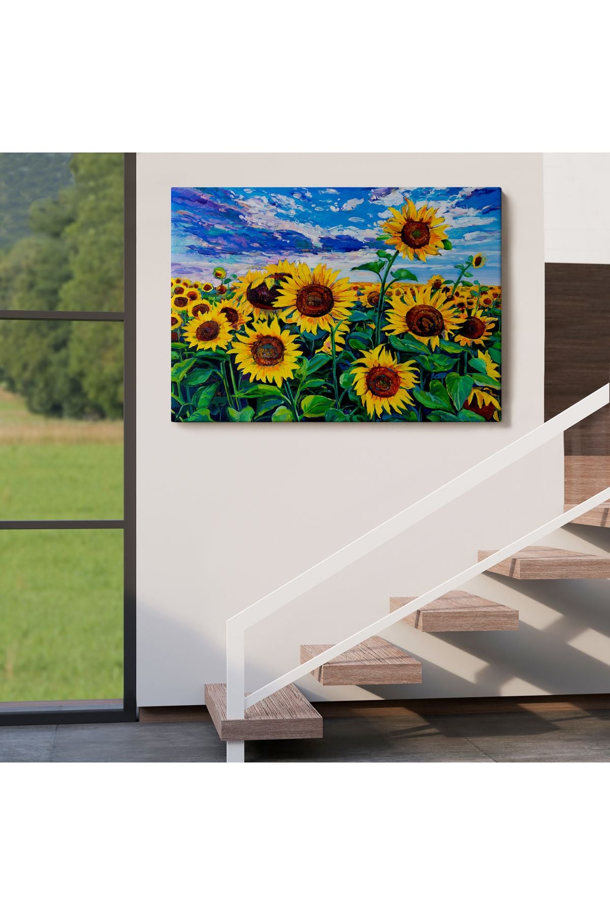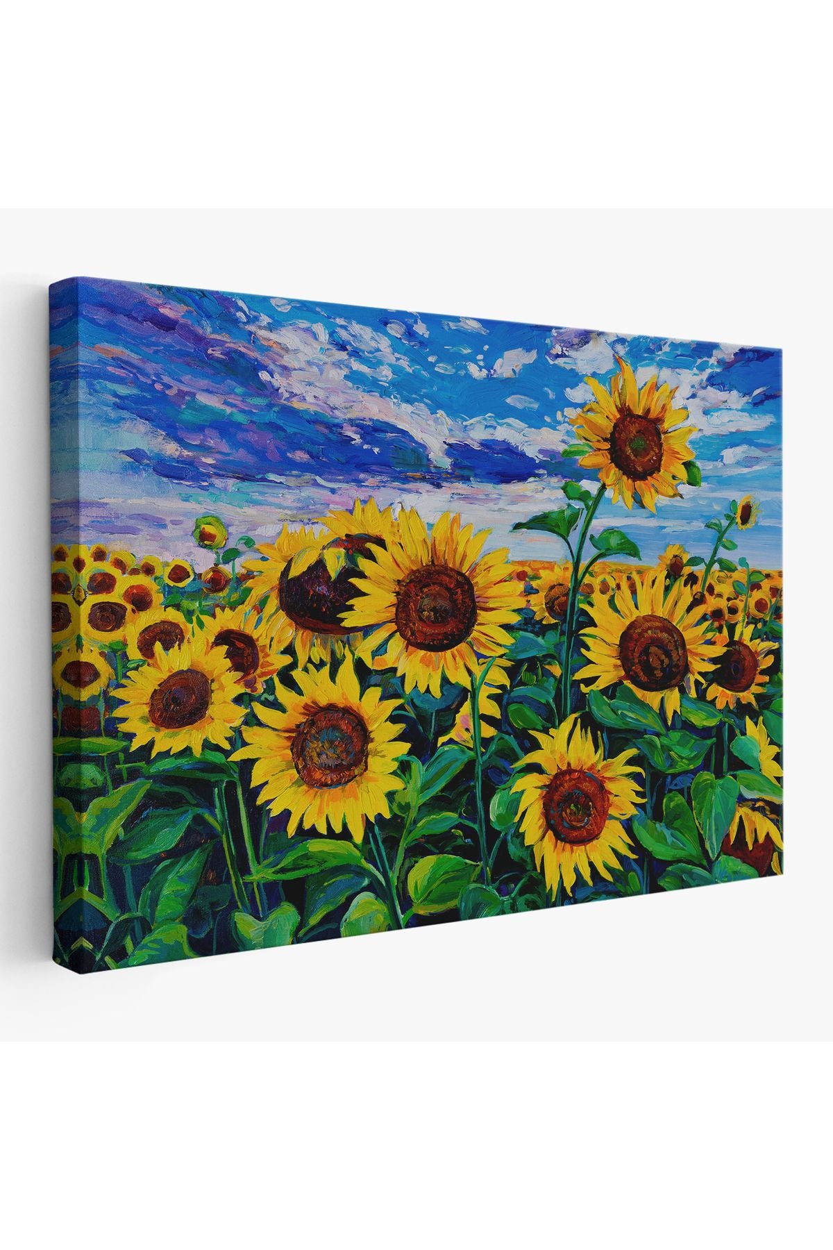 Ayçiçeği Tarlası Yağlıboya Görünüm Dekoratif Kanvas Duvar Tablosu-3750