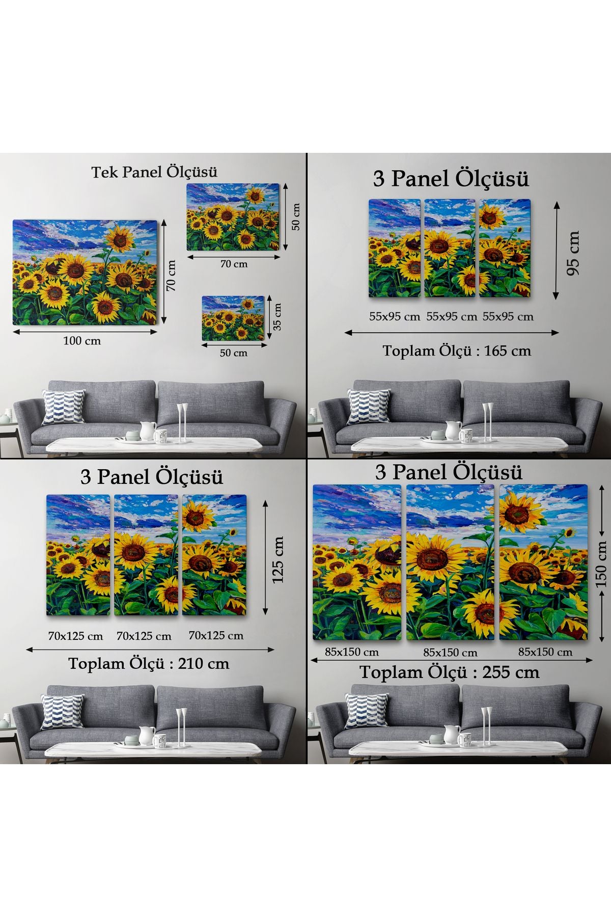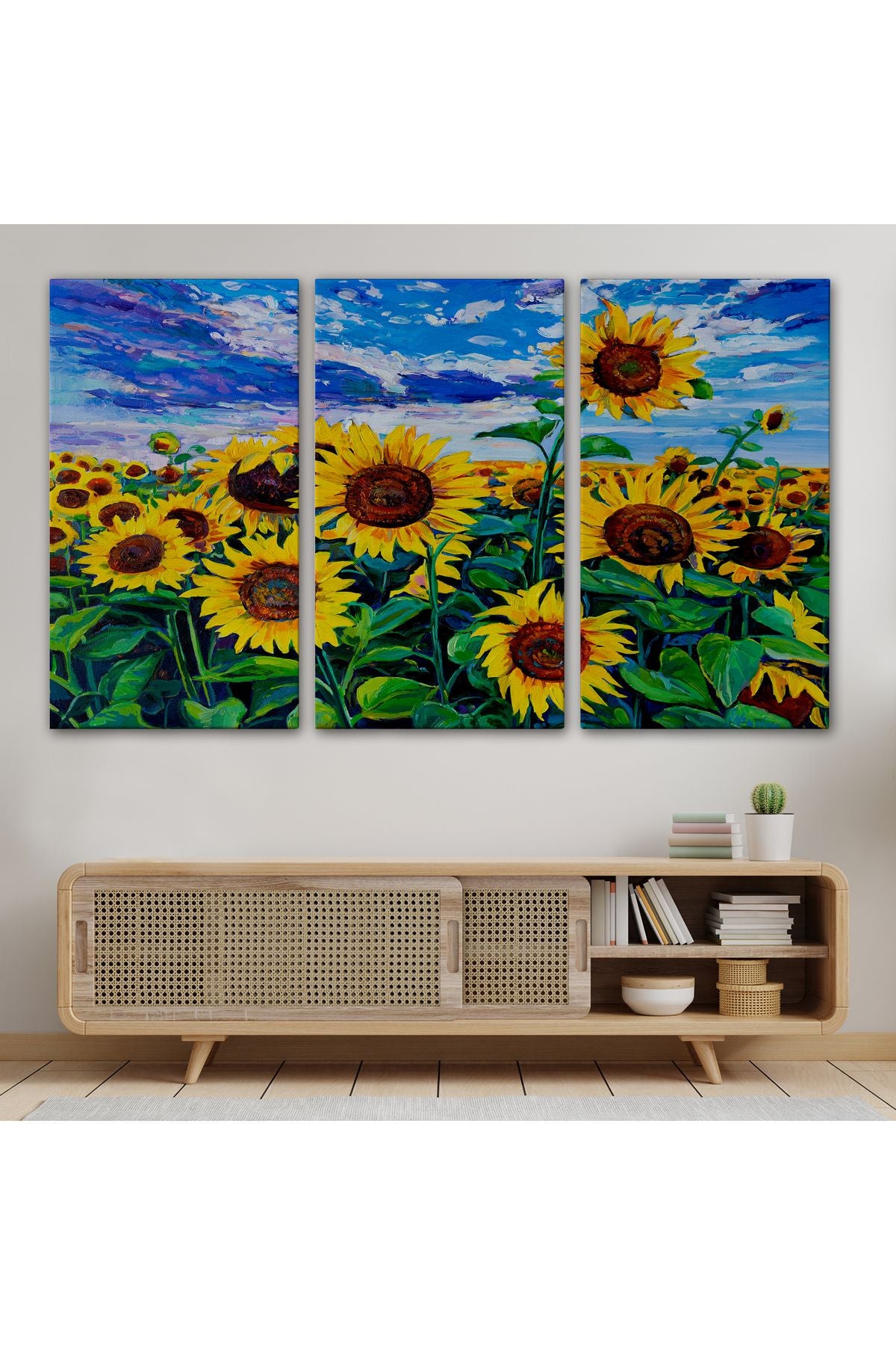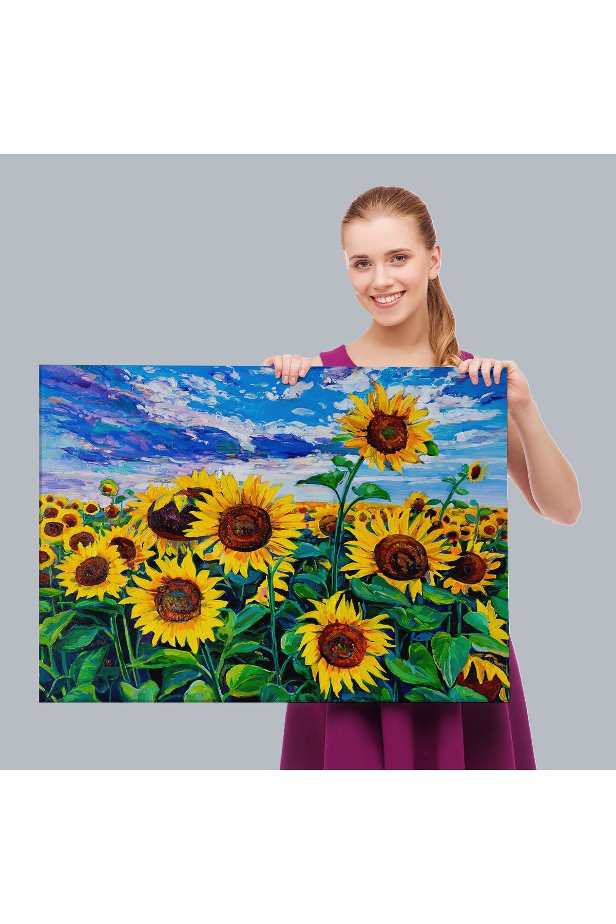 Ayçiçeği Tarlası Yağlıboya Görünüm Dekoratif Kanvas Duvar Tablosu-3750
