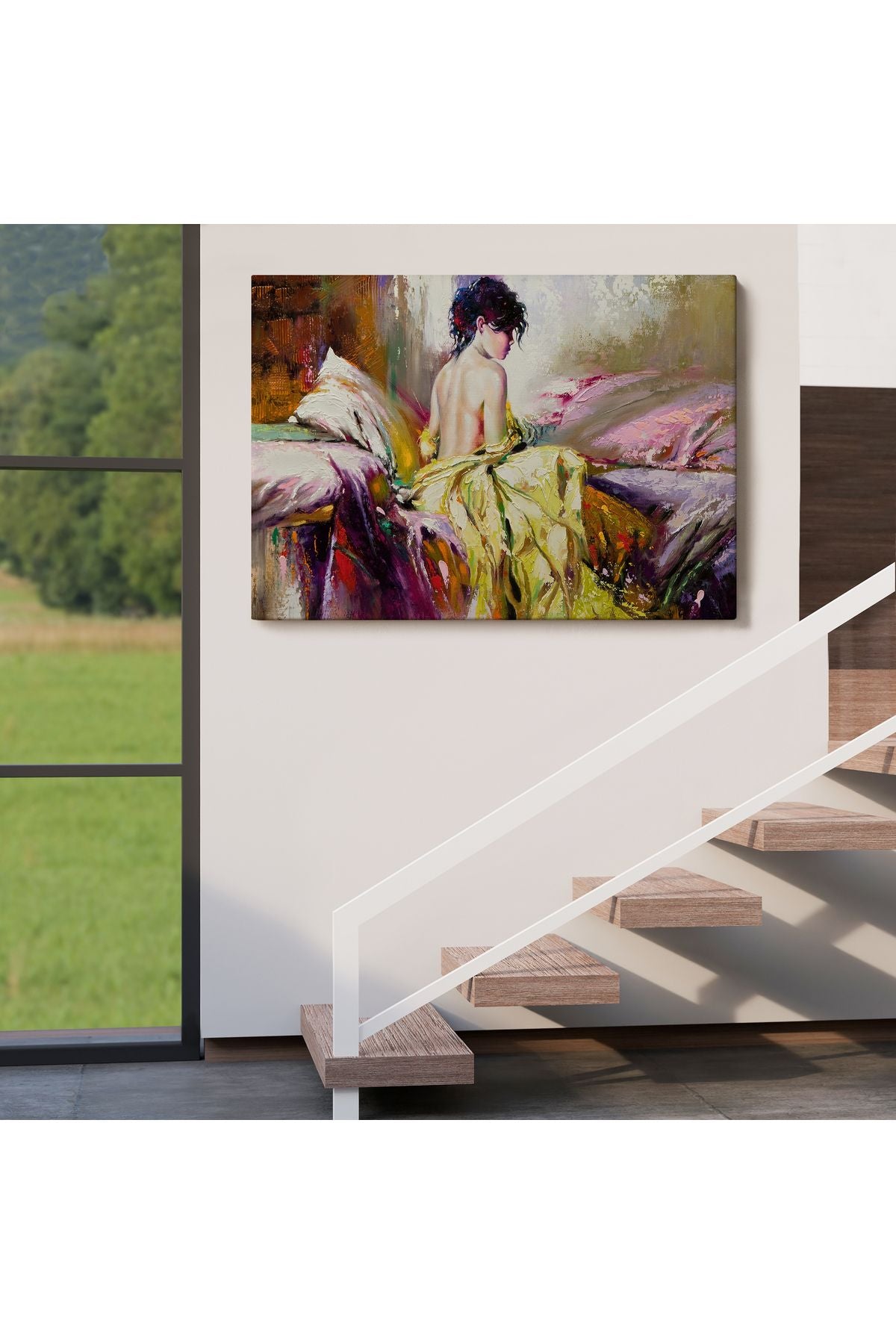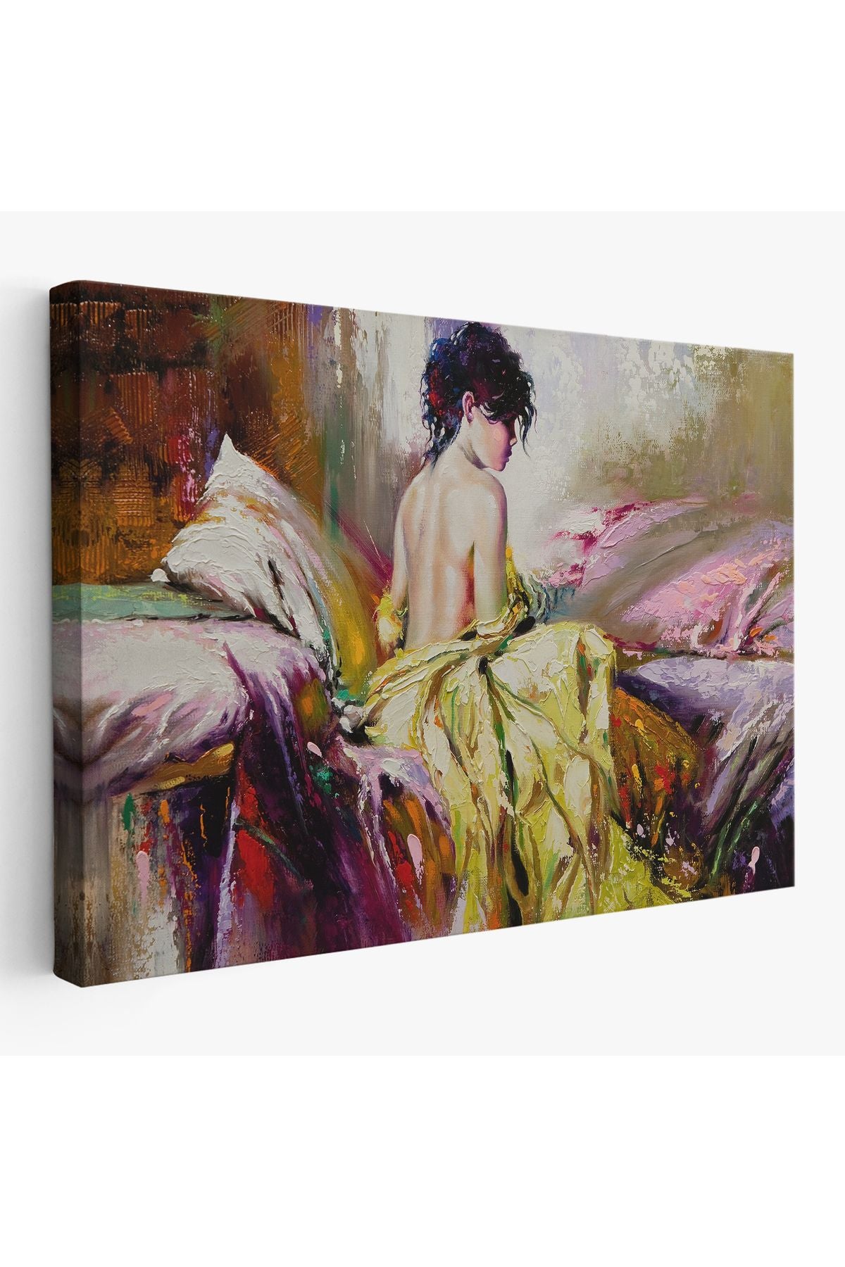 Yalnız Kadın Pastelboya Görünüm Dekoratif Kanvas Duvar Tablosu-3766